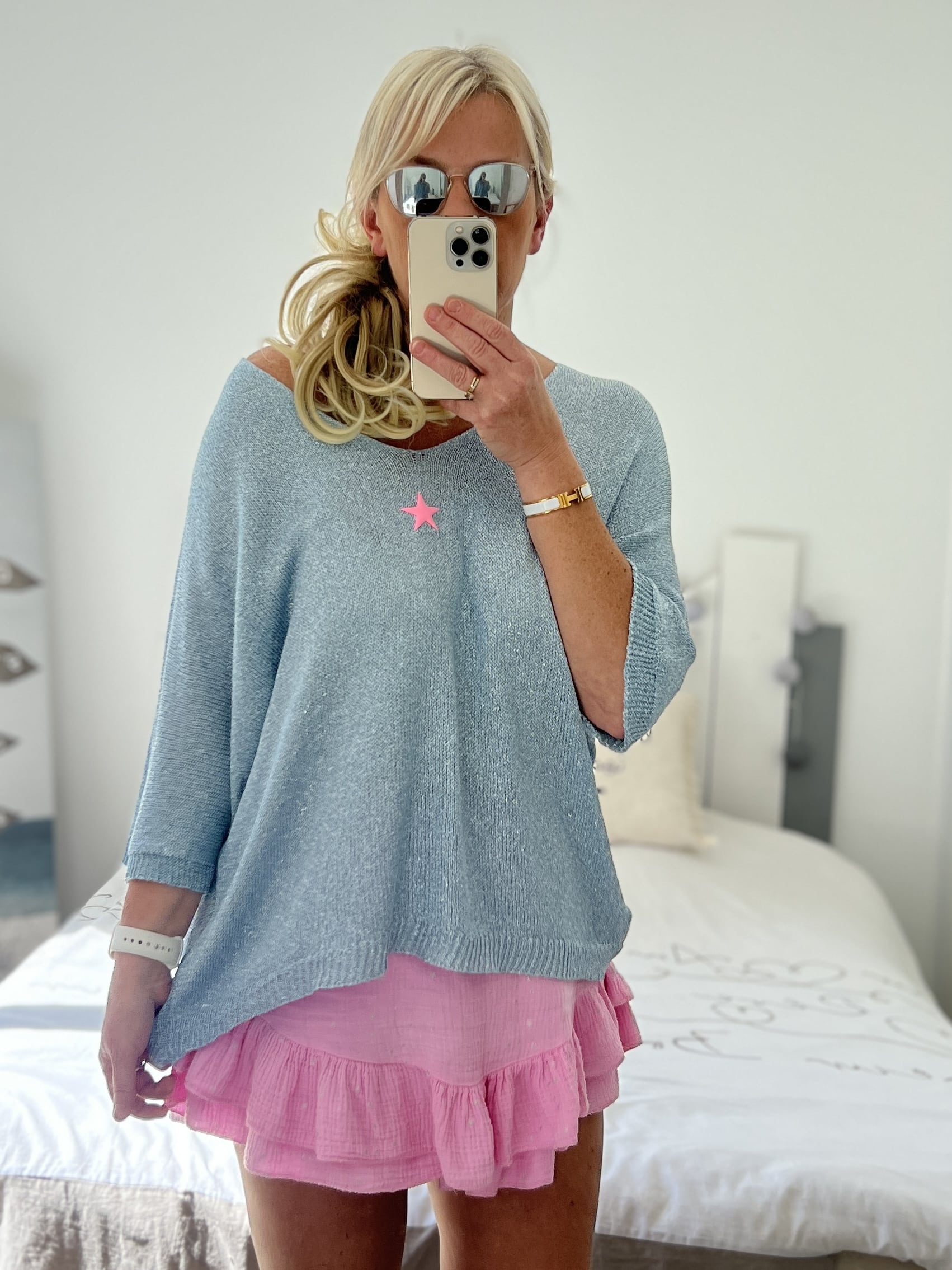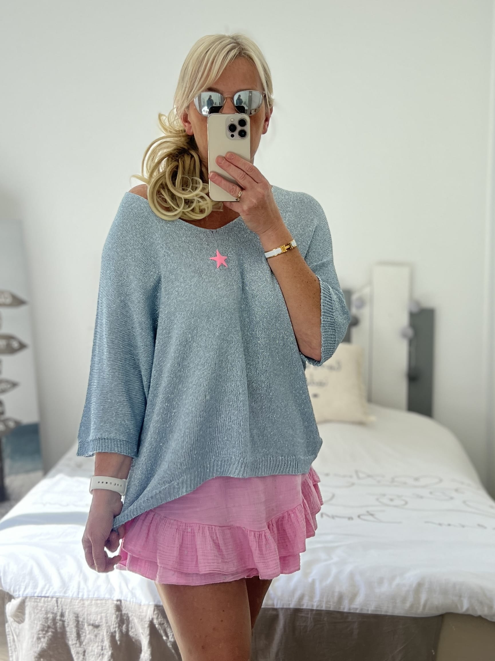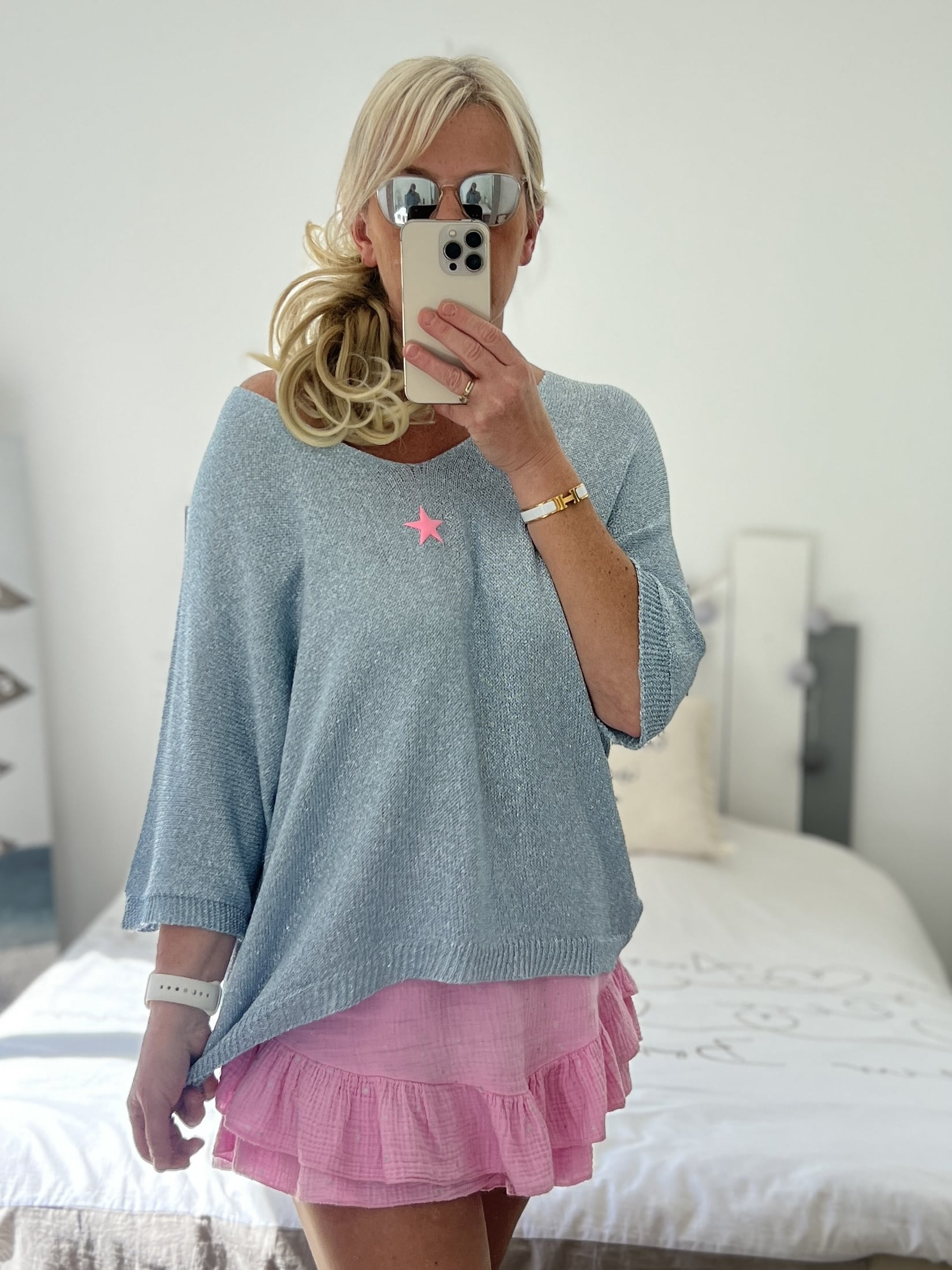 Pull fin pailleté bleu étoile