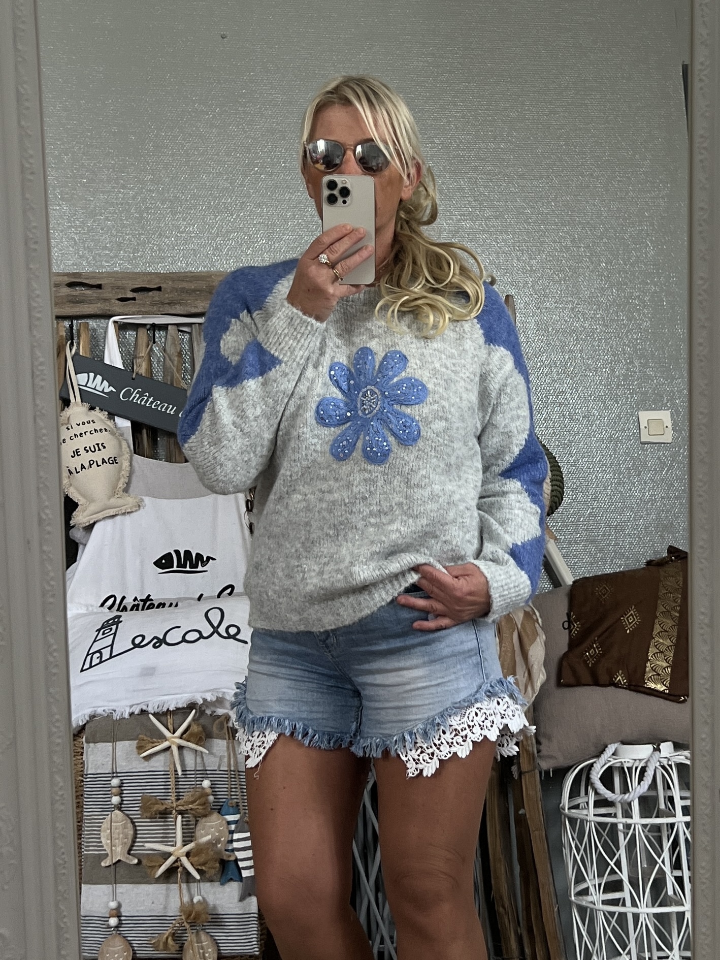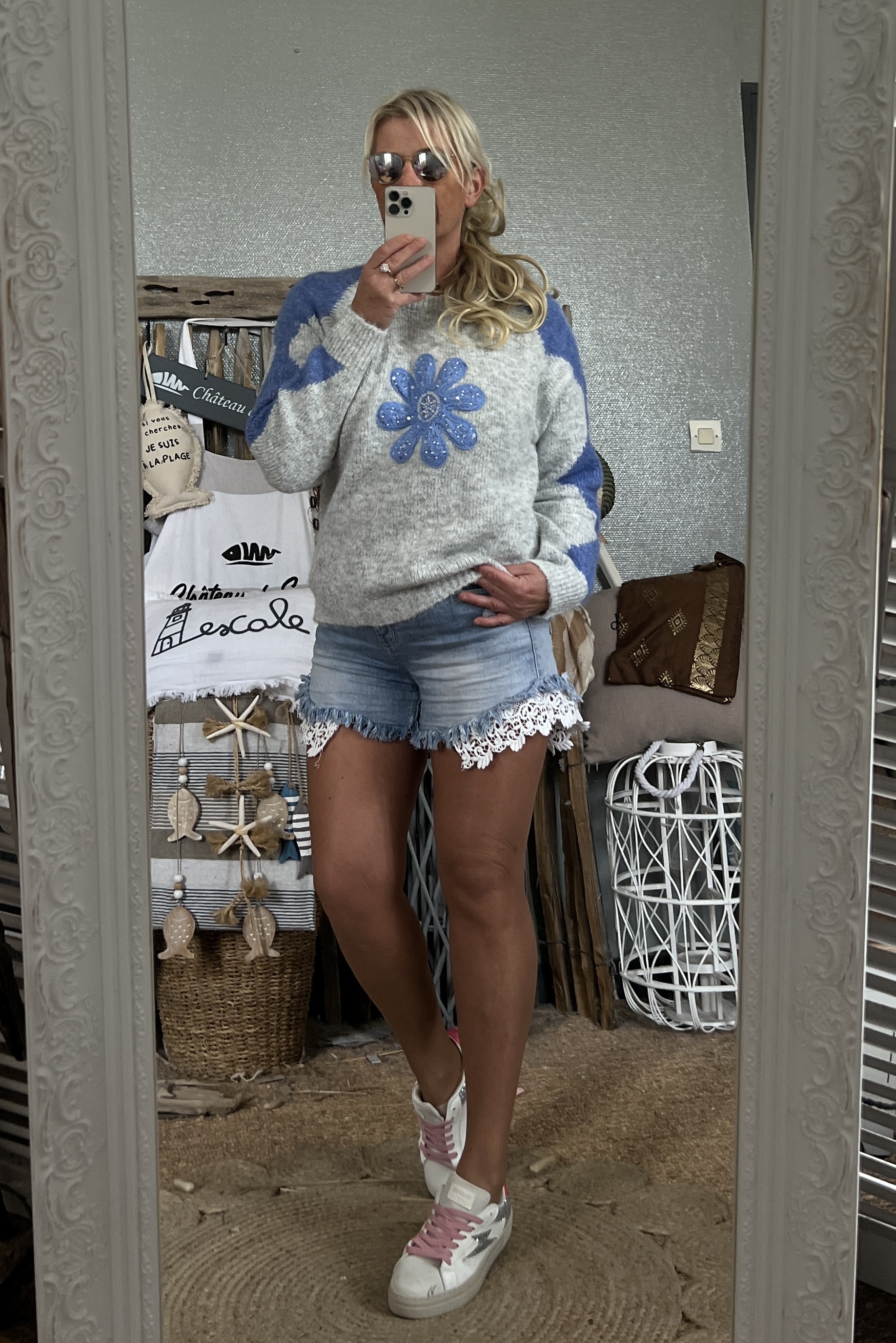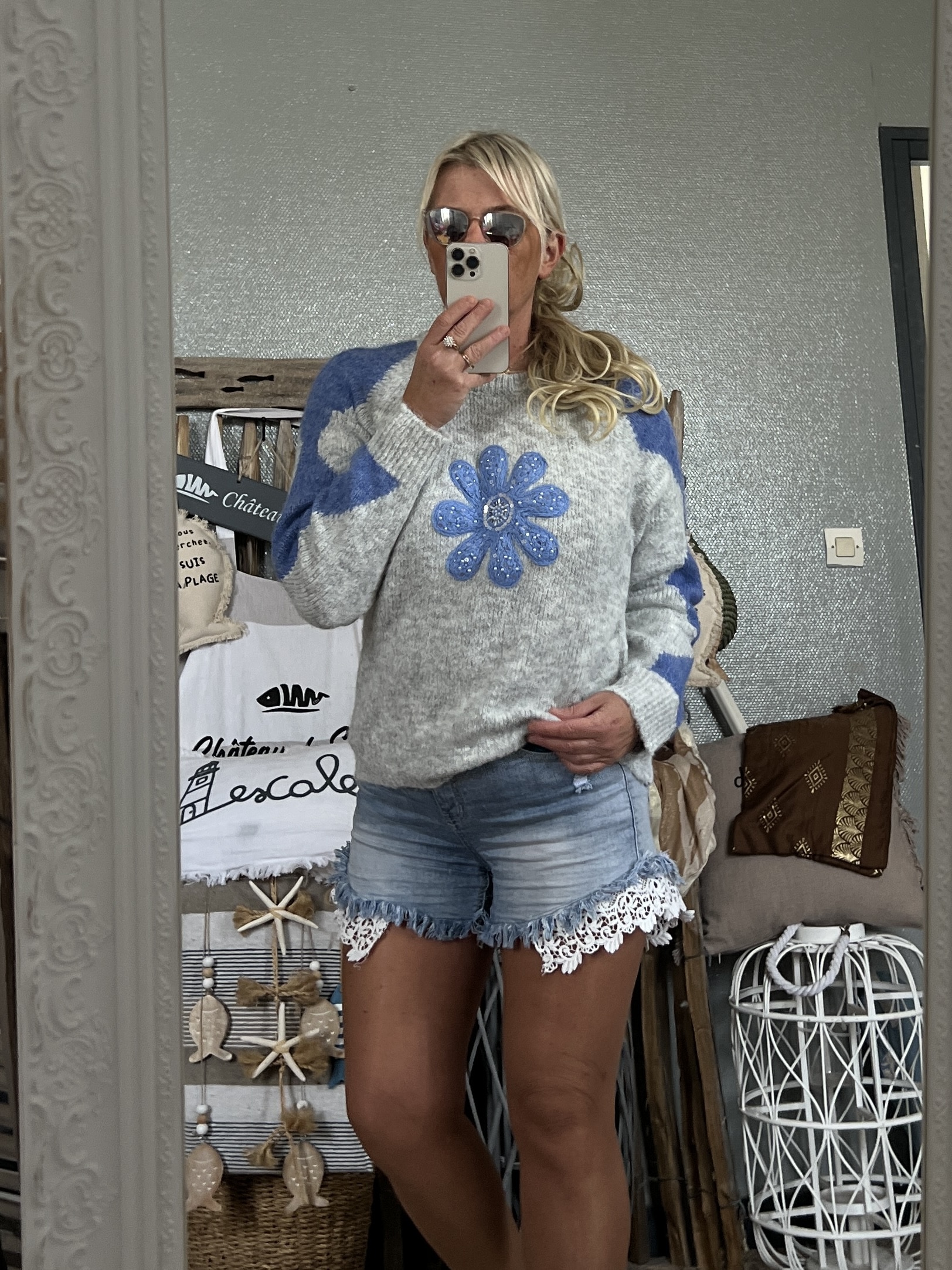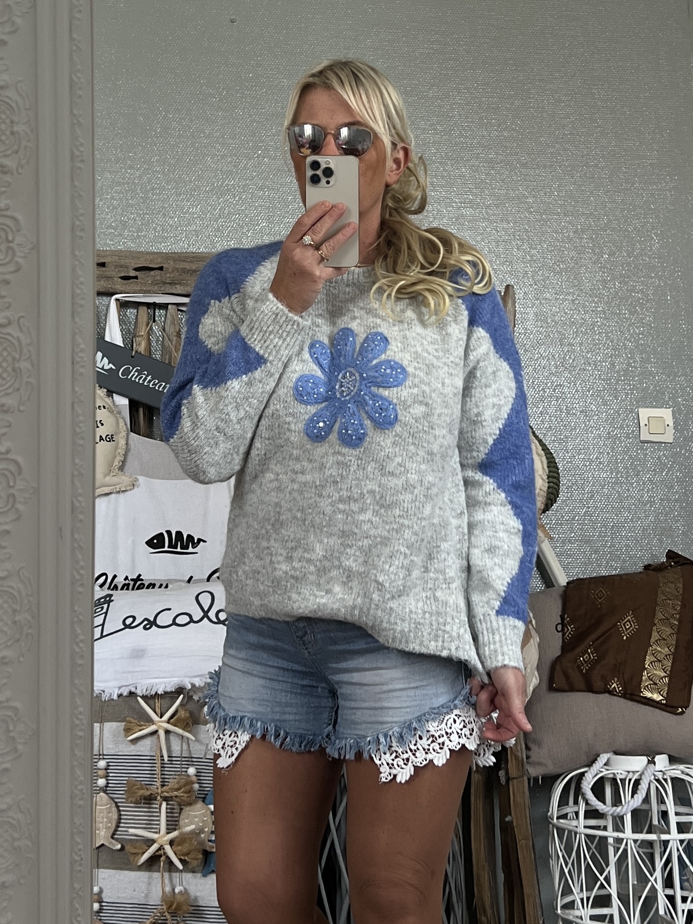 Pull Flower bleu