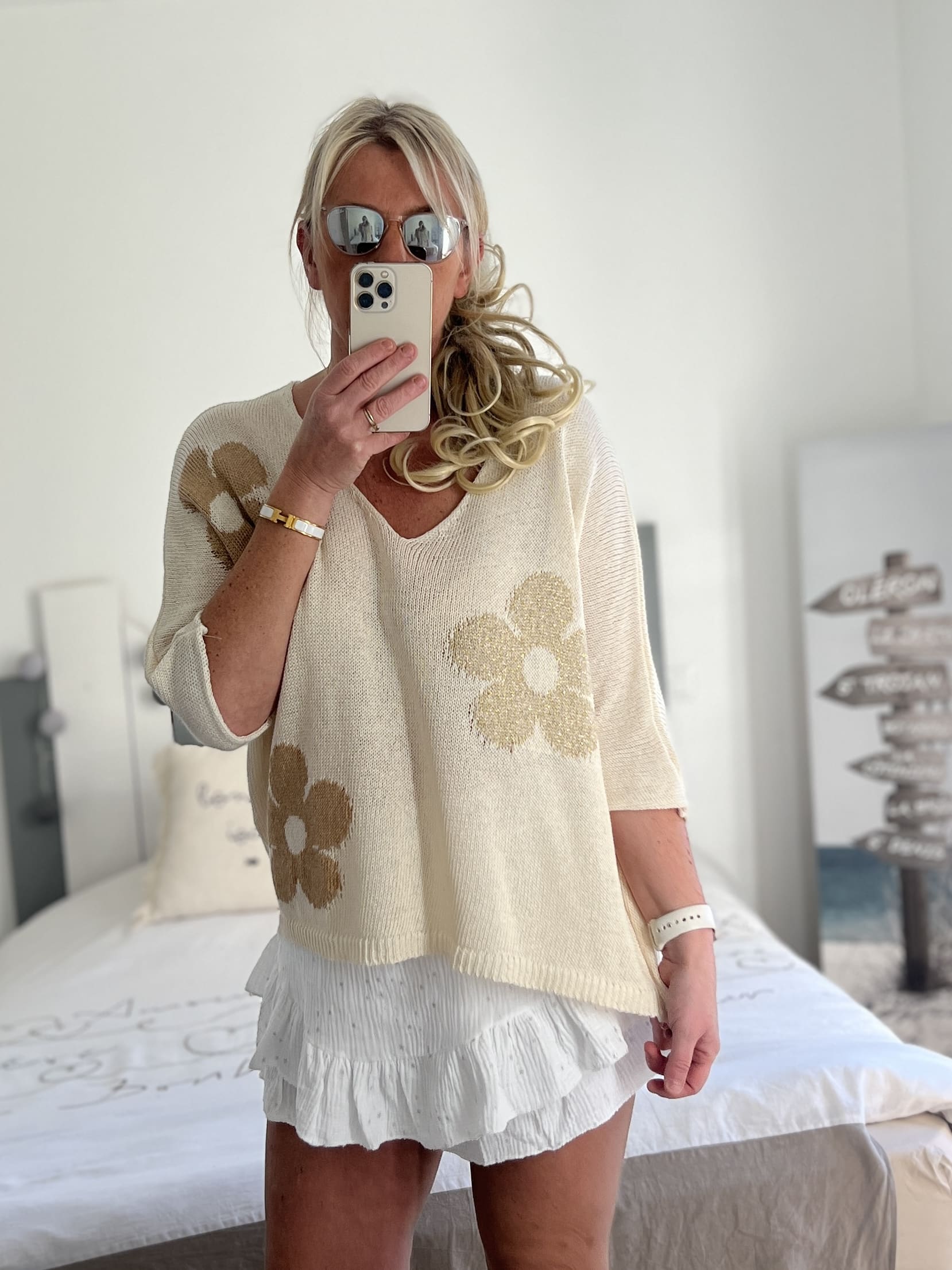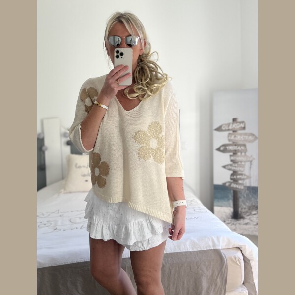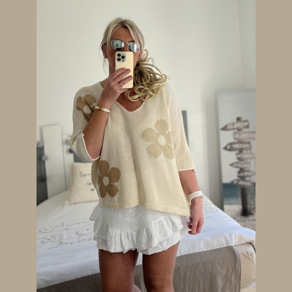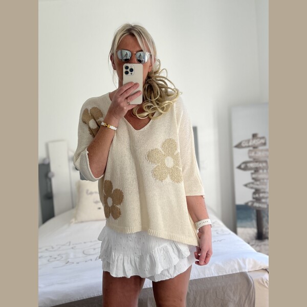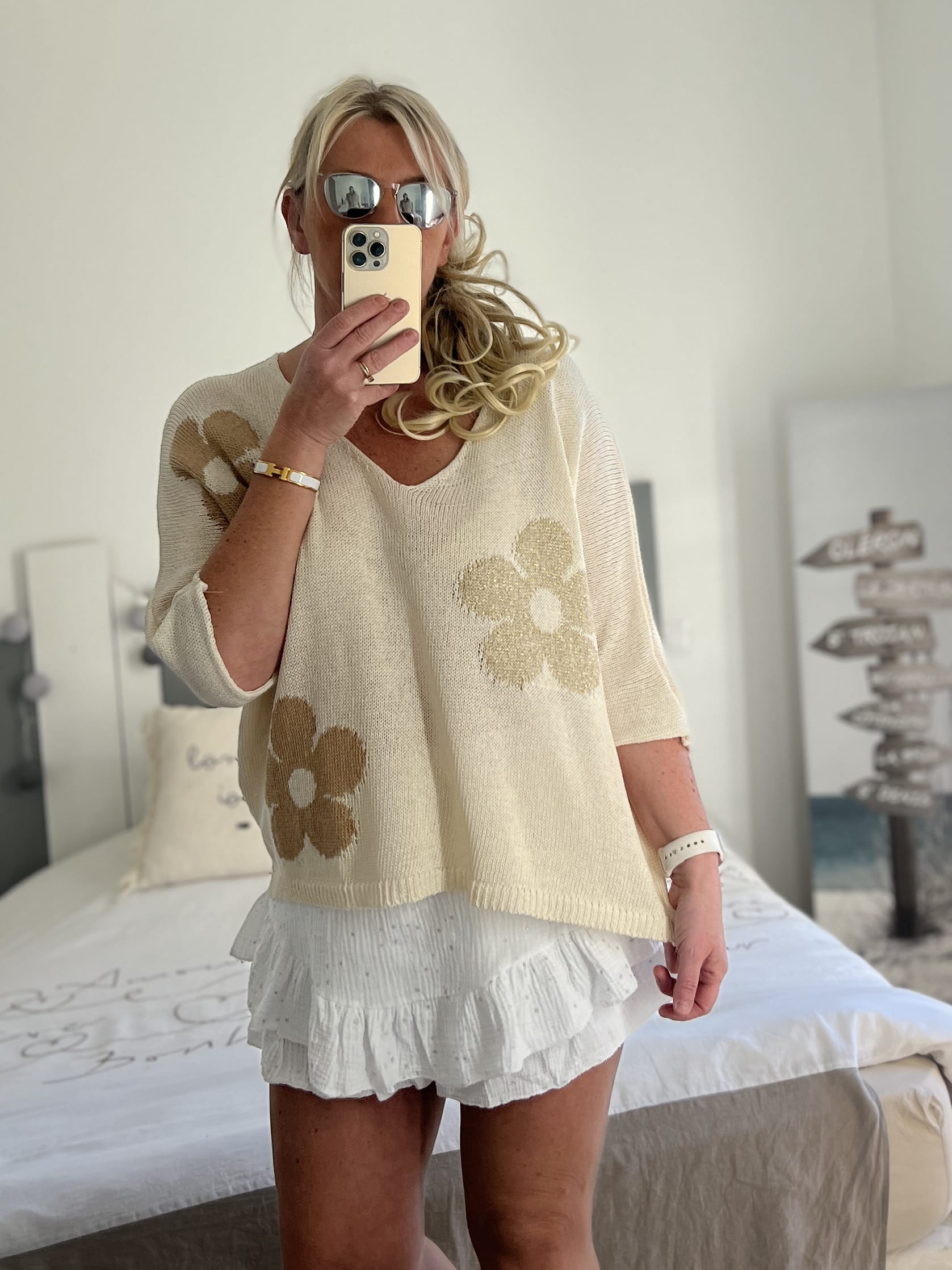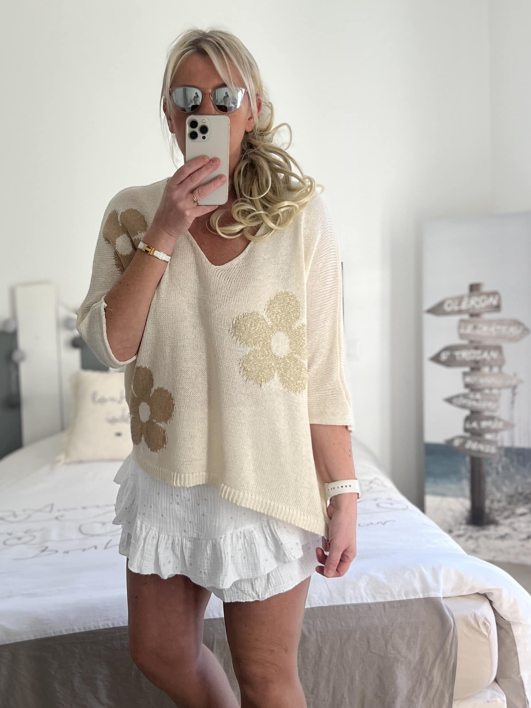 Pull manches 3/4 50% coton 50% acrylique taille unique 36-44 oversize pour 36