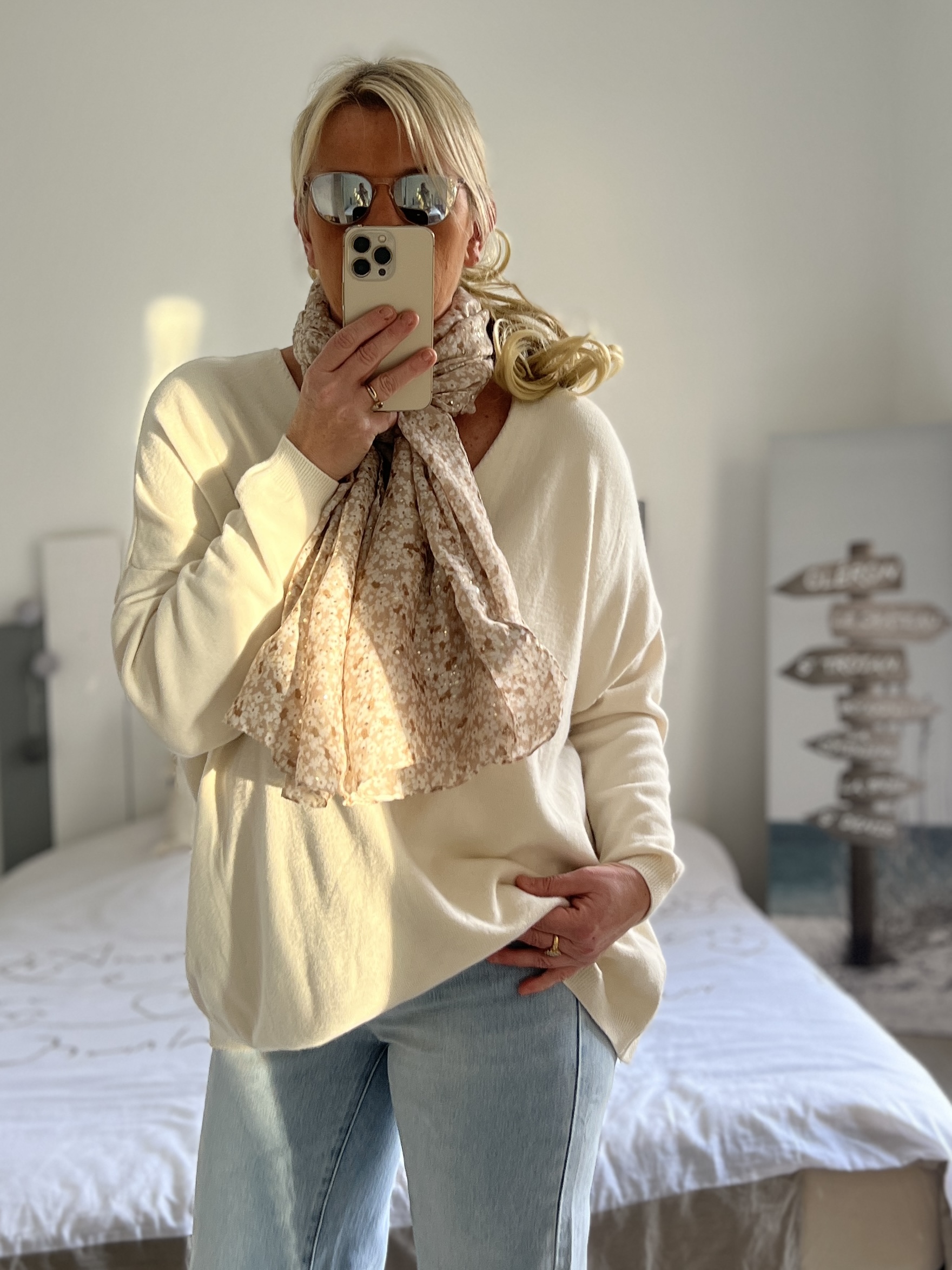 Pull coton viscose elasthane taille unique 36-444 oversize pour 36 col V