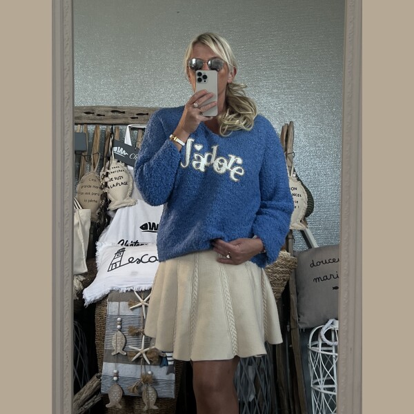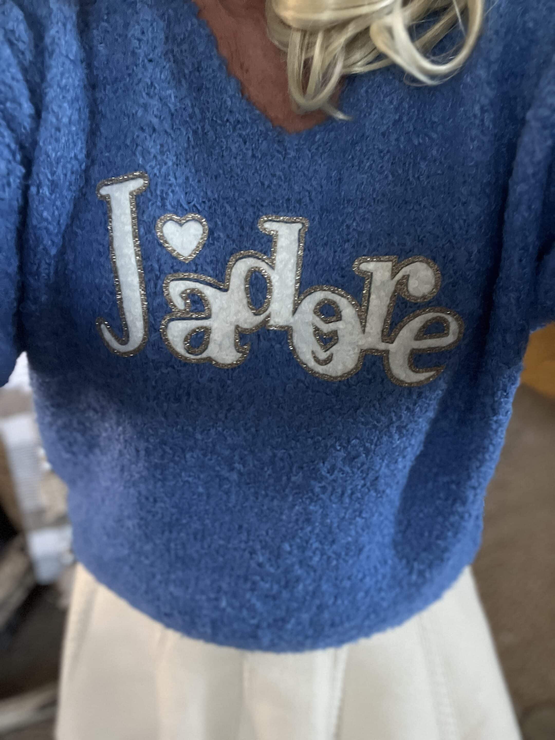 Pull j’adore bleu