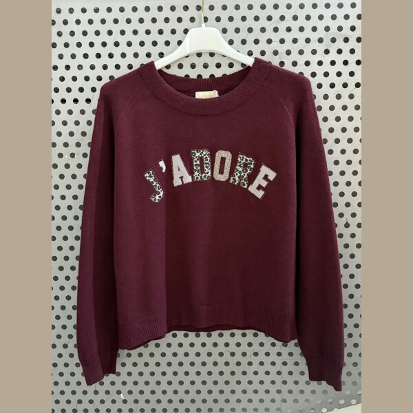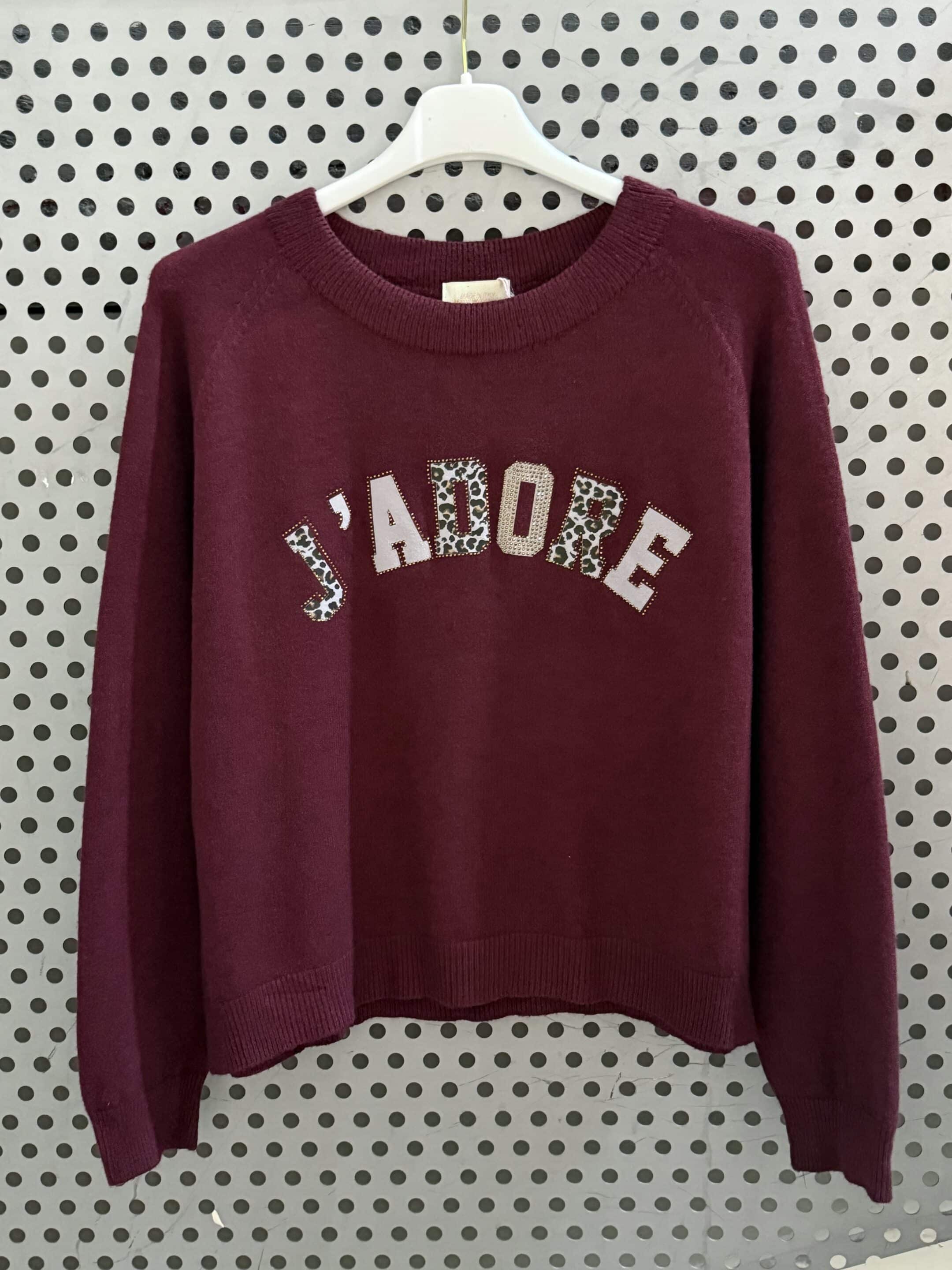Pull j’adore strass Leopard bordeaux