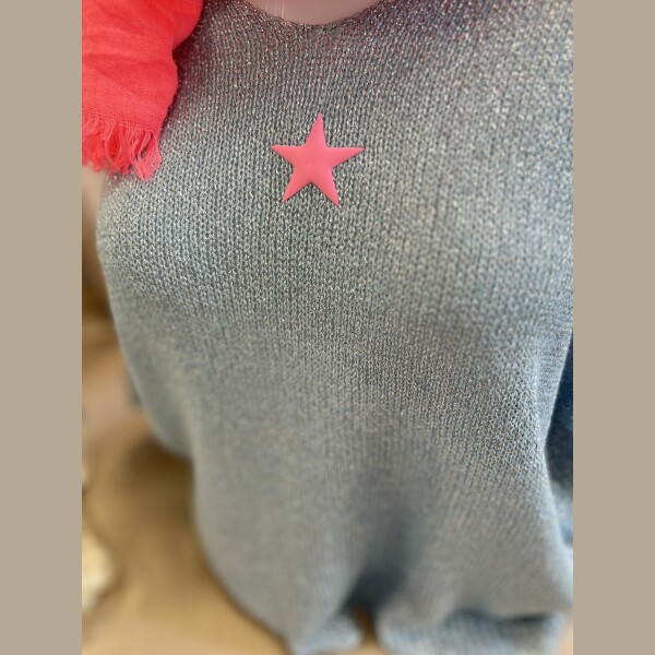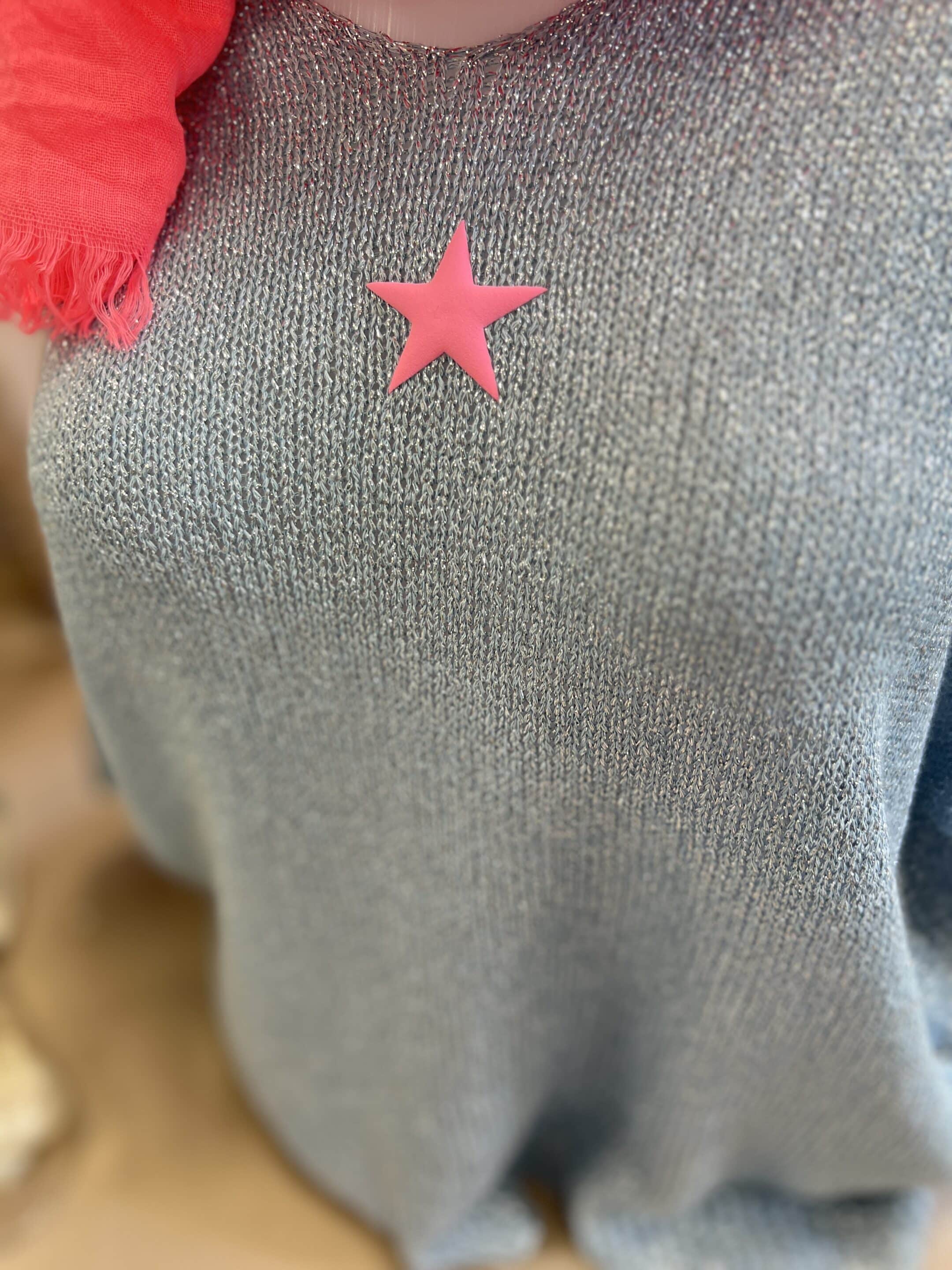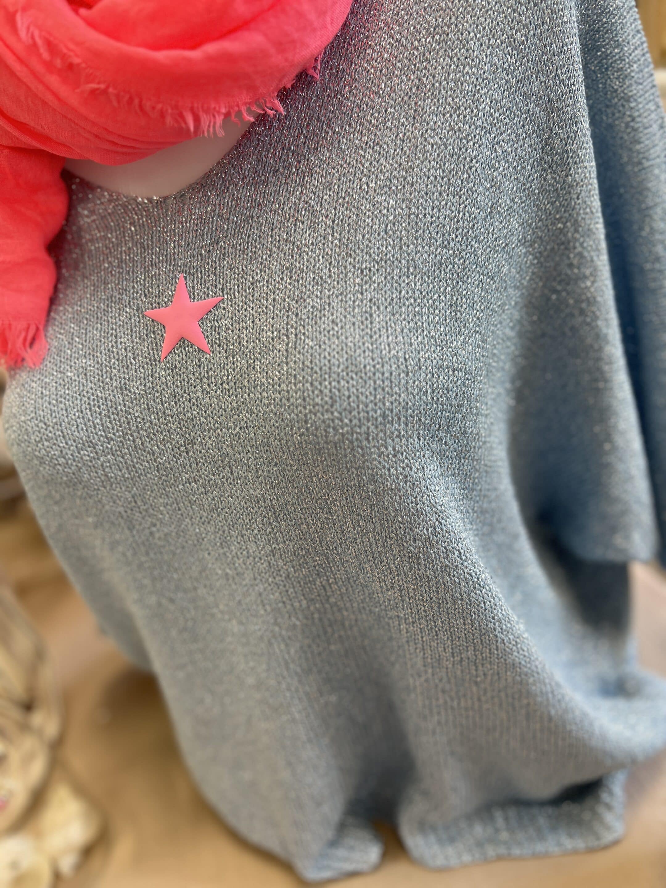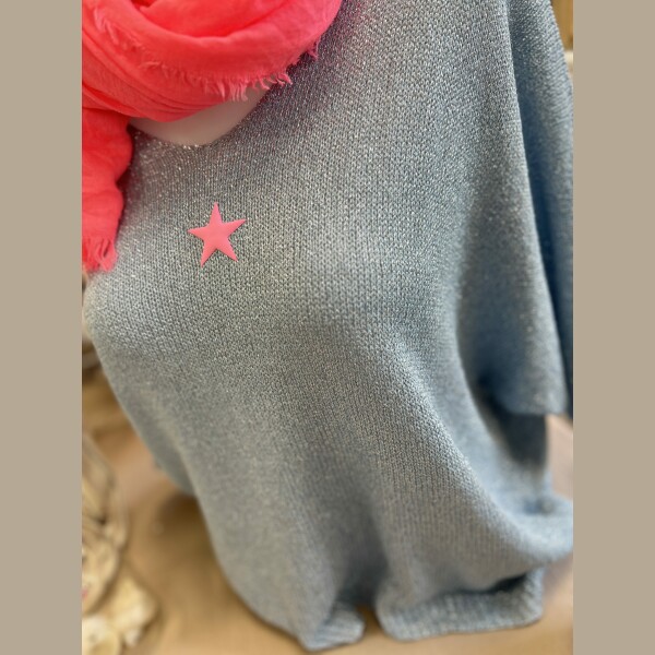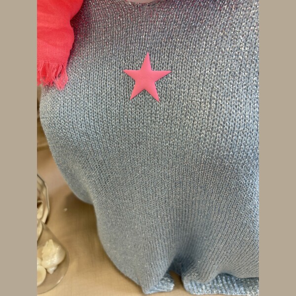 Pull lurex bleu gris étoile fluo