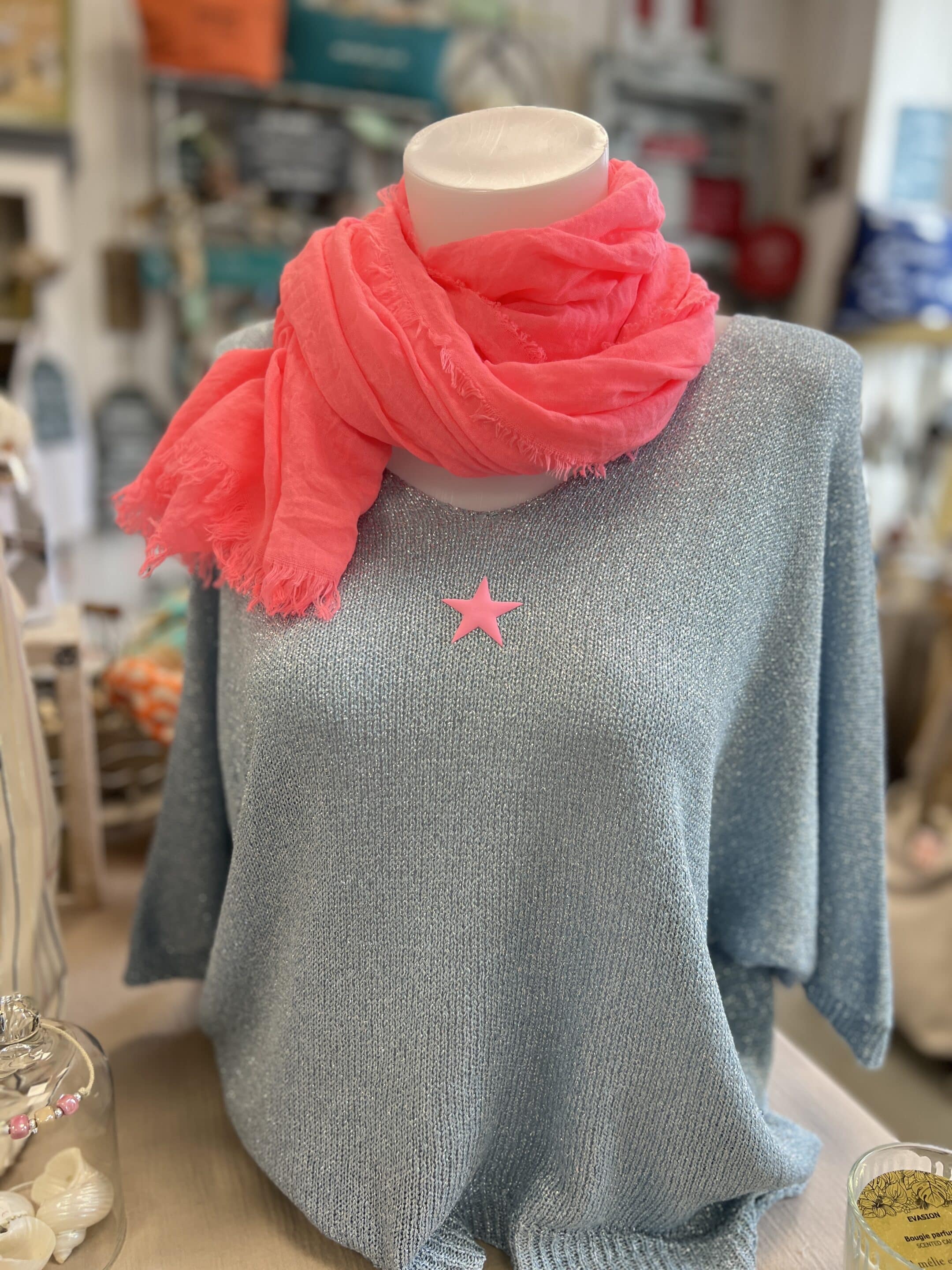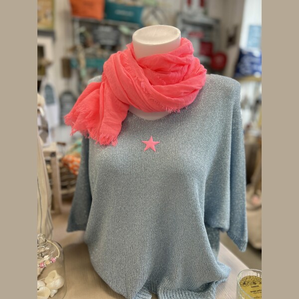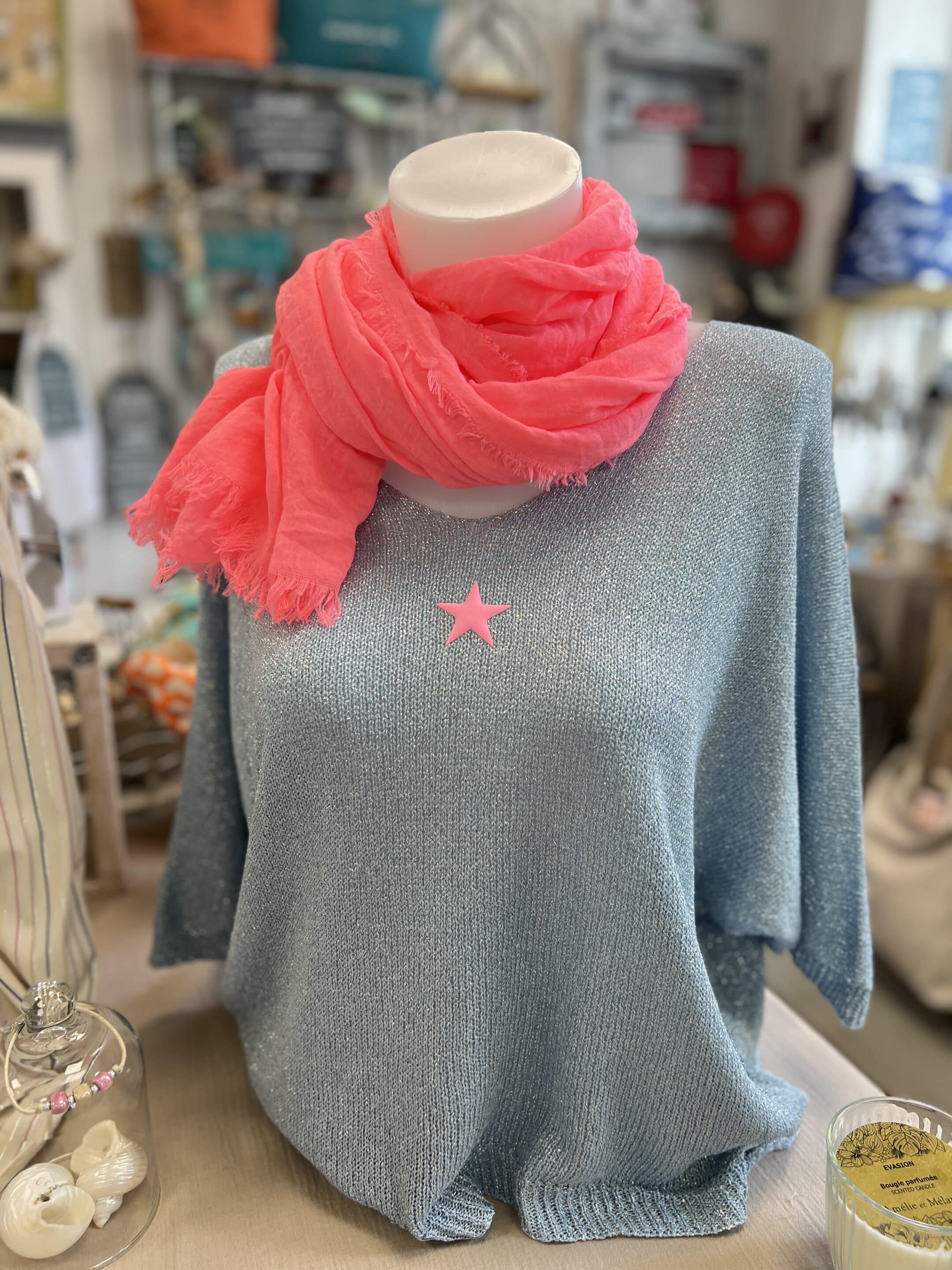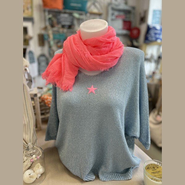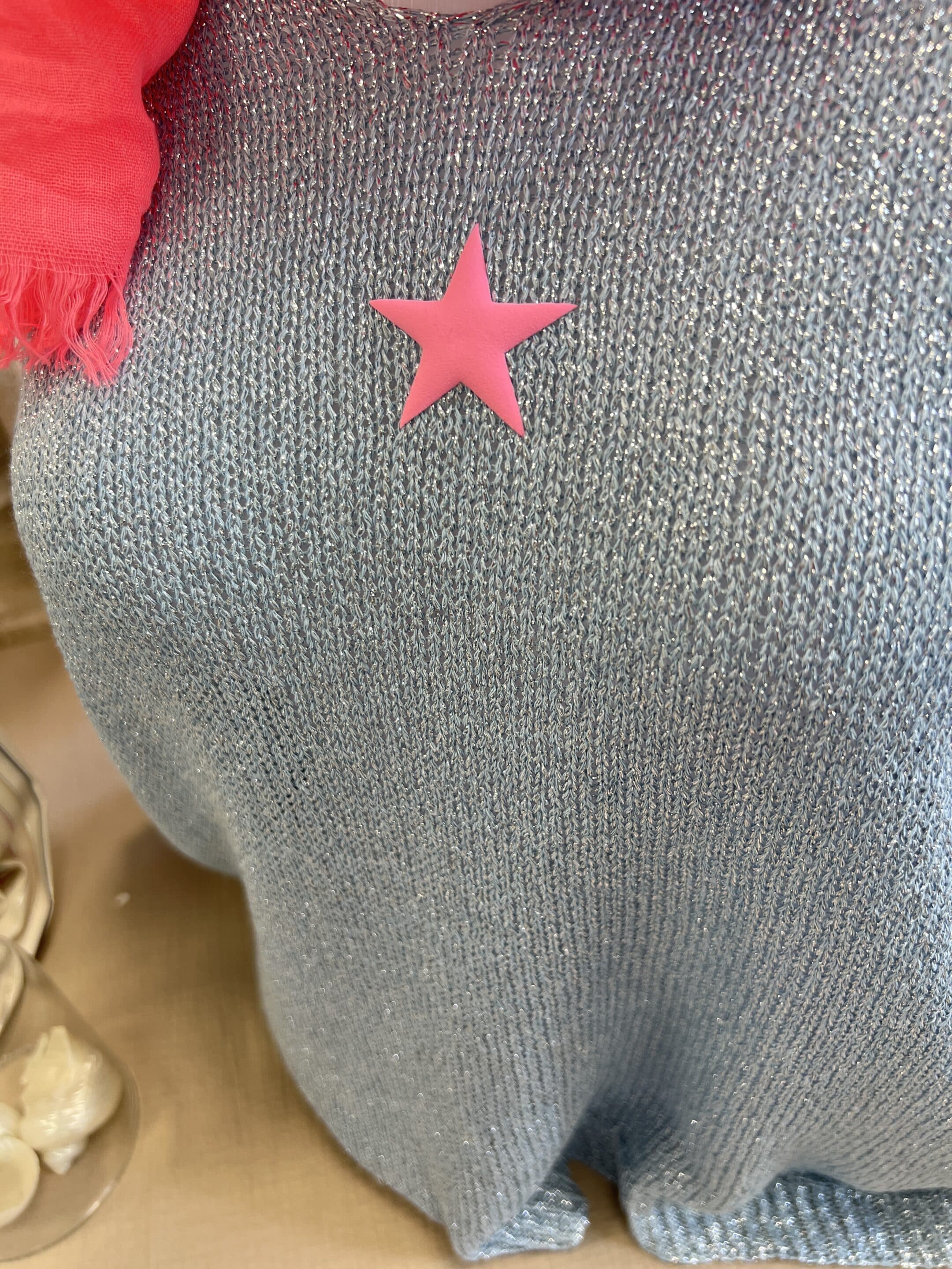Pull lurex bleu gris étoile fluo