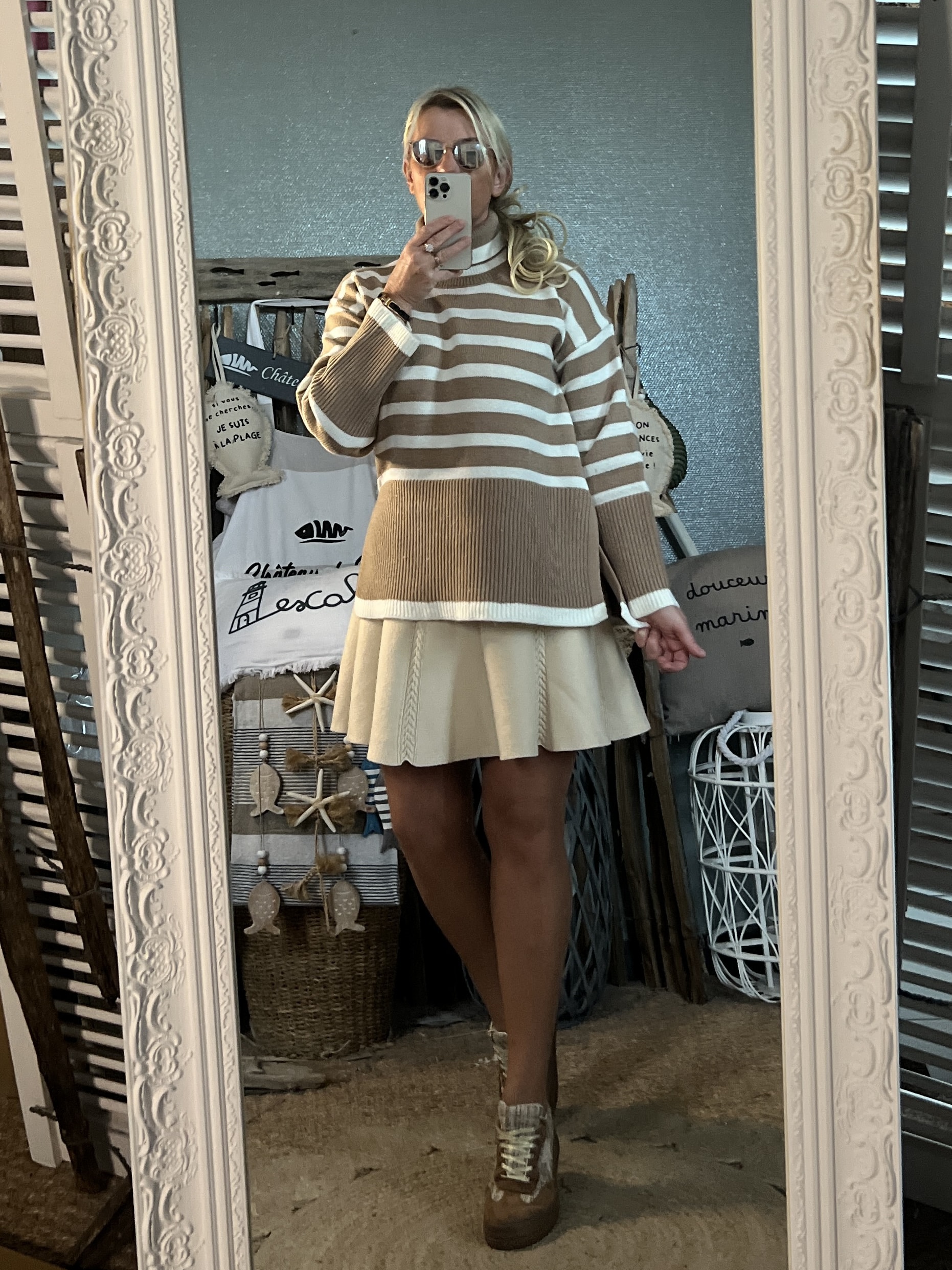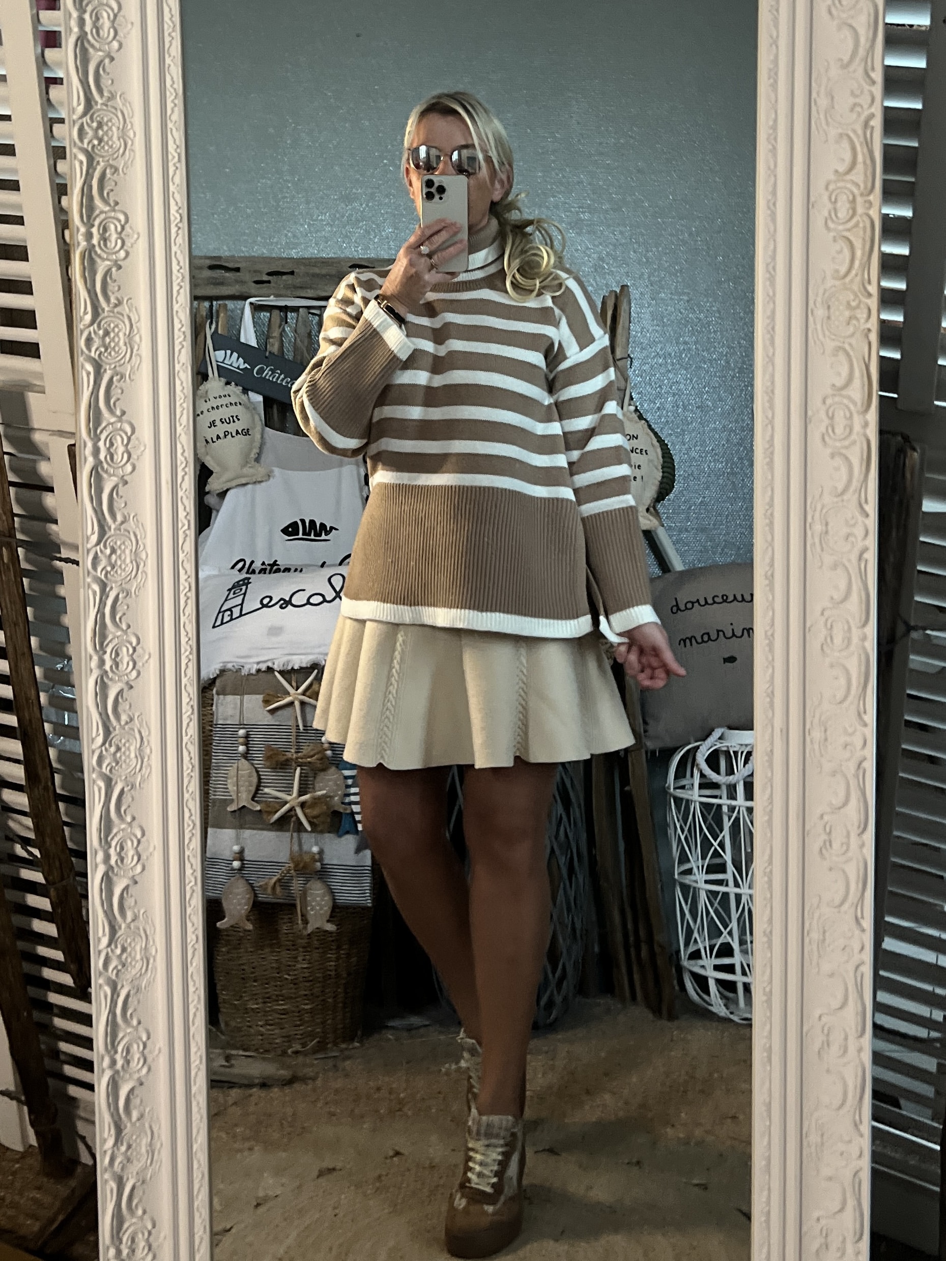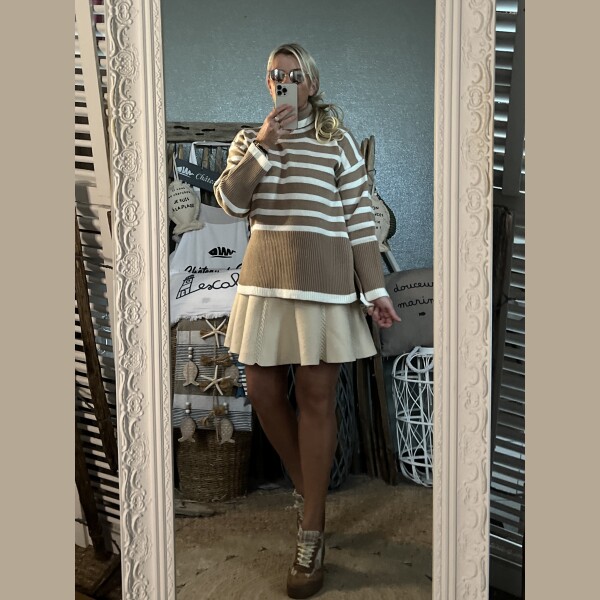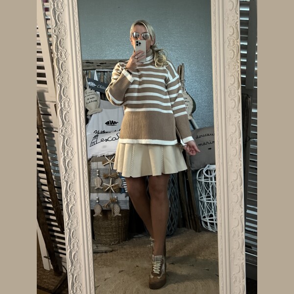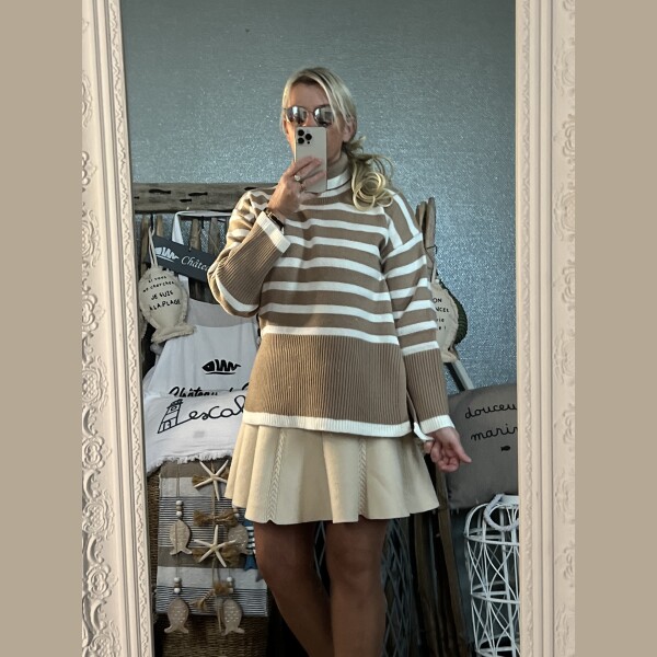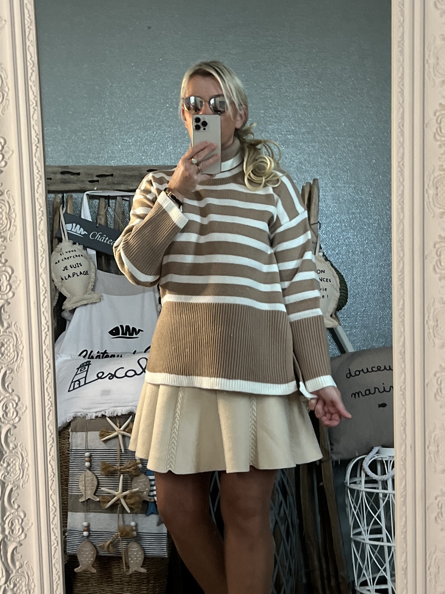 Pull coton polyamide col roulé taille unique 38/46 fendu sur le côté