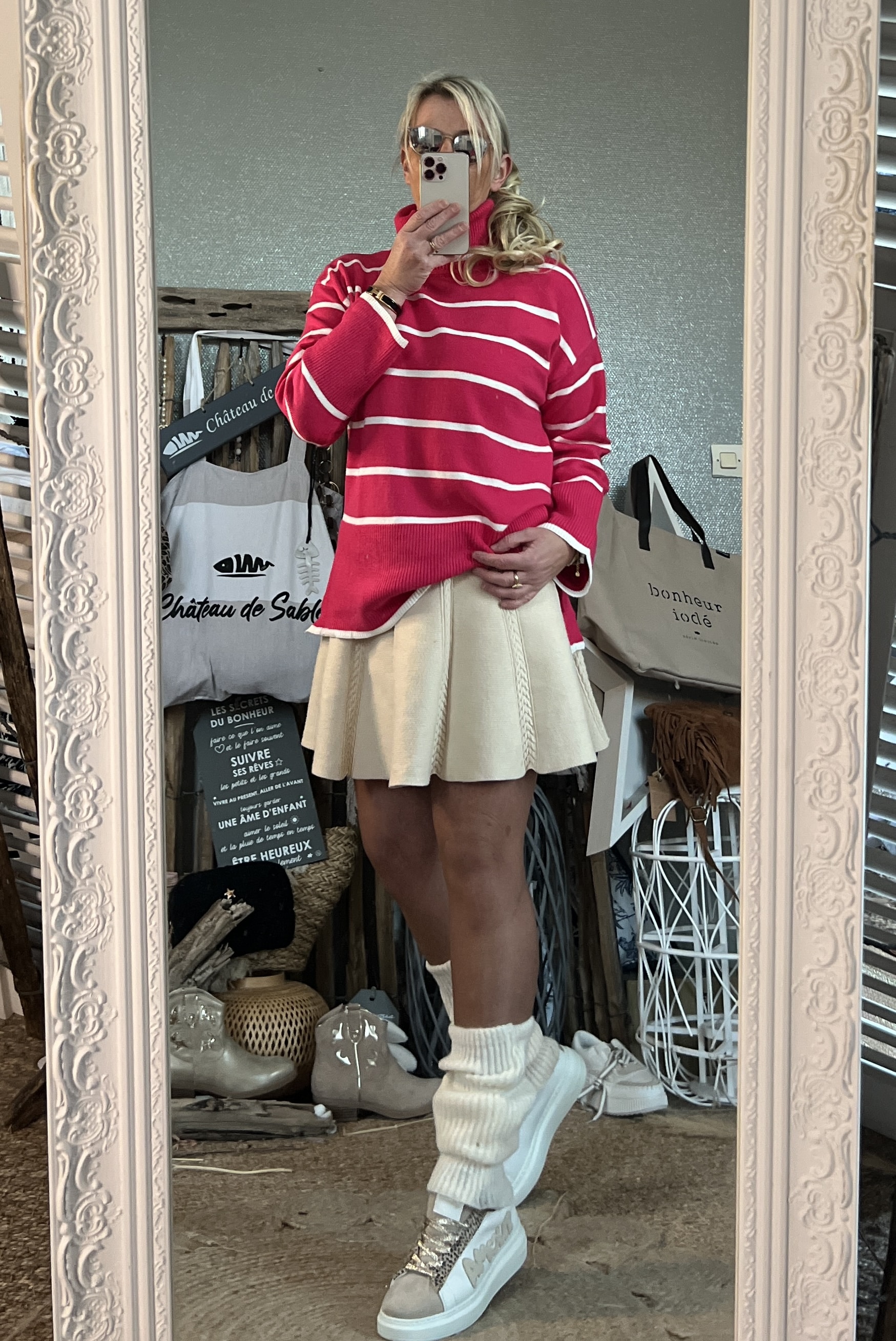 Pull coton polyamide col roulé taille unique 40/46 fendu sur le côté