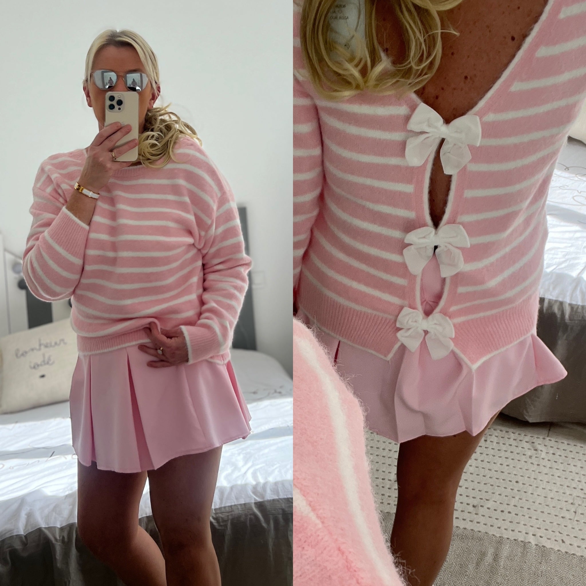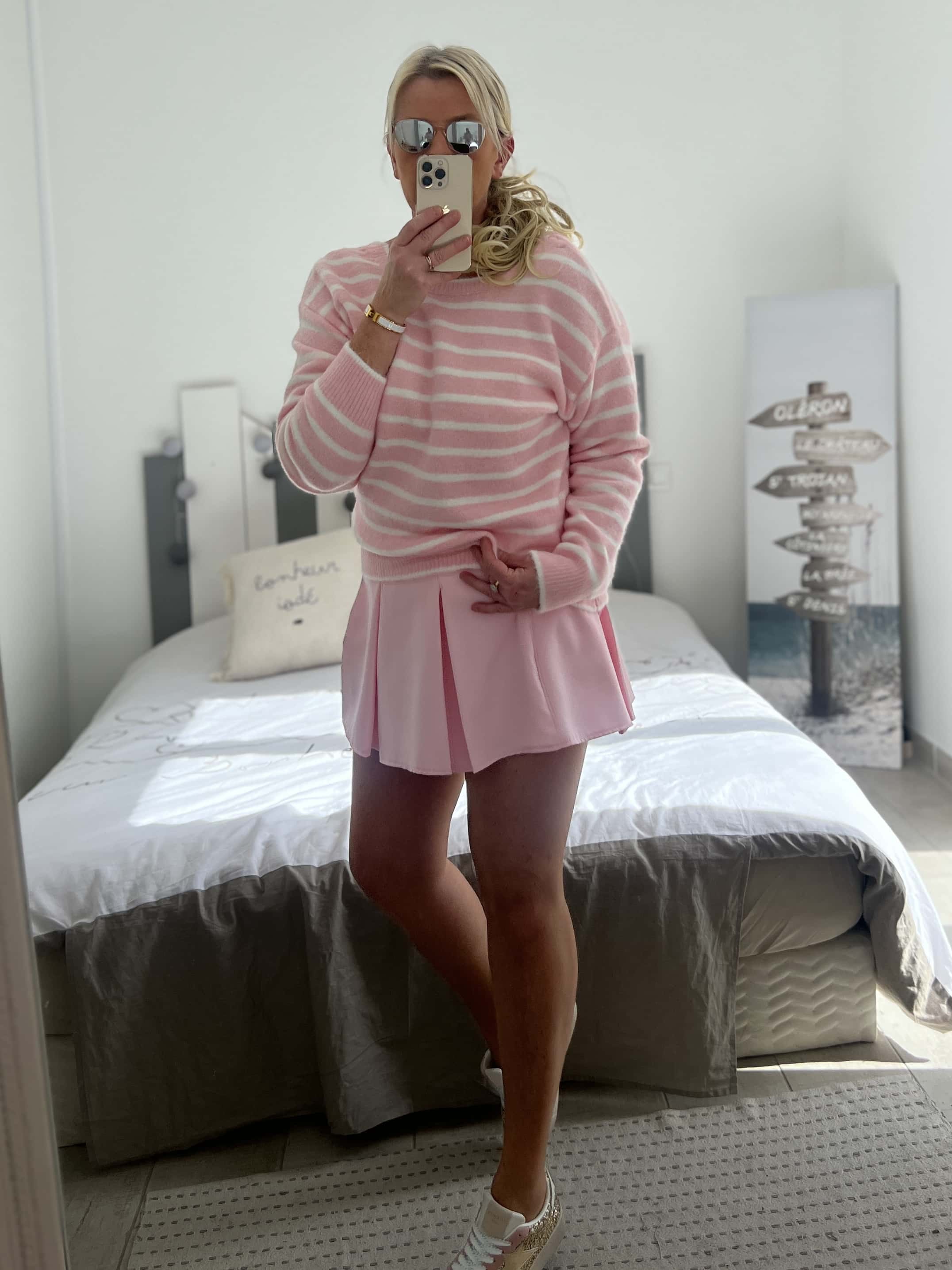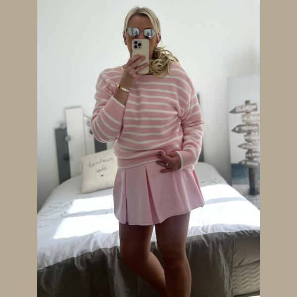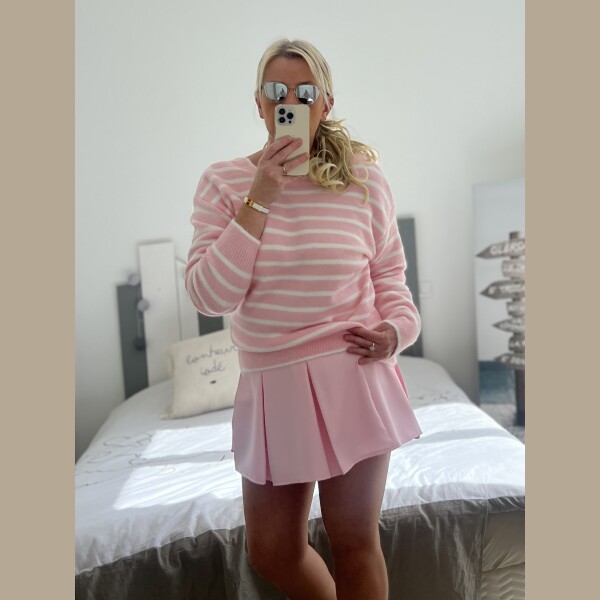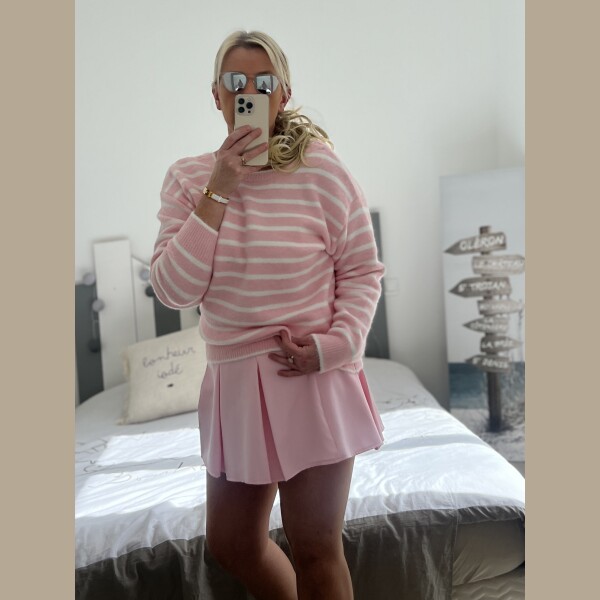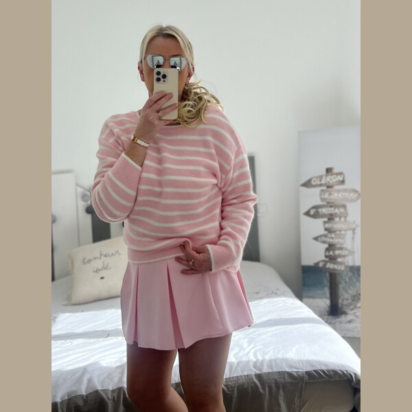 Pull marinière noeuds rose