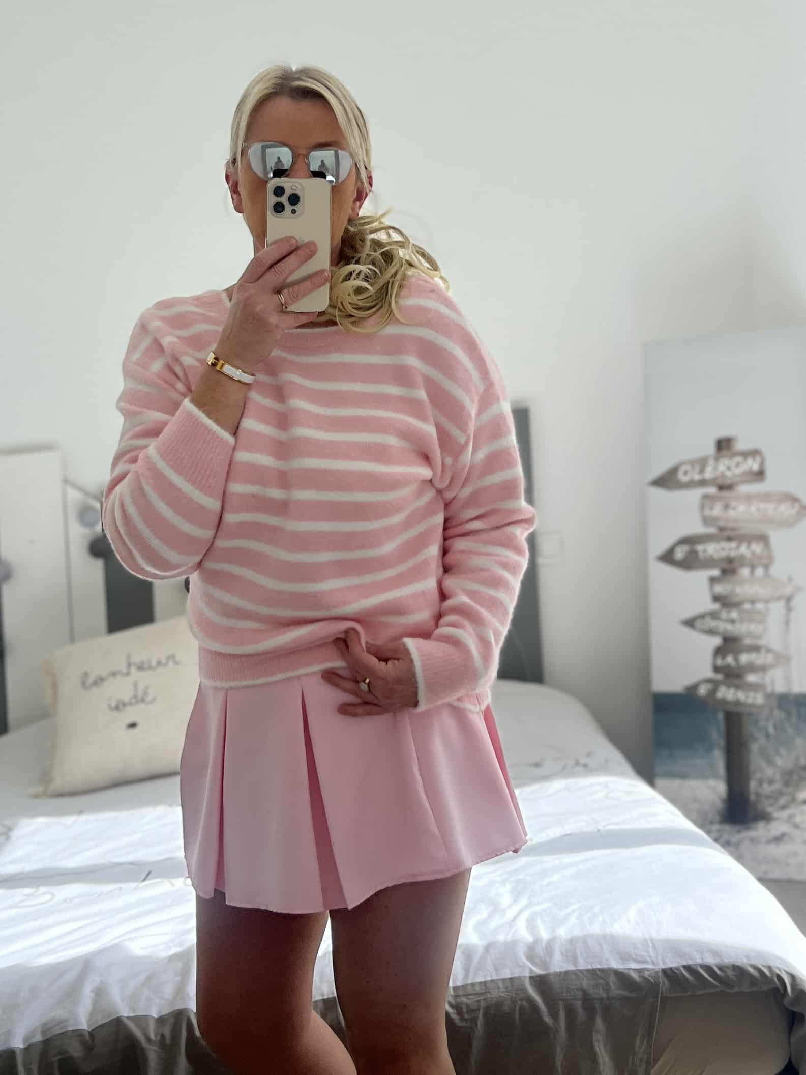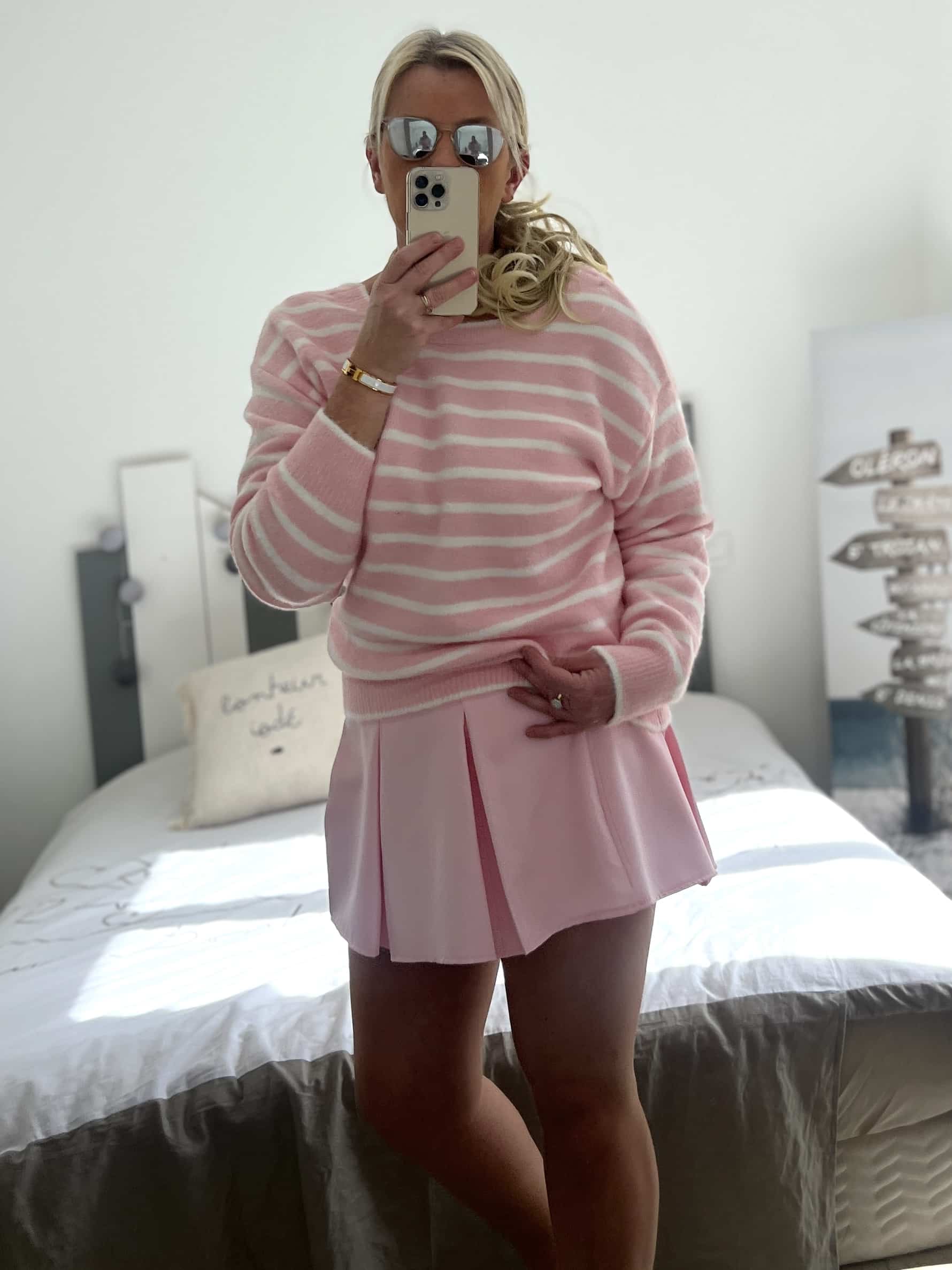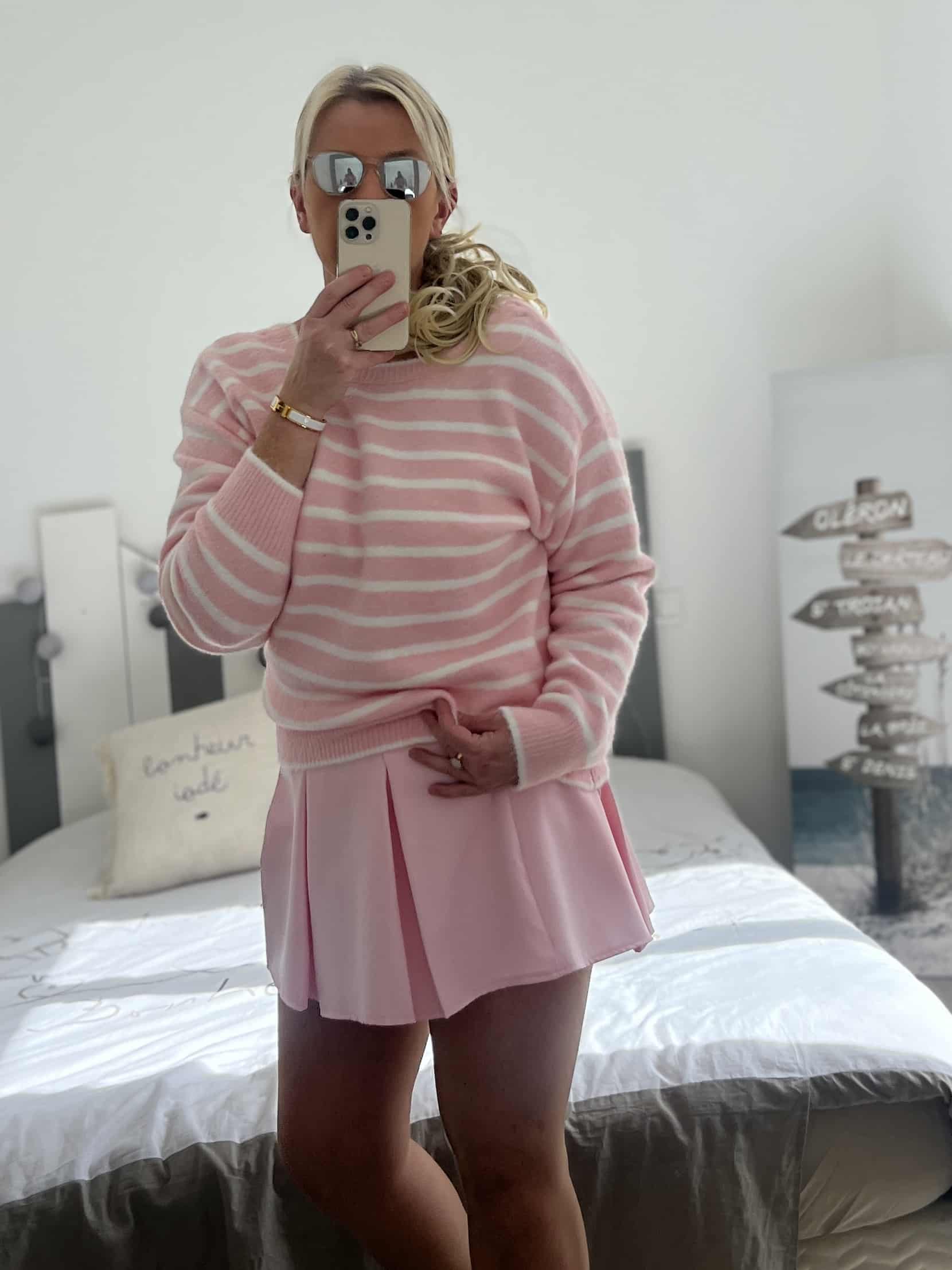 Pull marinière noeuds rose