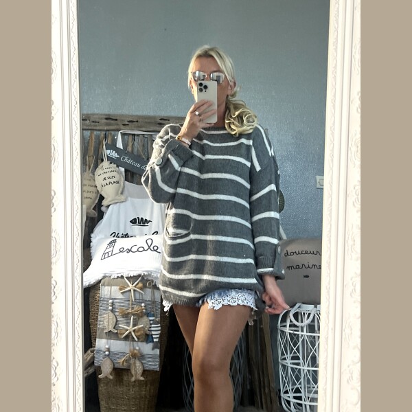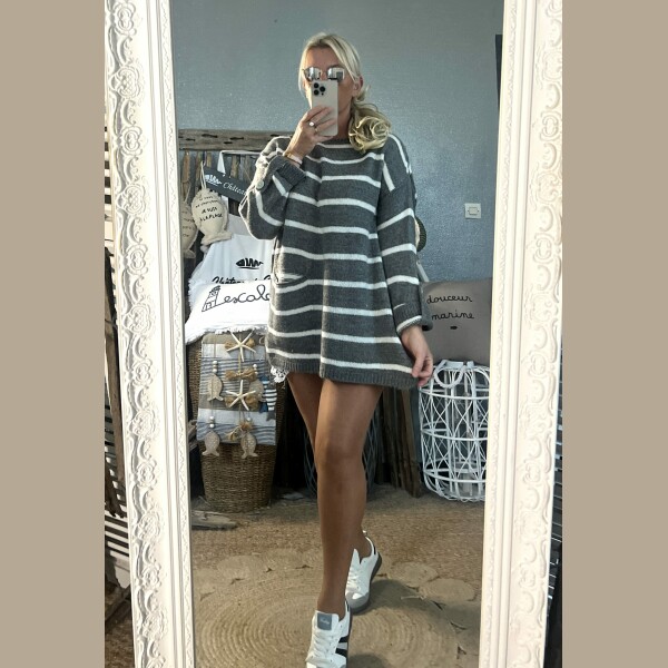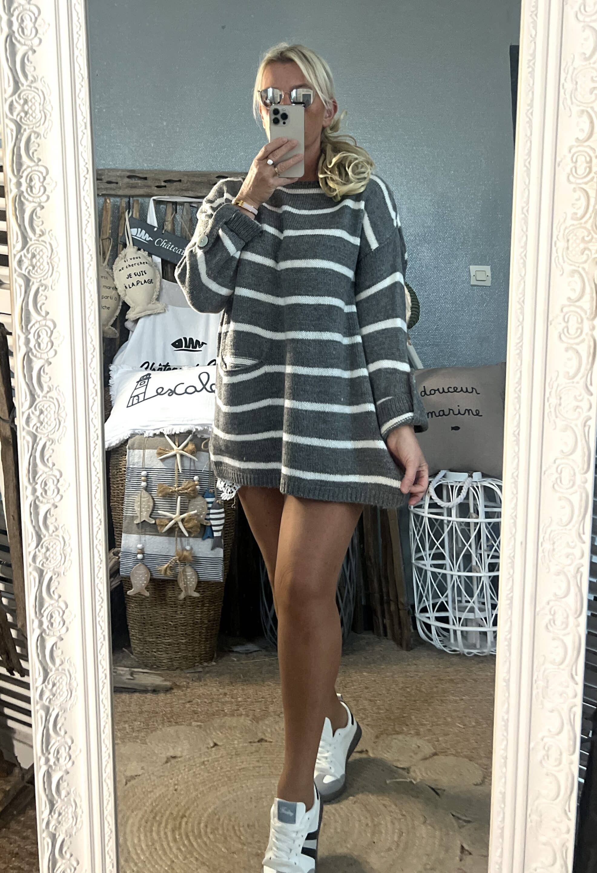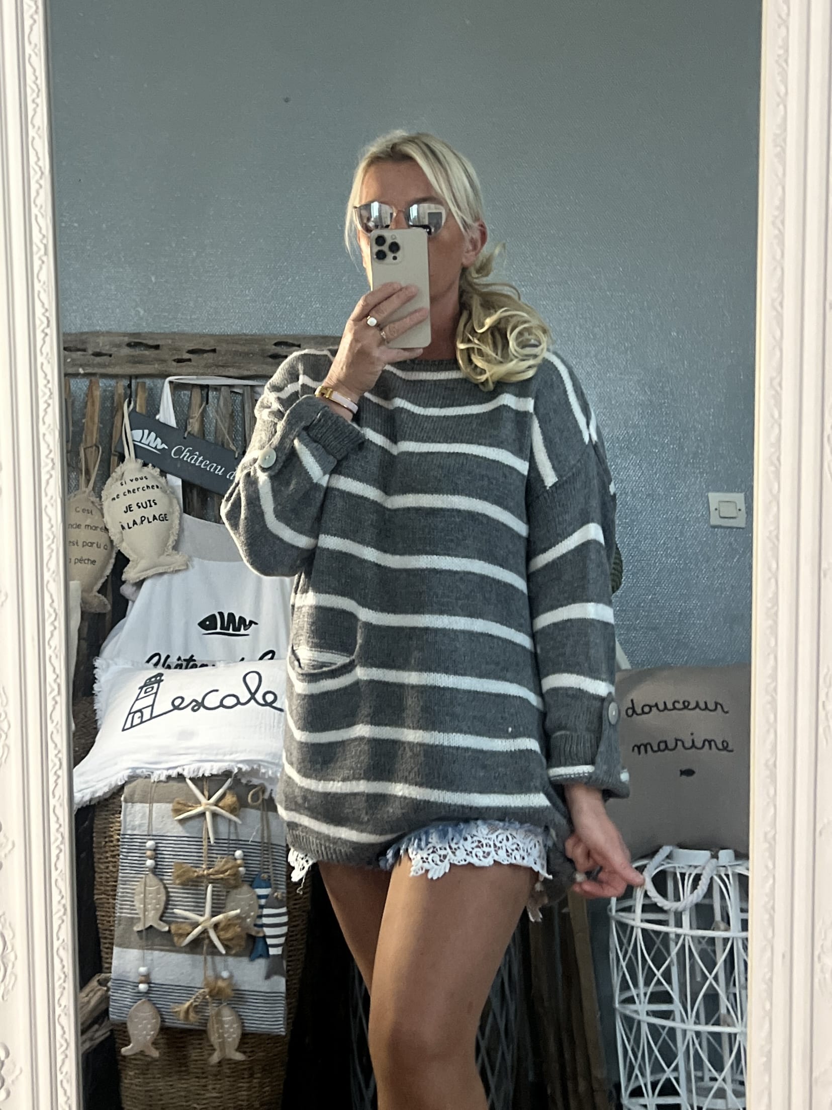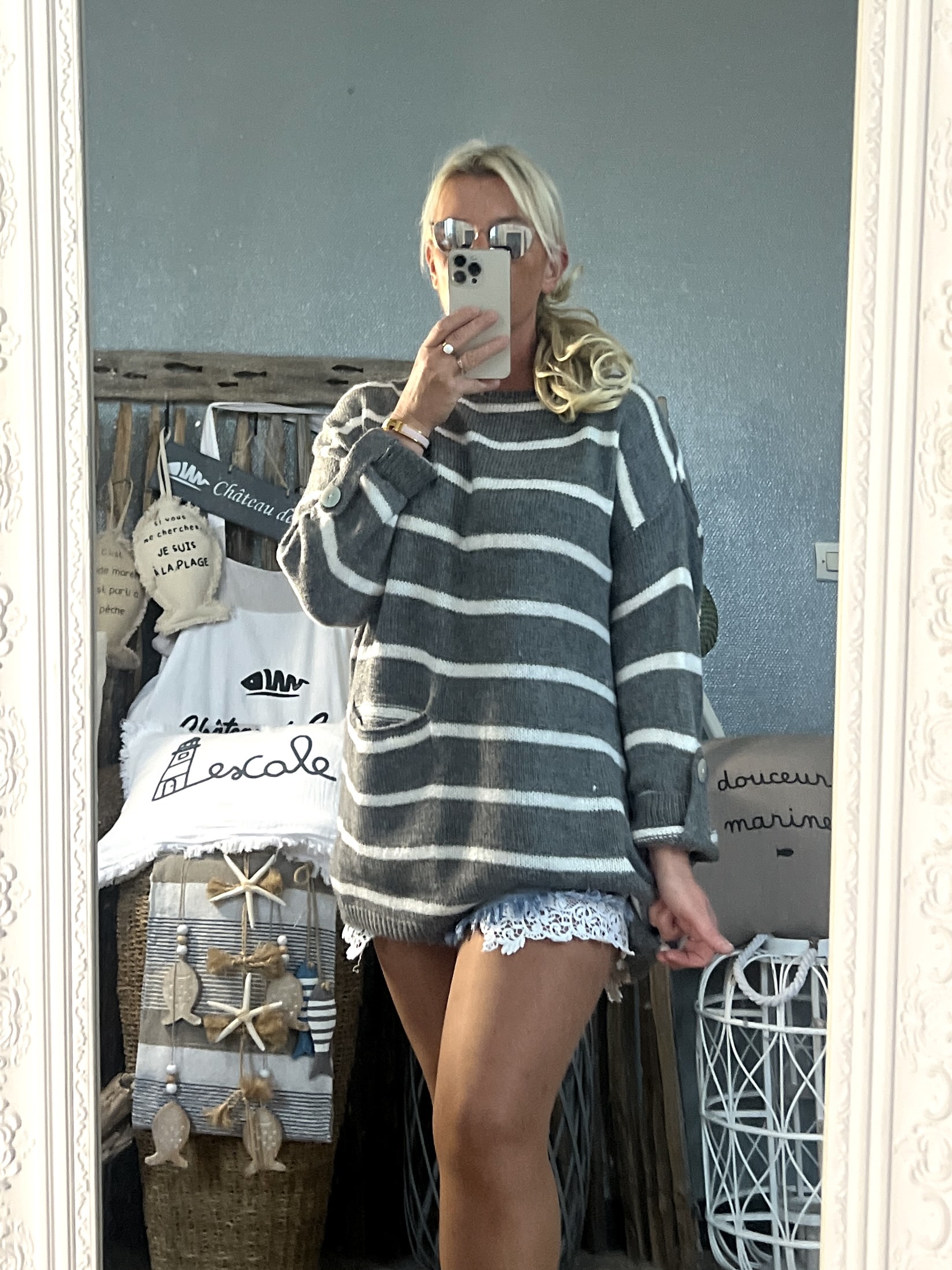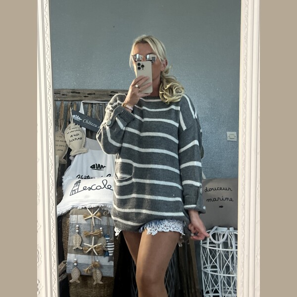 Soyez le premier à laisser votre avis sur “Pull marinière Oversize gris”
