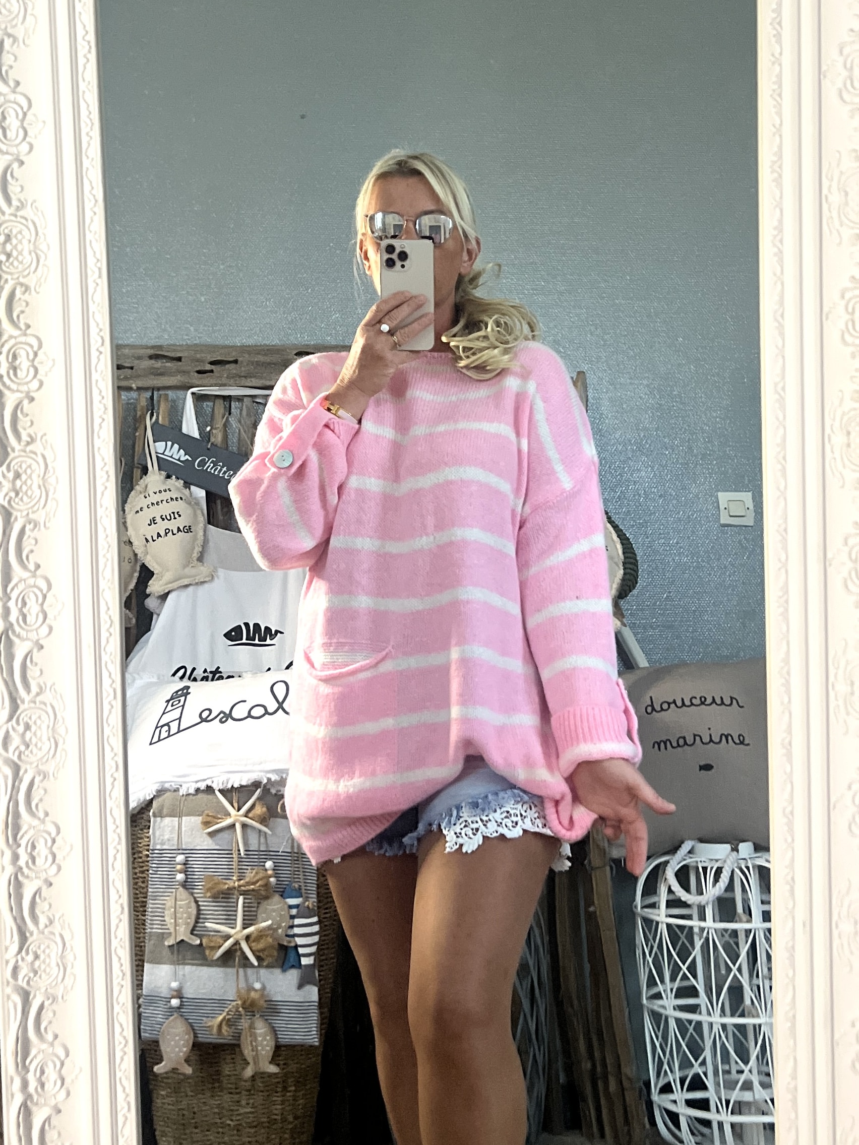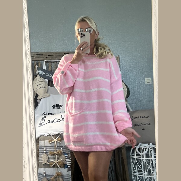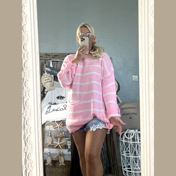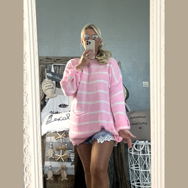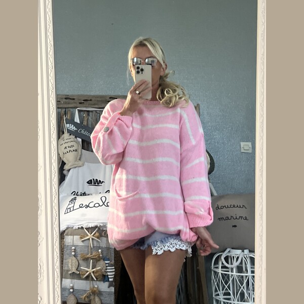 Pull marinière Oversize rose candy