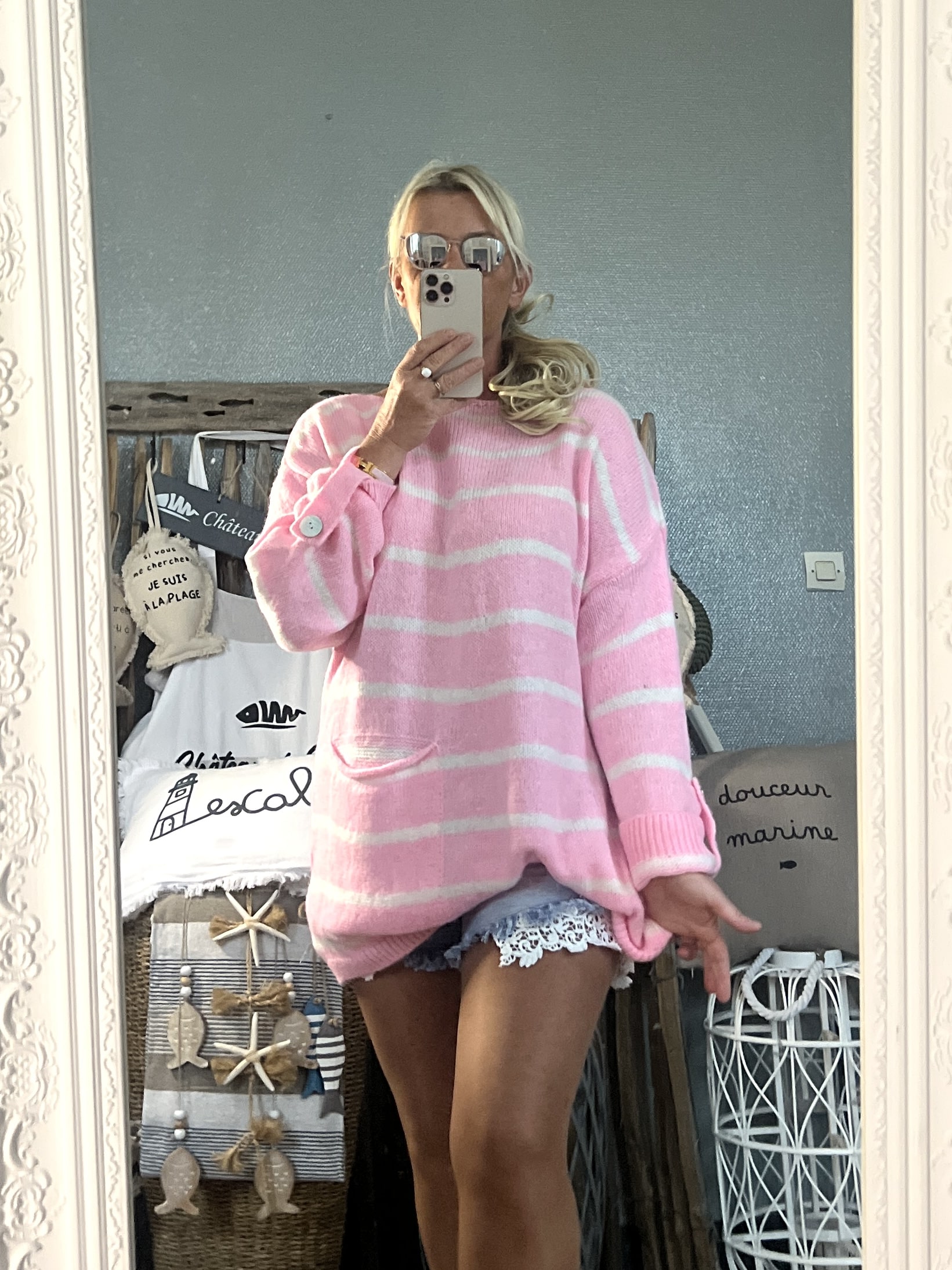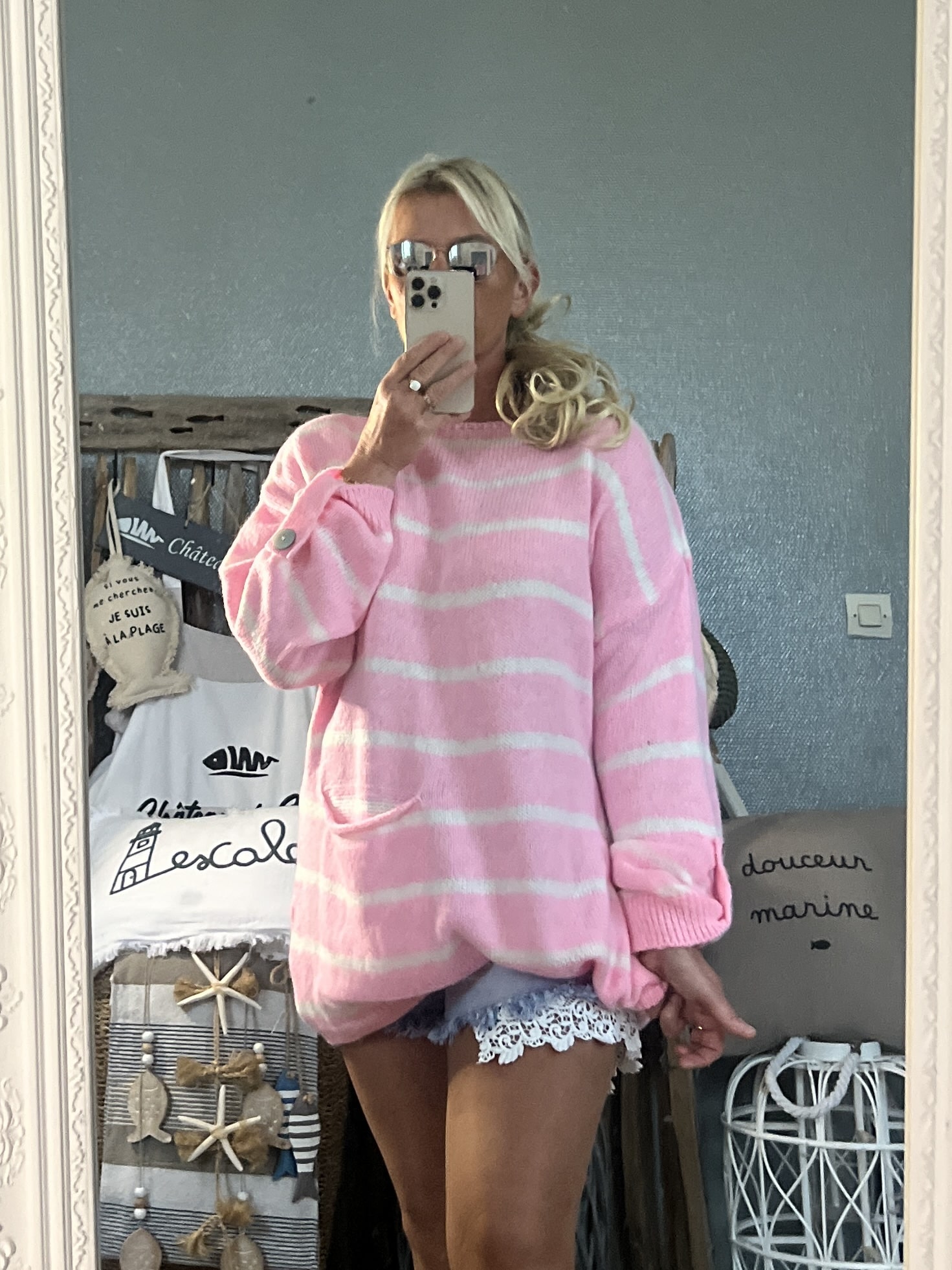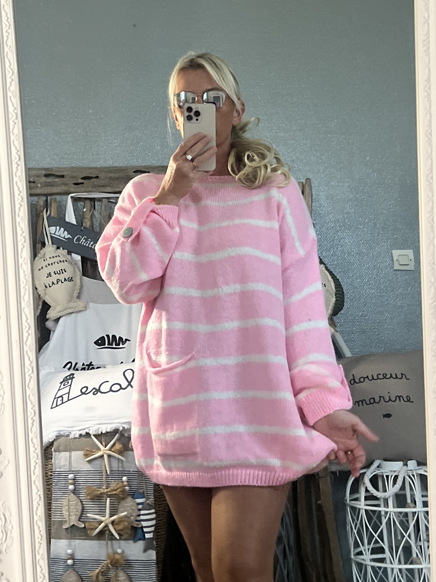 Pull marinière Oversize rose candy