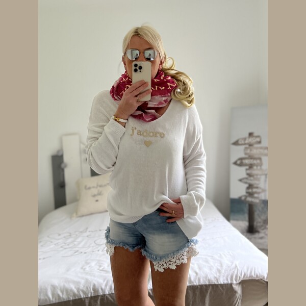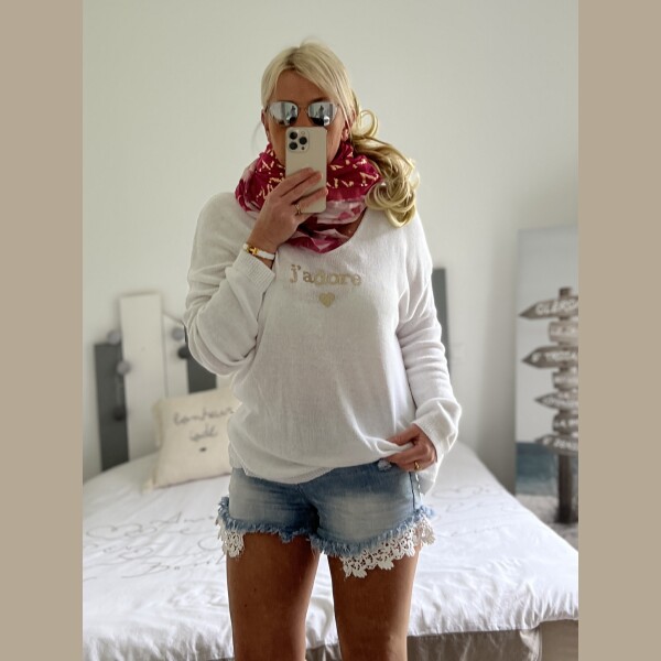 Pull oversize j’adore blanc