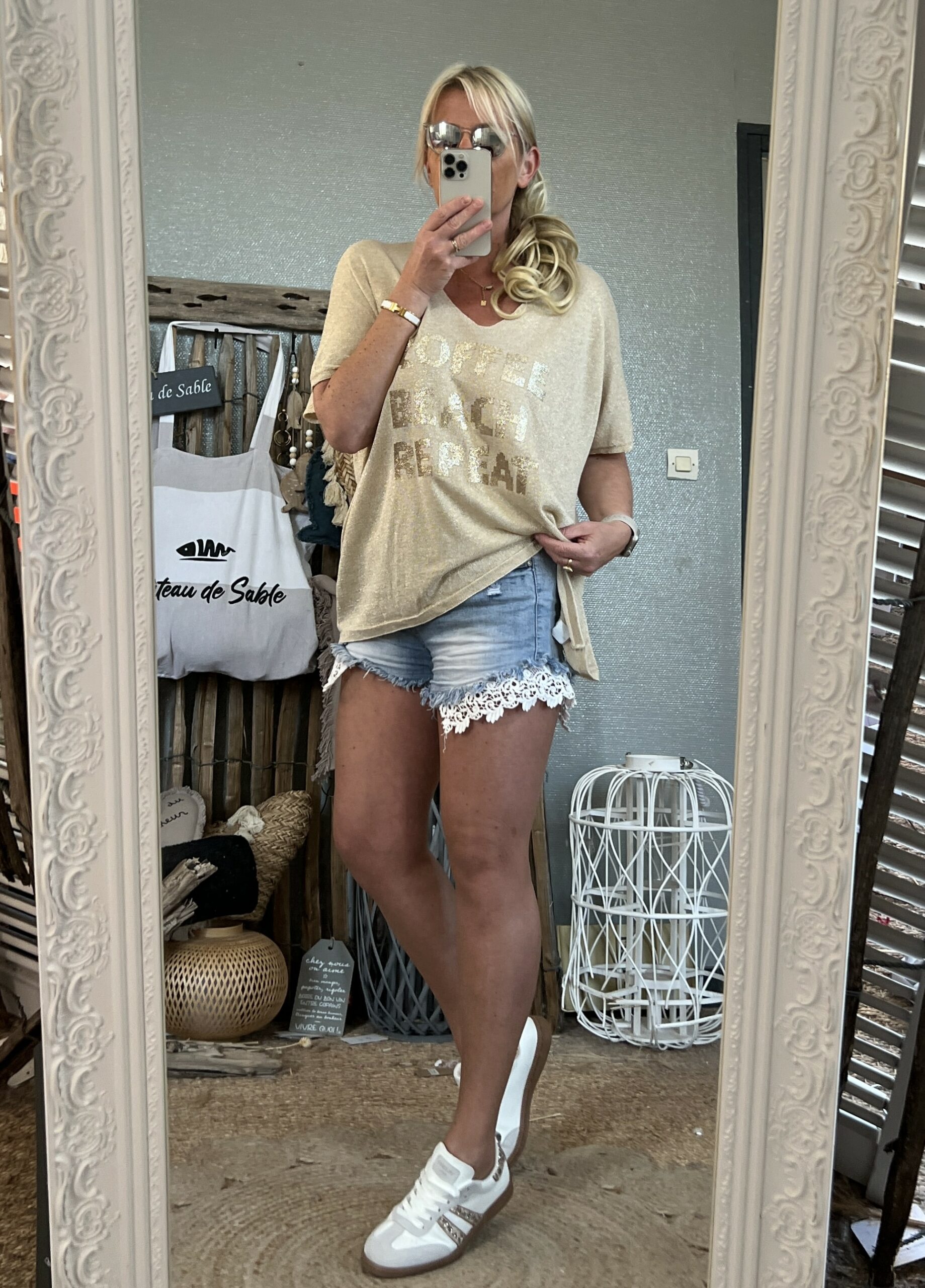Pull pailleté oversize coffee beach repeat
