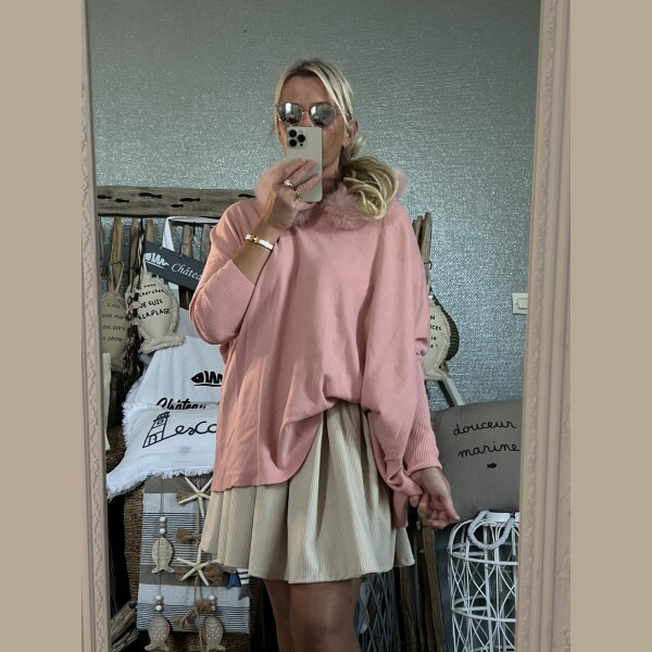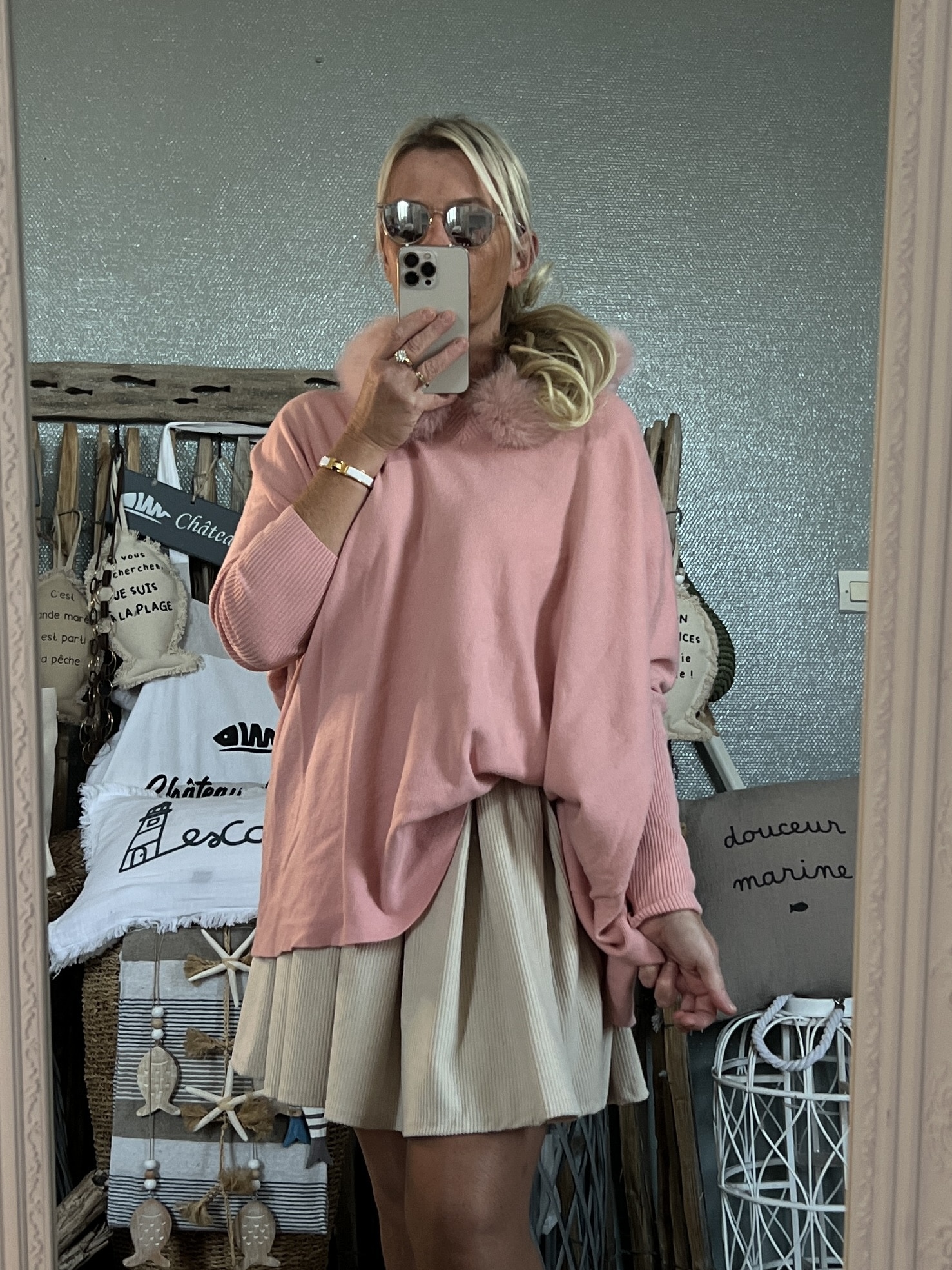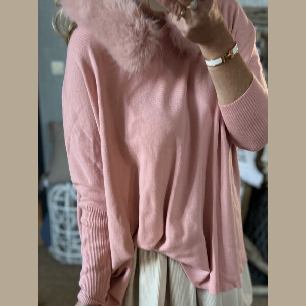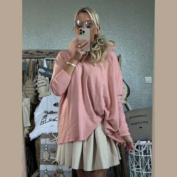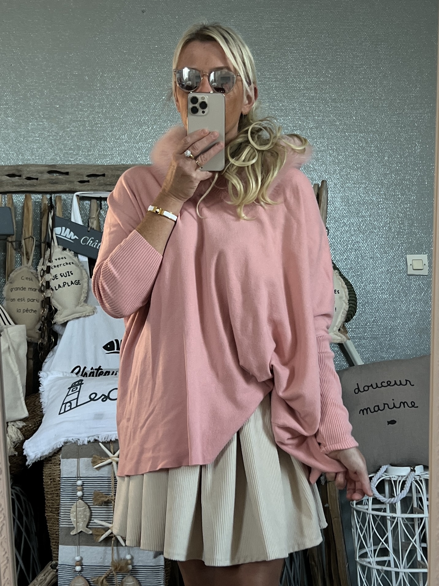 Pull col fausse fourrure peut se retirer taille unique oversize 38/46 coton polyamide polyester