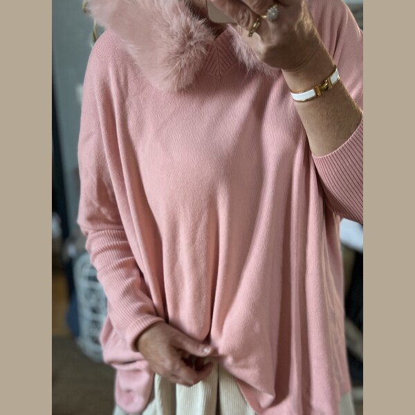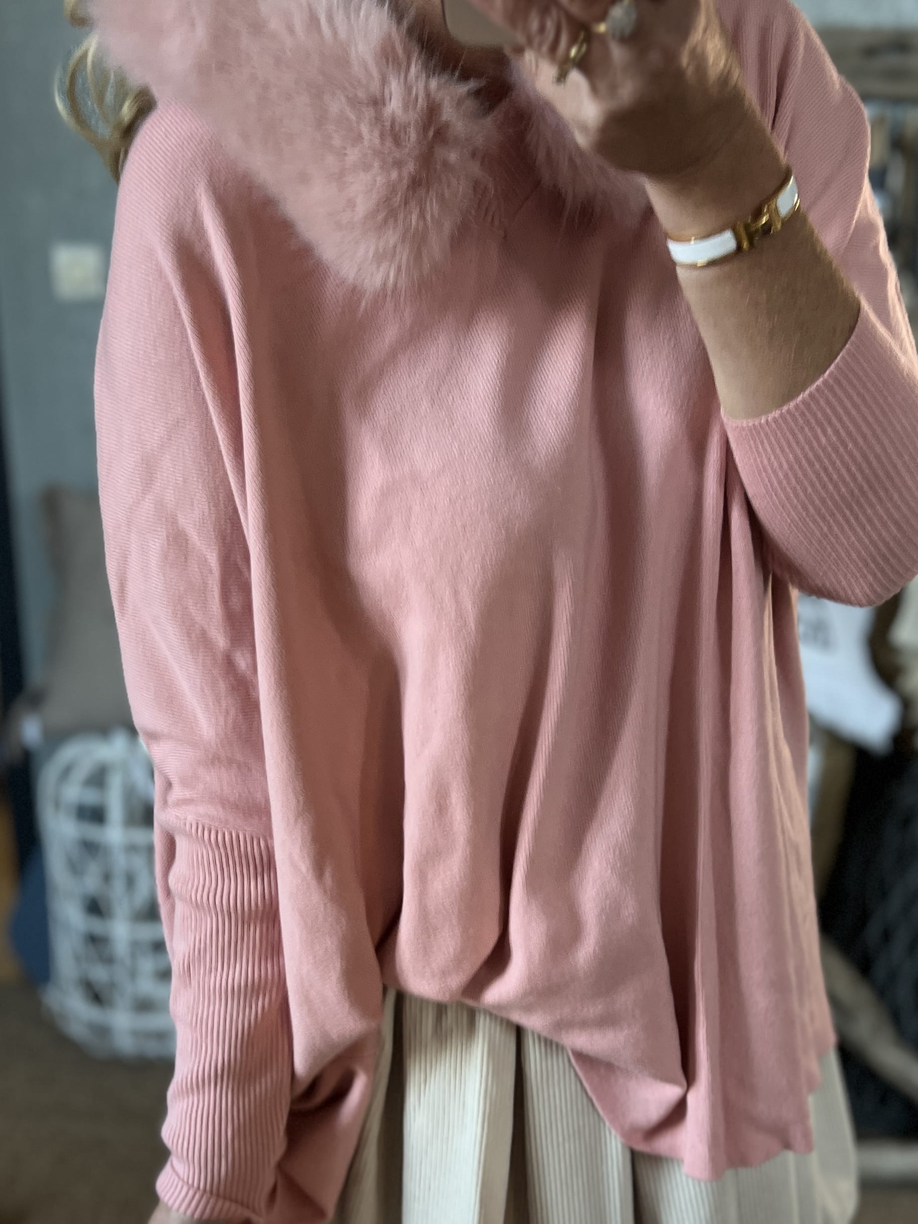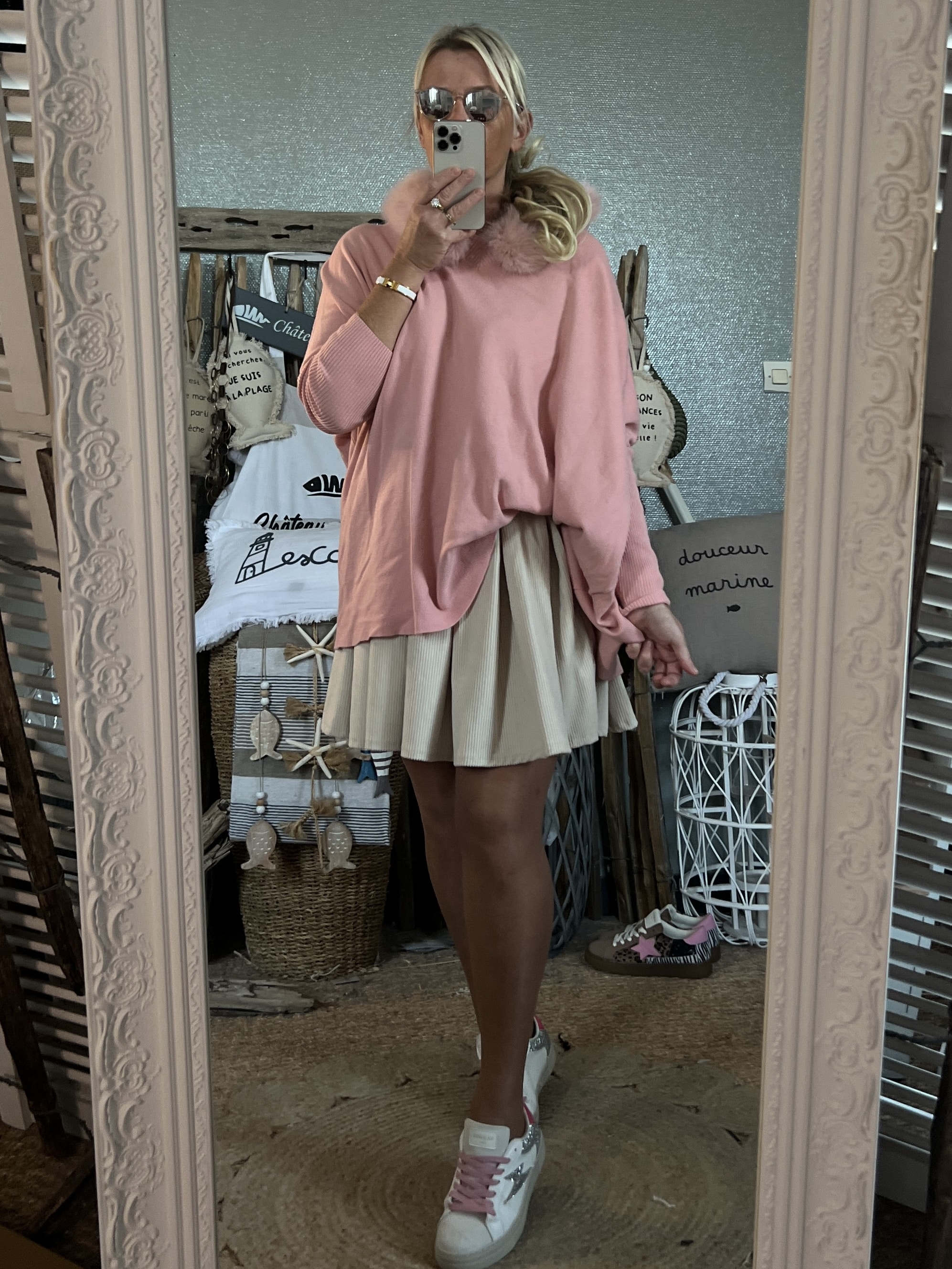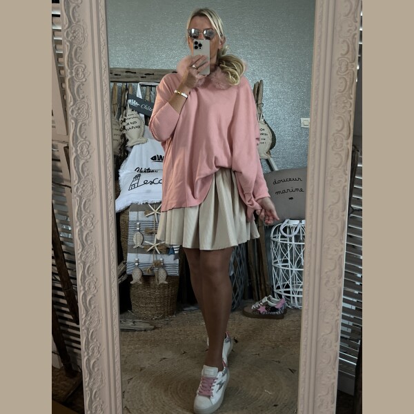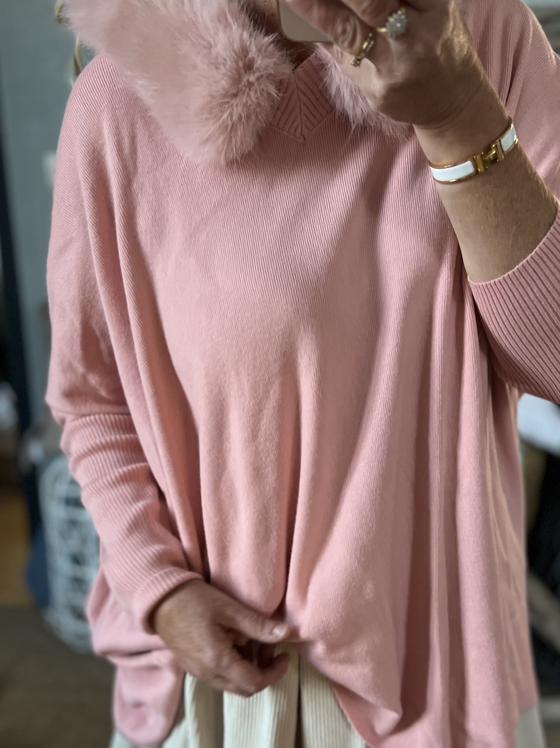 Pull col fausse fourrure peut se retirer taille unique oversize 38/46 coton polyamide polyester