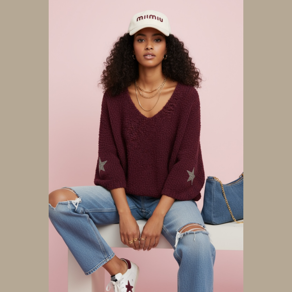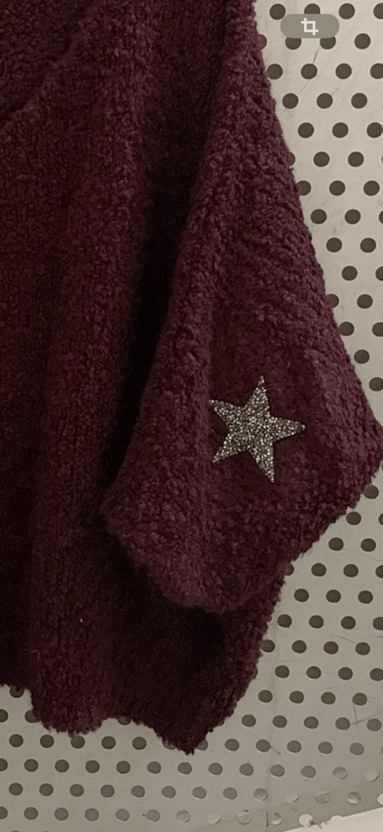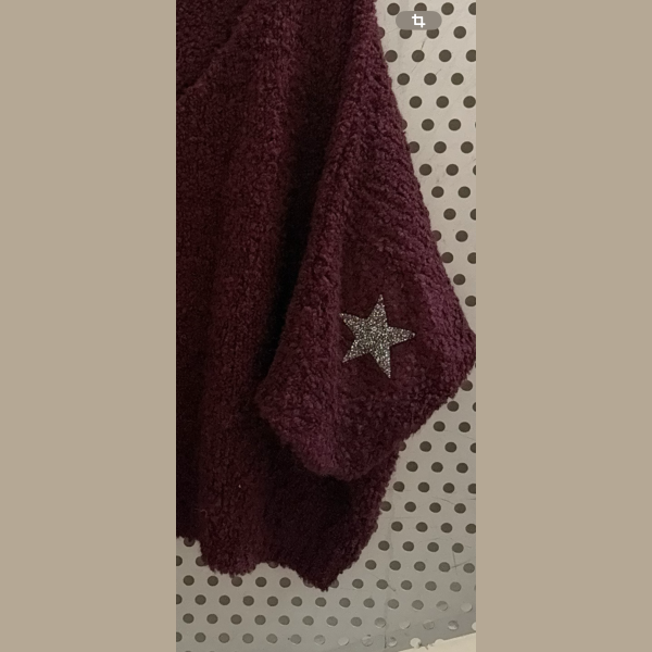Pull oversize à la maille moelleuse, col en V et manches chauve-souris pour un look cocooning tendance. Détails étoiles pailletées sur les manches pour une touche fun et lumineuse. Ultra confortable, chaud et léger à la fois, il s’adapte à toutes les morphologies.