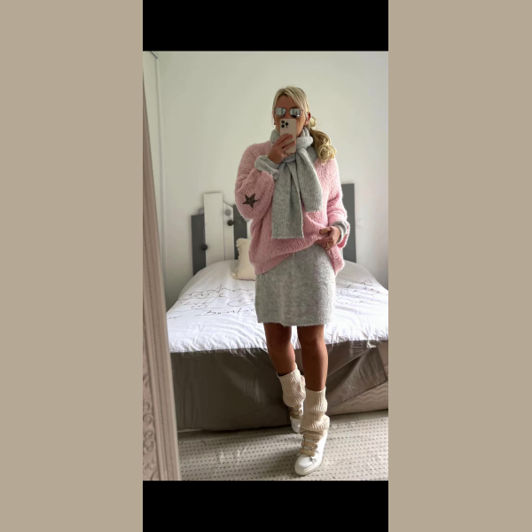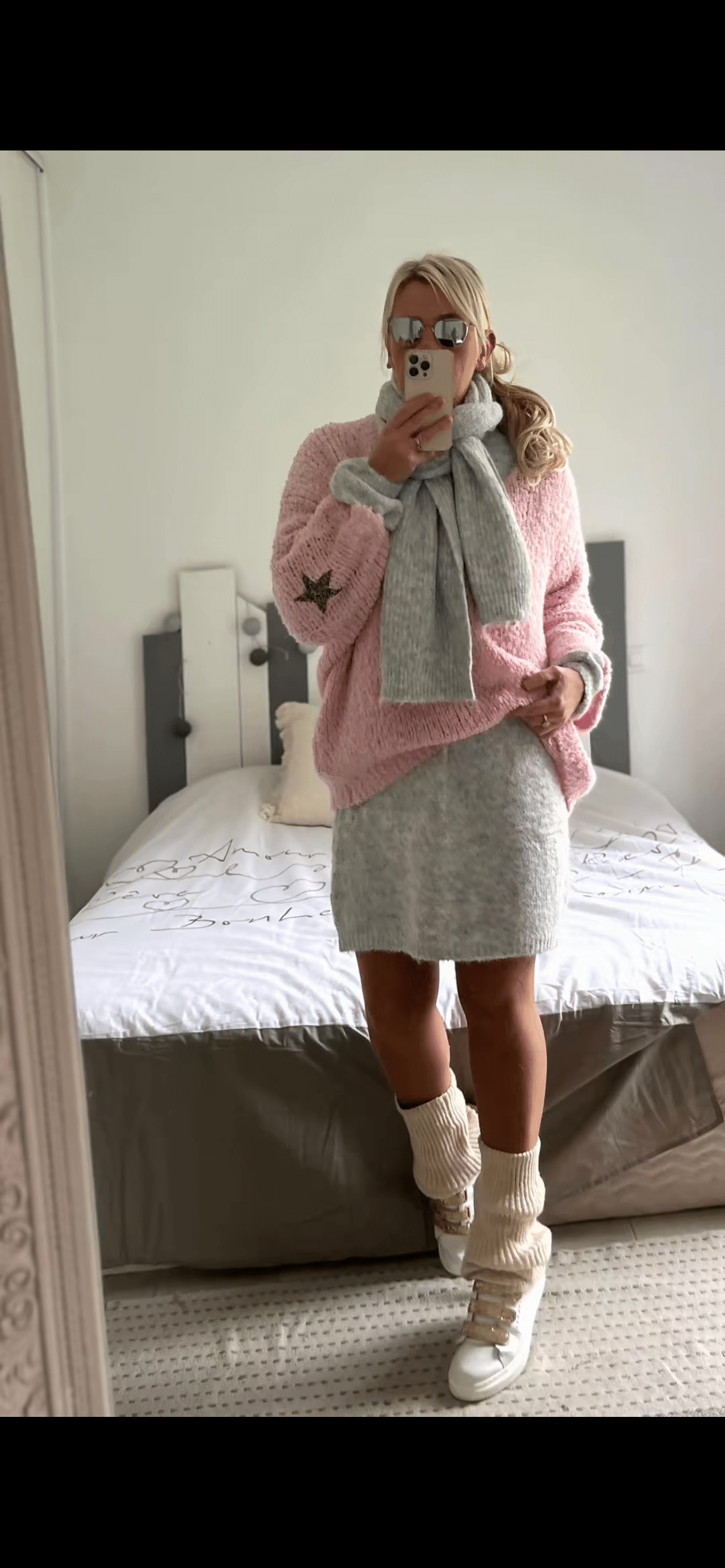 Pull oversize à la maille moelleuse, col en V et manches chauve-souris pour un look cocooning tendance. Détails étoiles pailletées sur les manches pour une touche fun et lumineuse. Ultra confortable, chaud et léger à la fois, il s’adapte à toutes les morphologies.