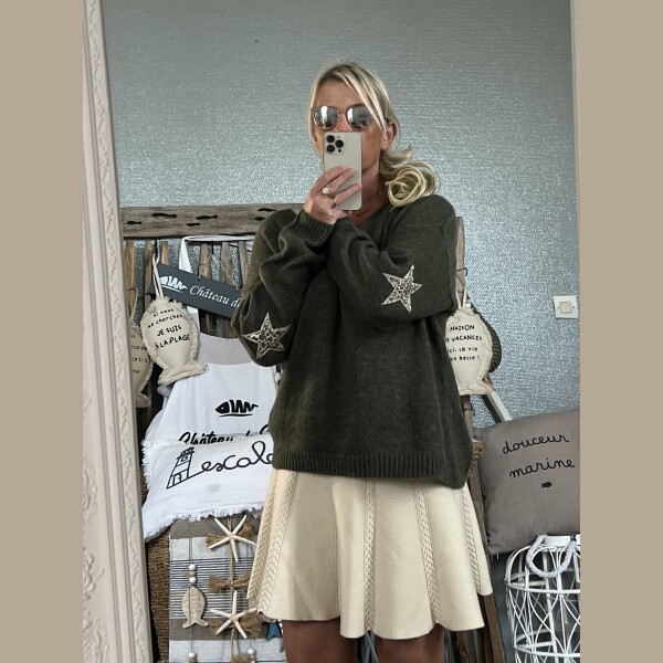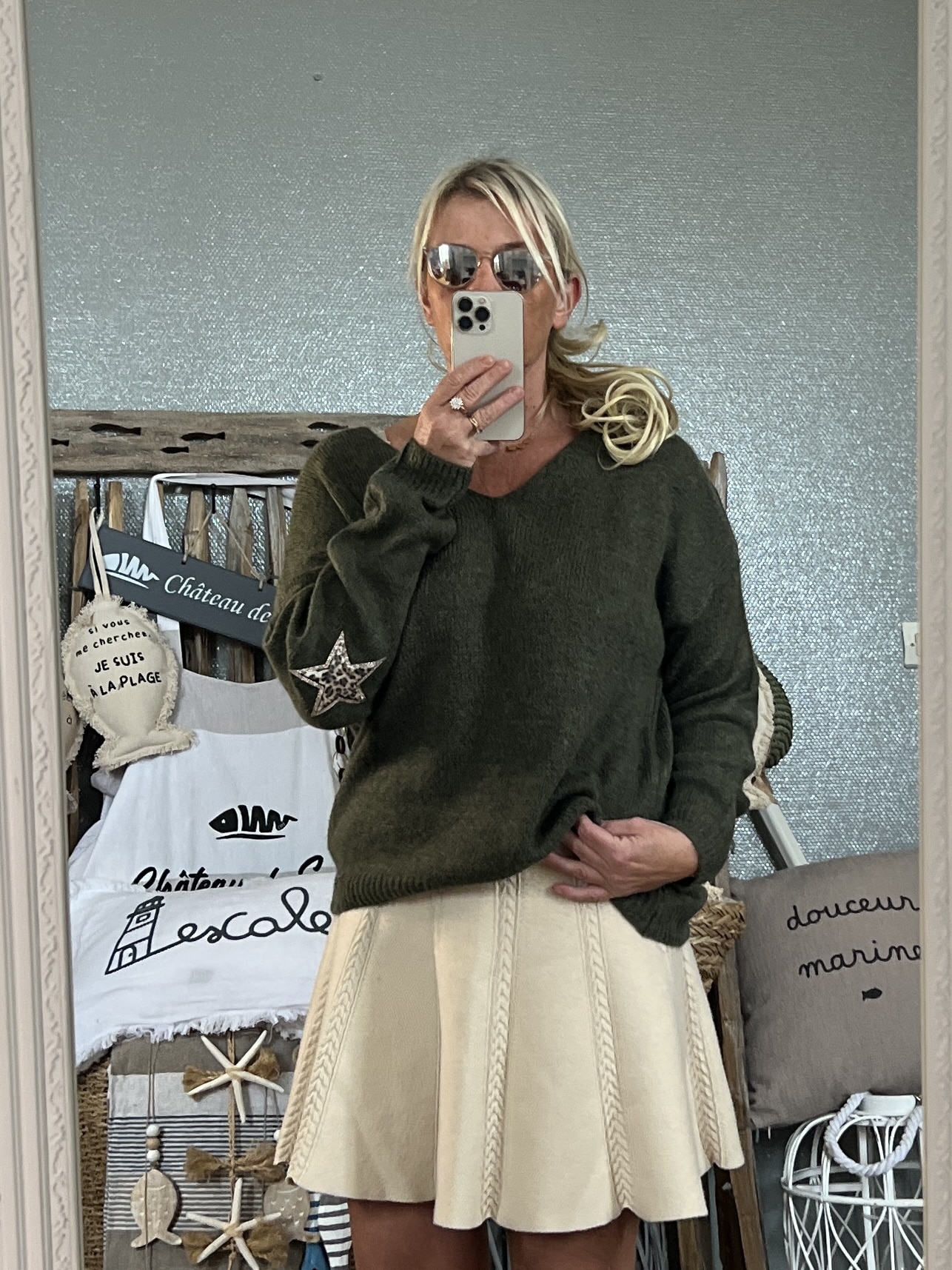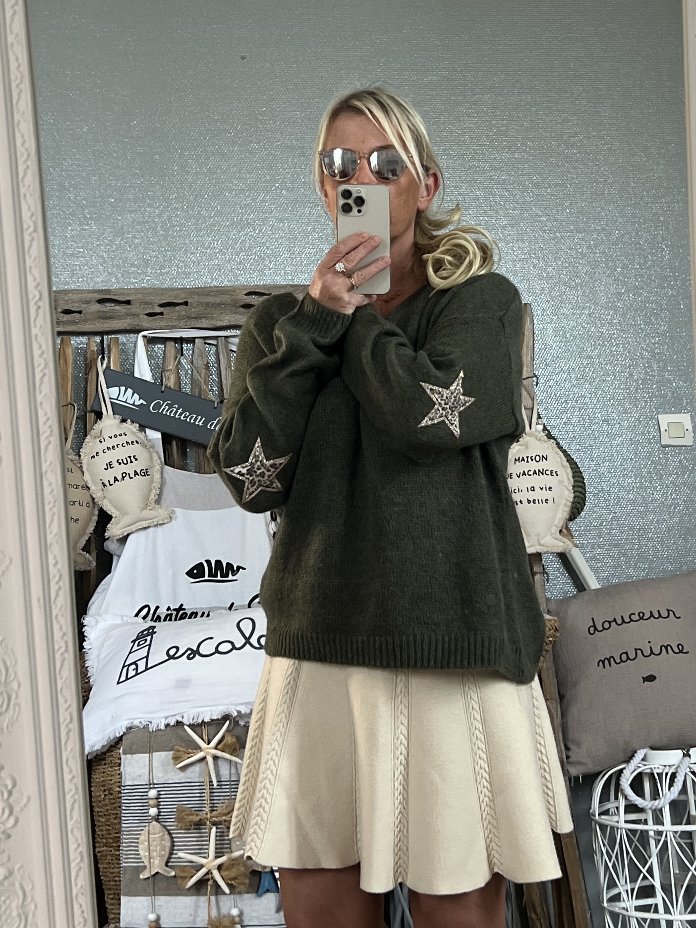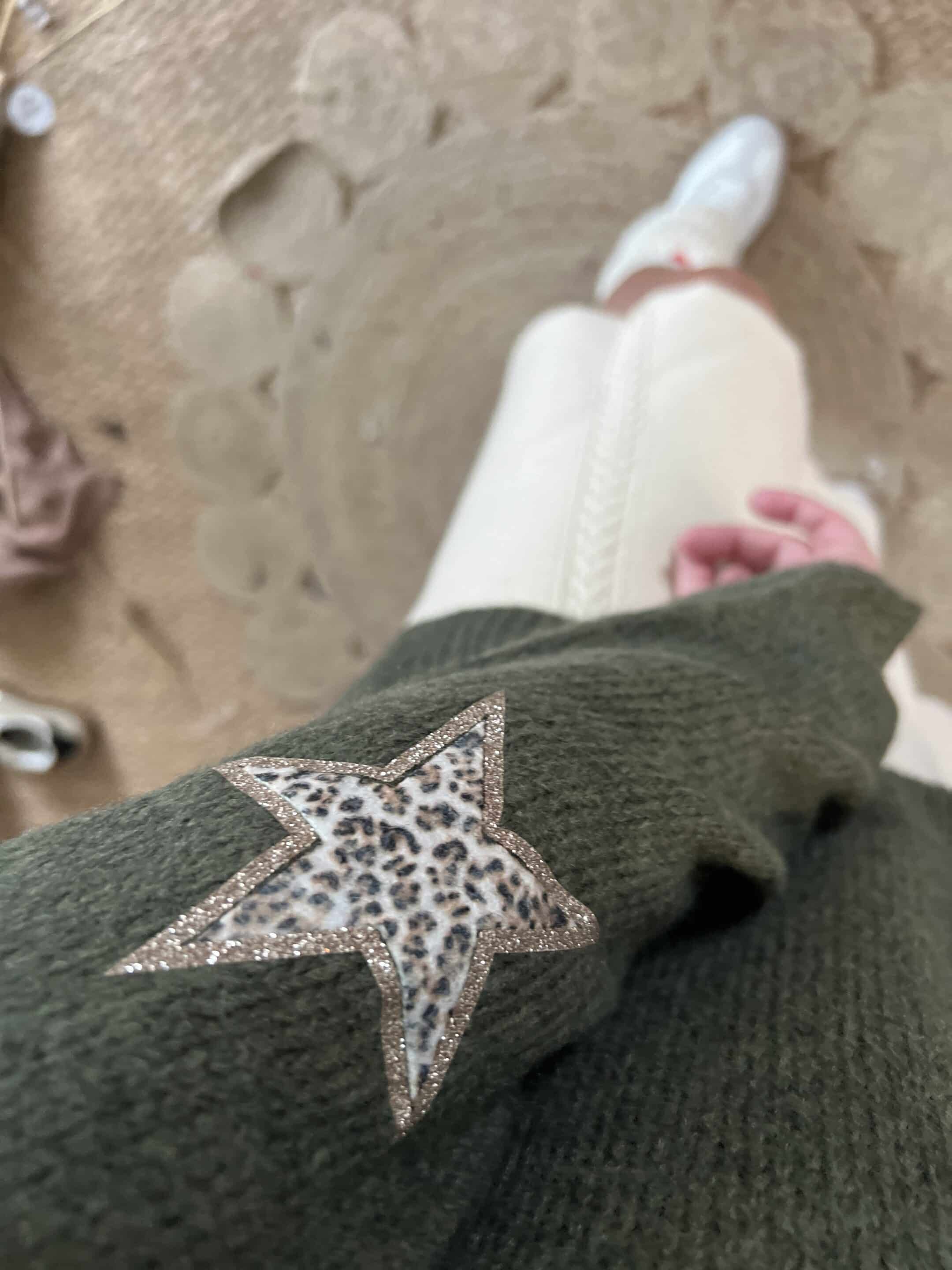 Pull Avec Deux Étoile Léopard Sur Manches , Taille Unique, Il Convient Du 36 Au 42.