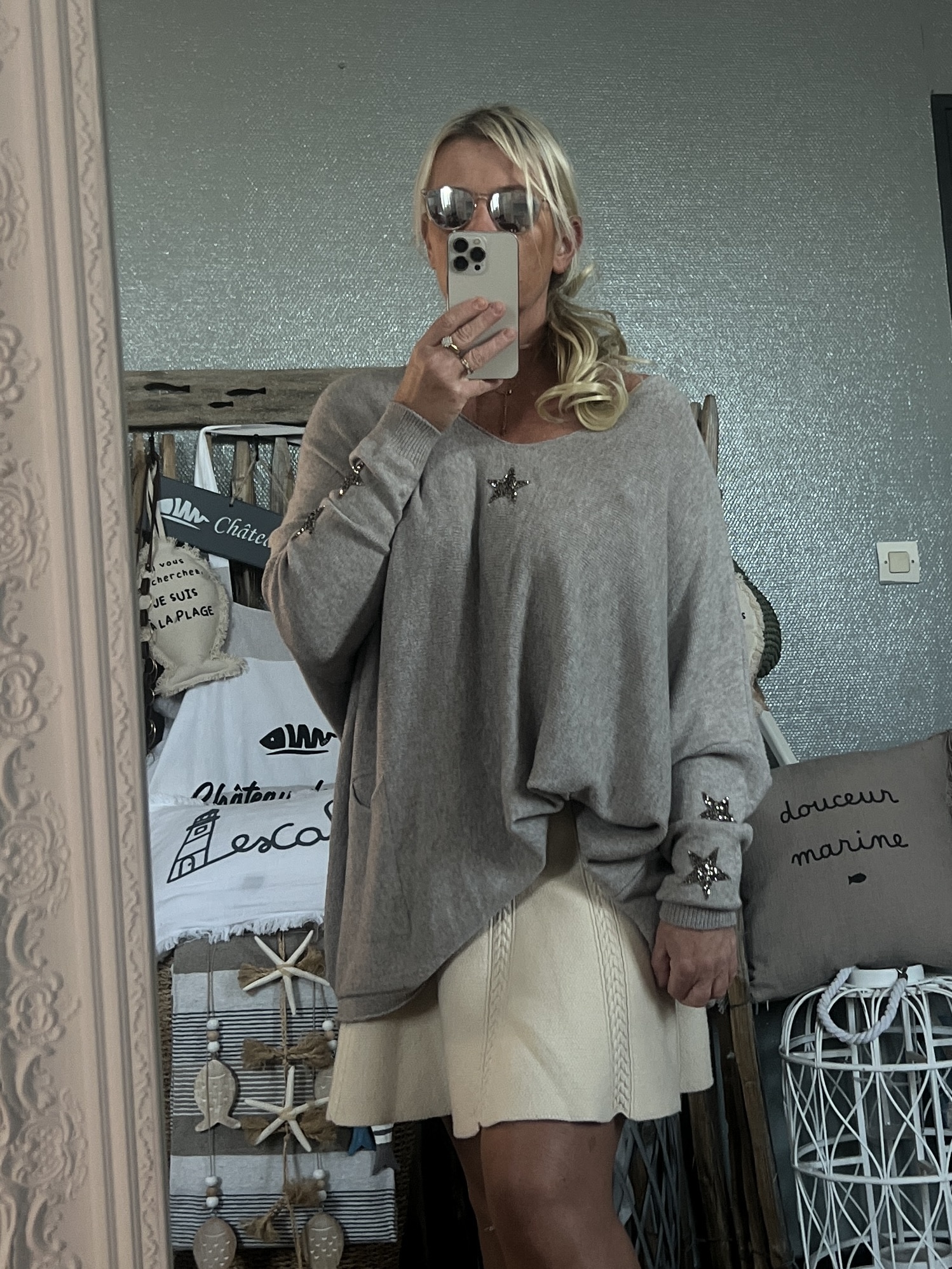 Soyez le premier à laisser votre avis sur “Pull stars strass T44/50 taupe”