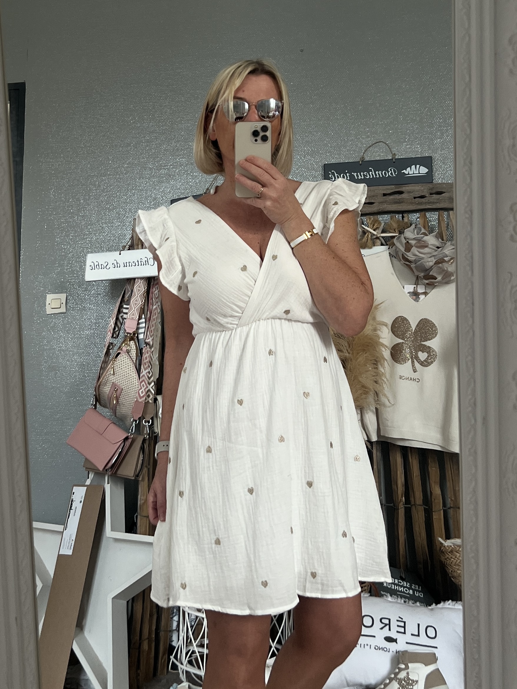Robe gaze cœurs dorés