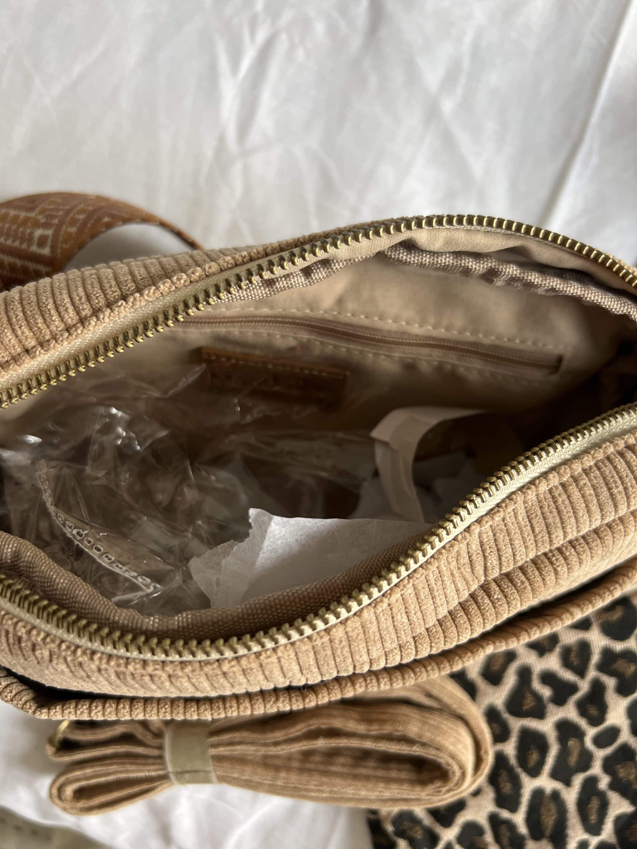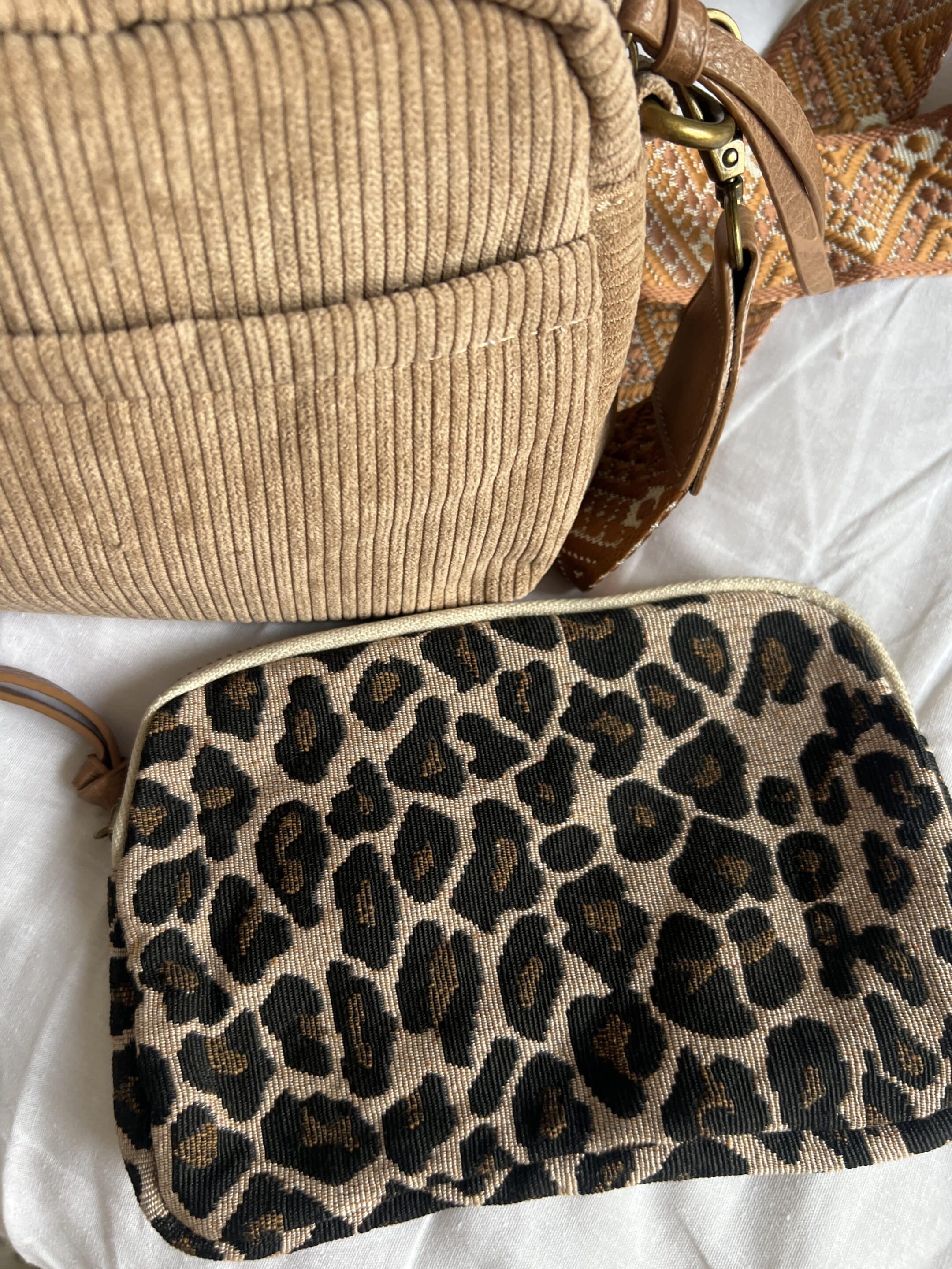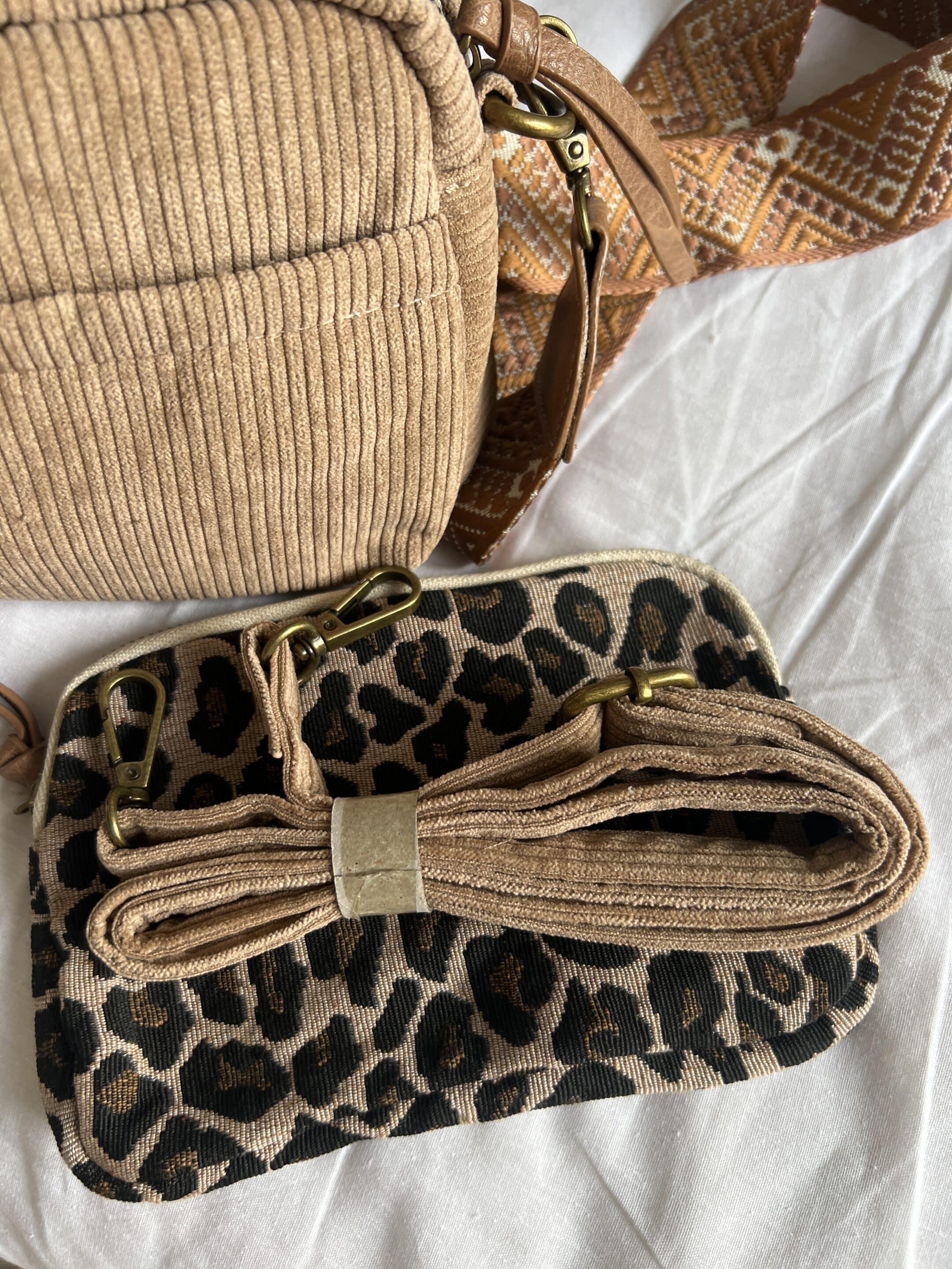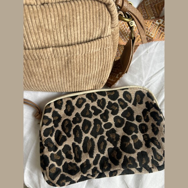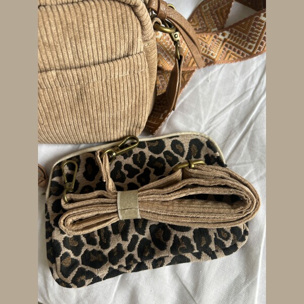 Sac velours vendu avec 2 bandoulières et pochette léopard