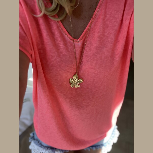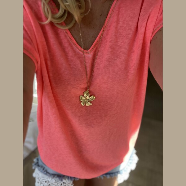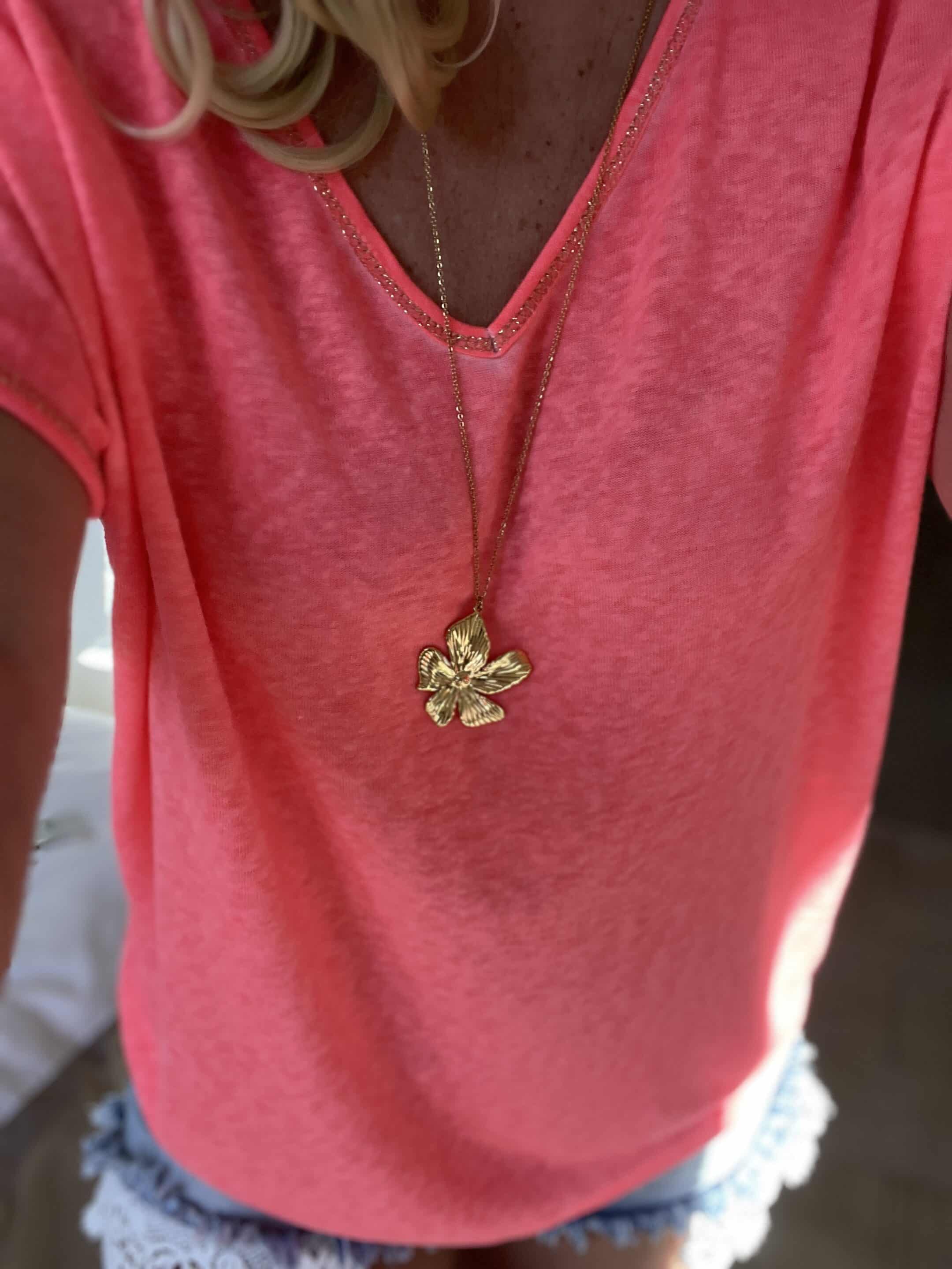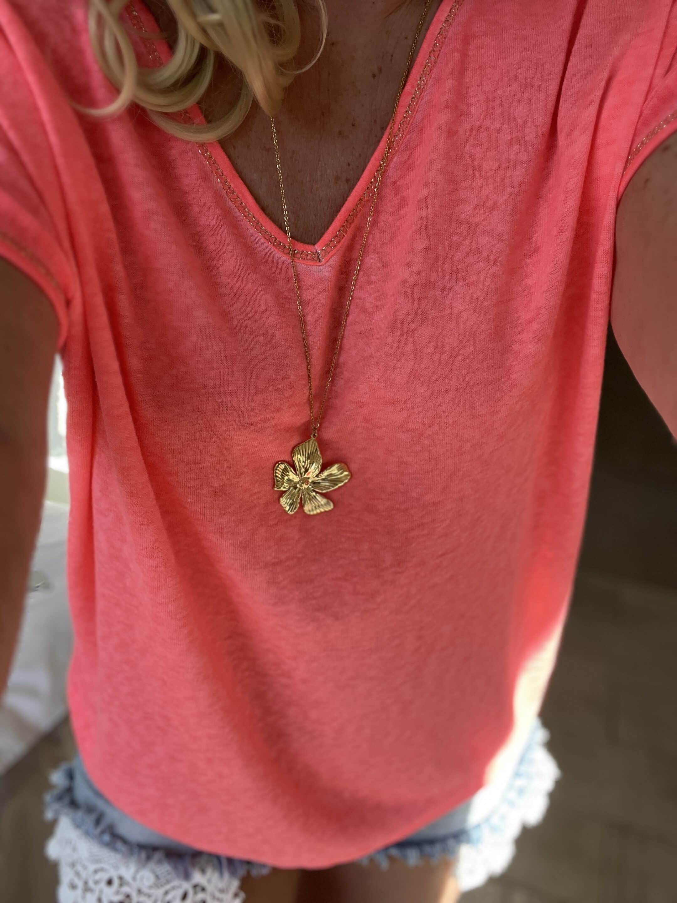 Sautoir fleur acier doré