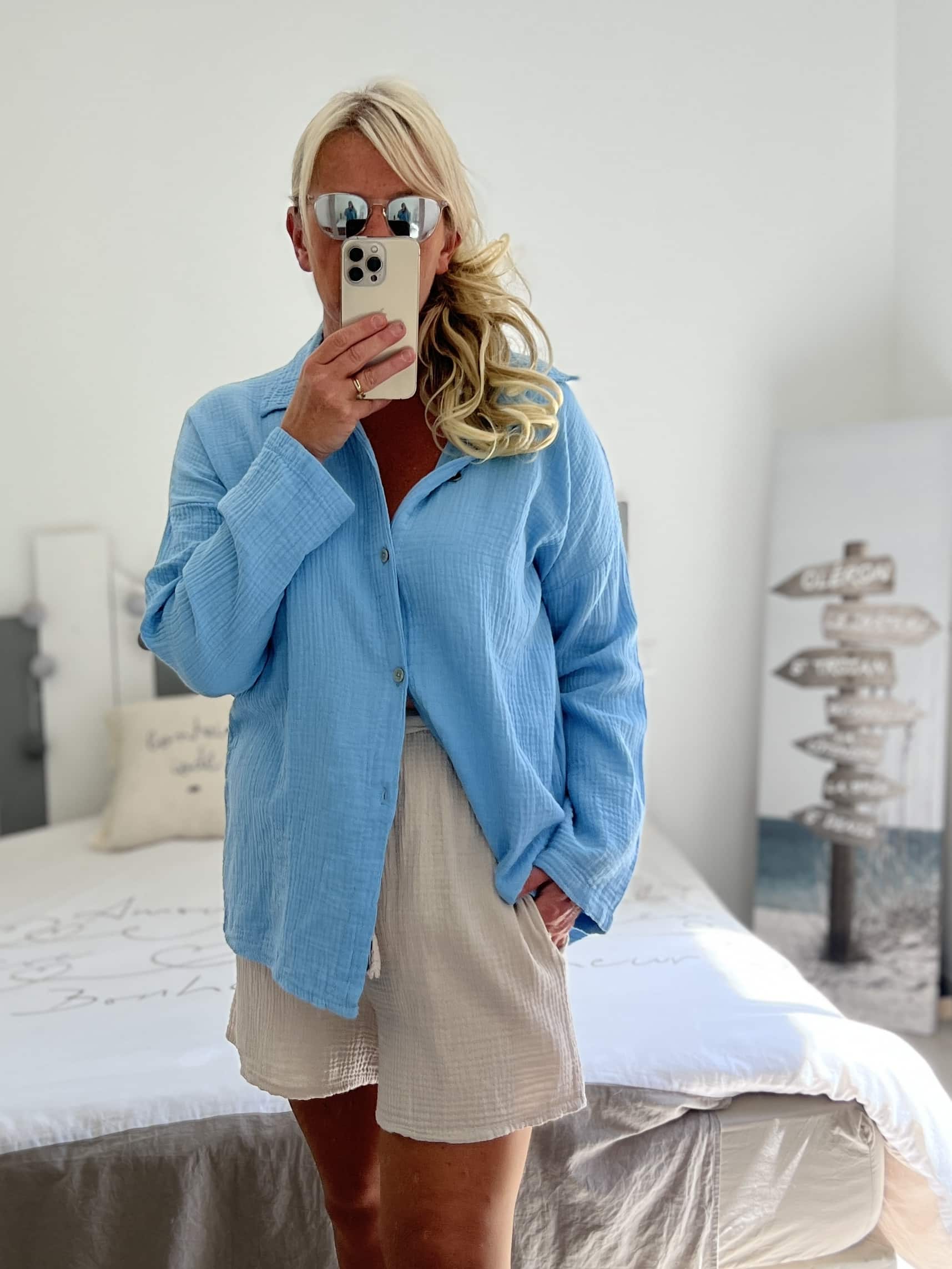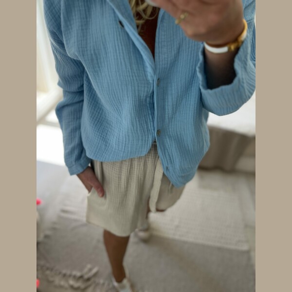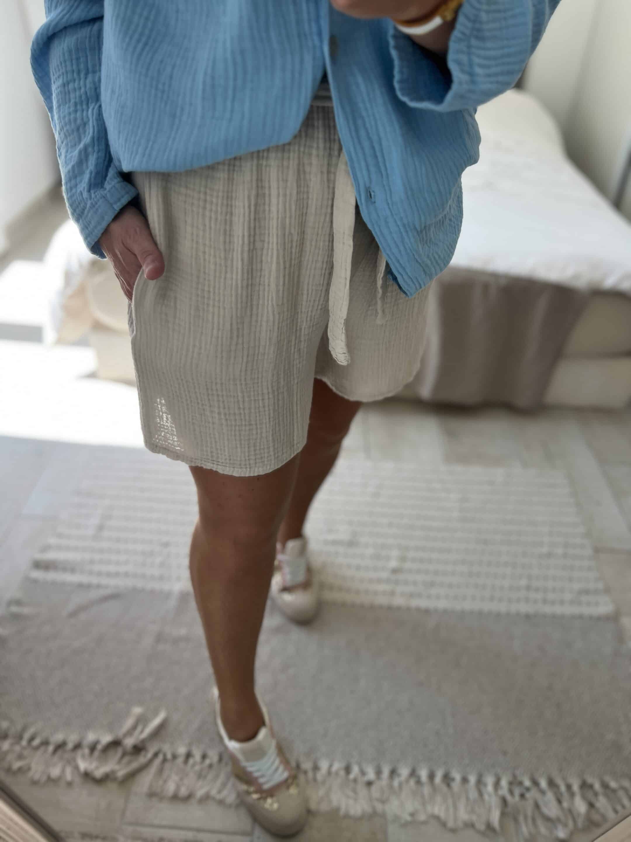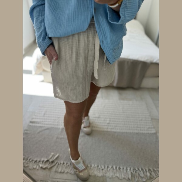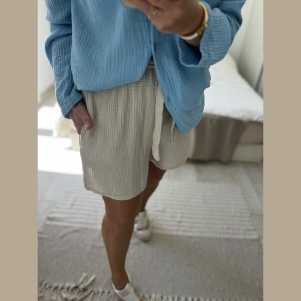 Short en gaze de coton uni avec deux poches, élastique à la taille, taille unique, il convient du 36 au 40.