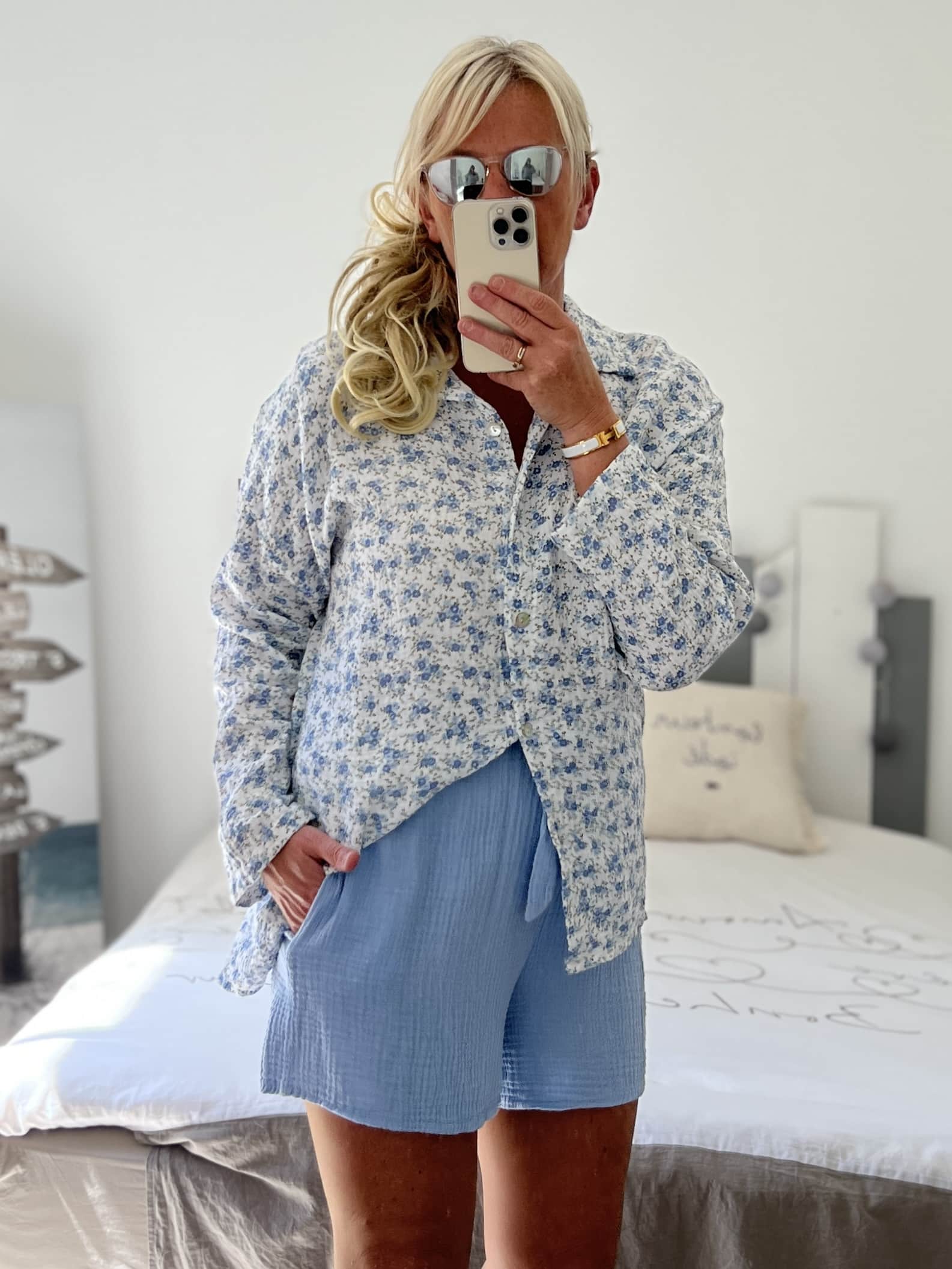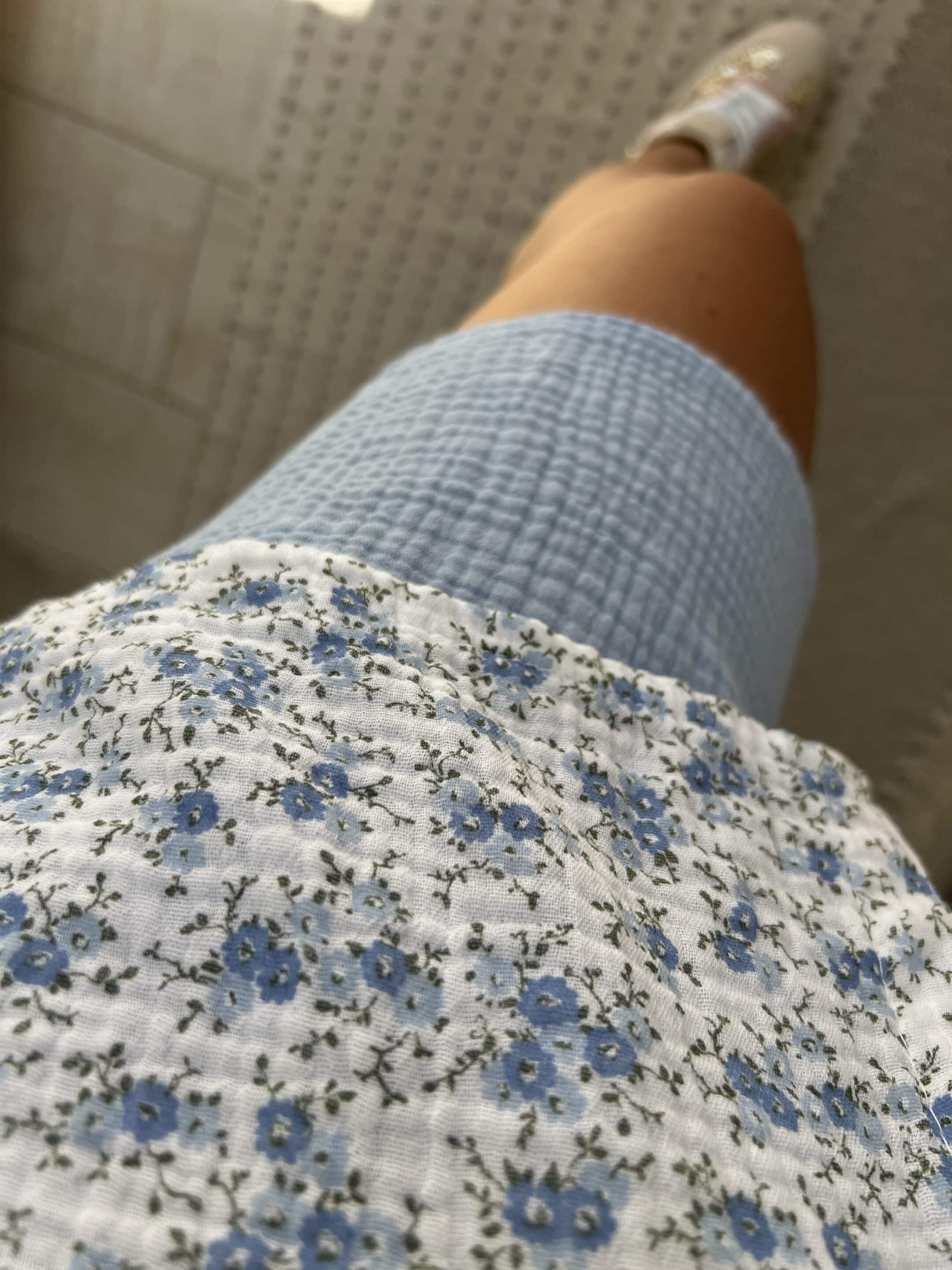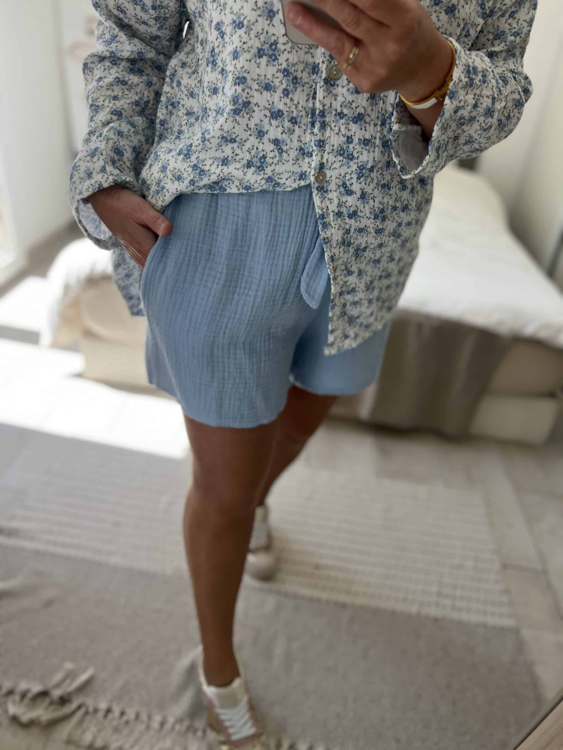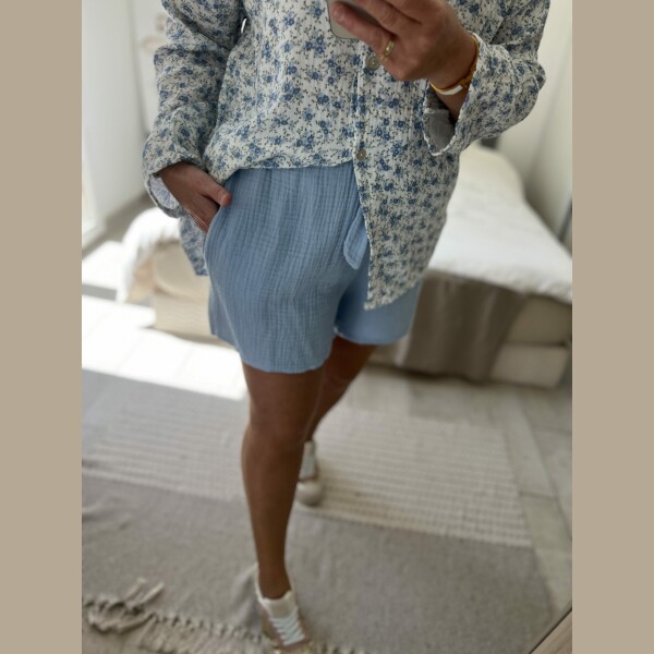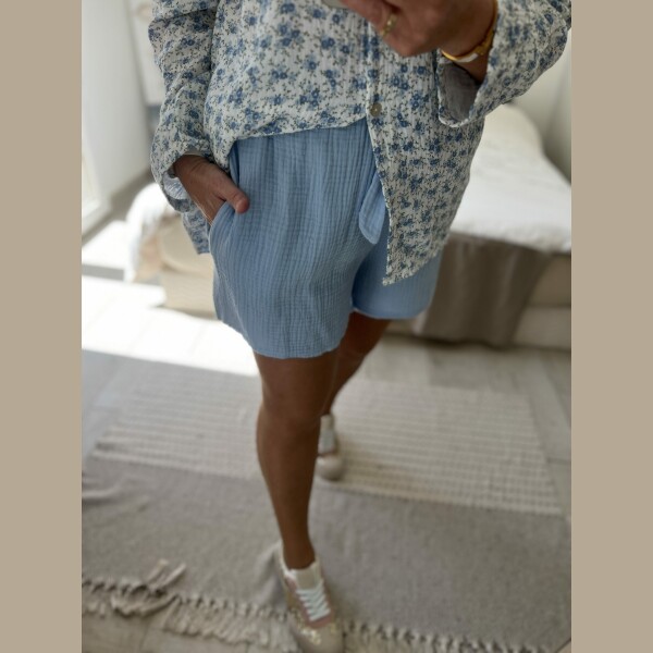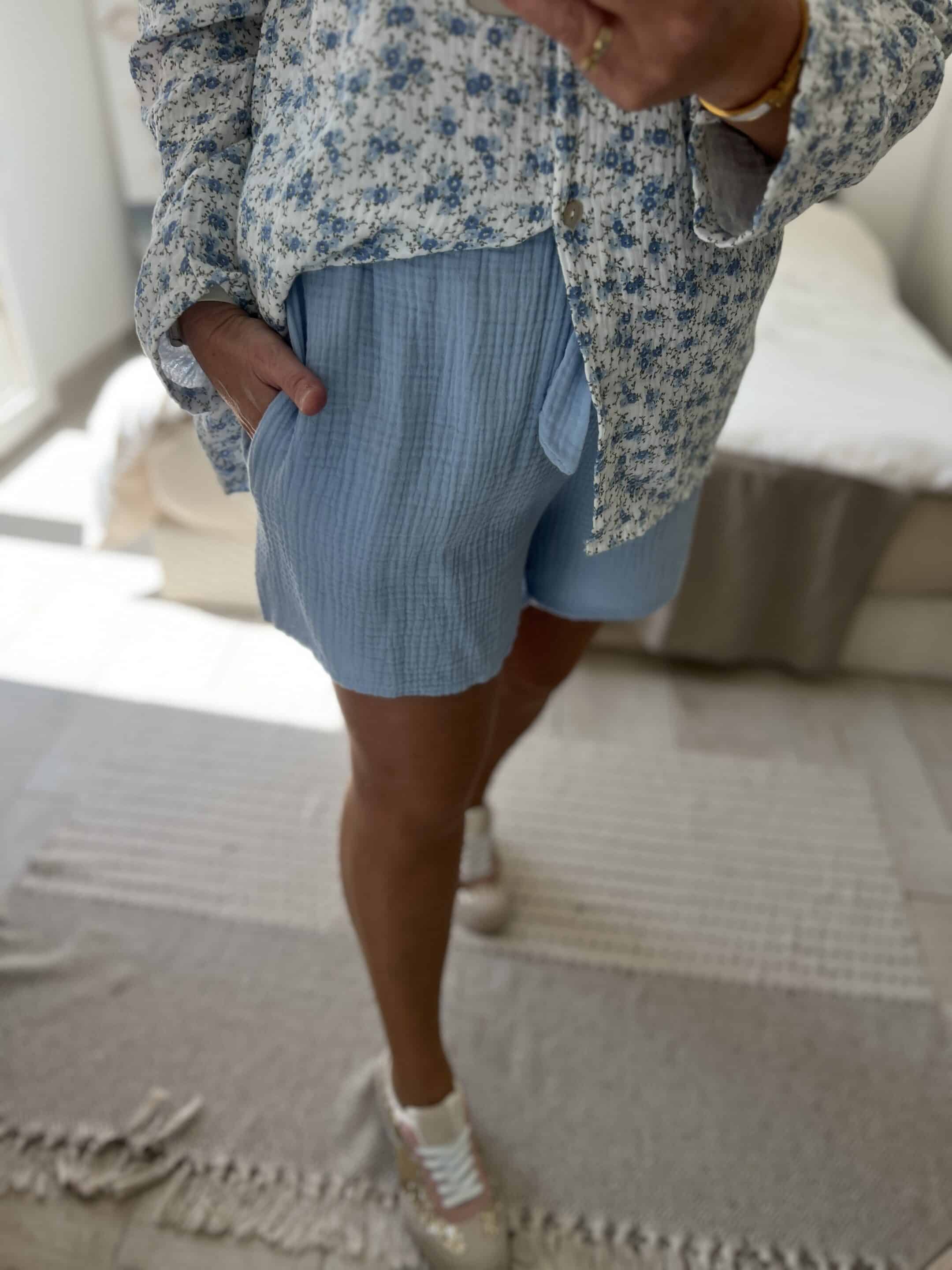 Short en gaze de coton uni avec deux poches, élastique à la taille, taille unique, il convient du 36 au 40.