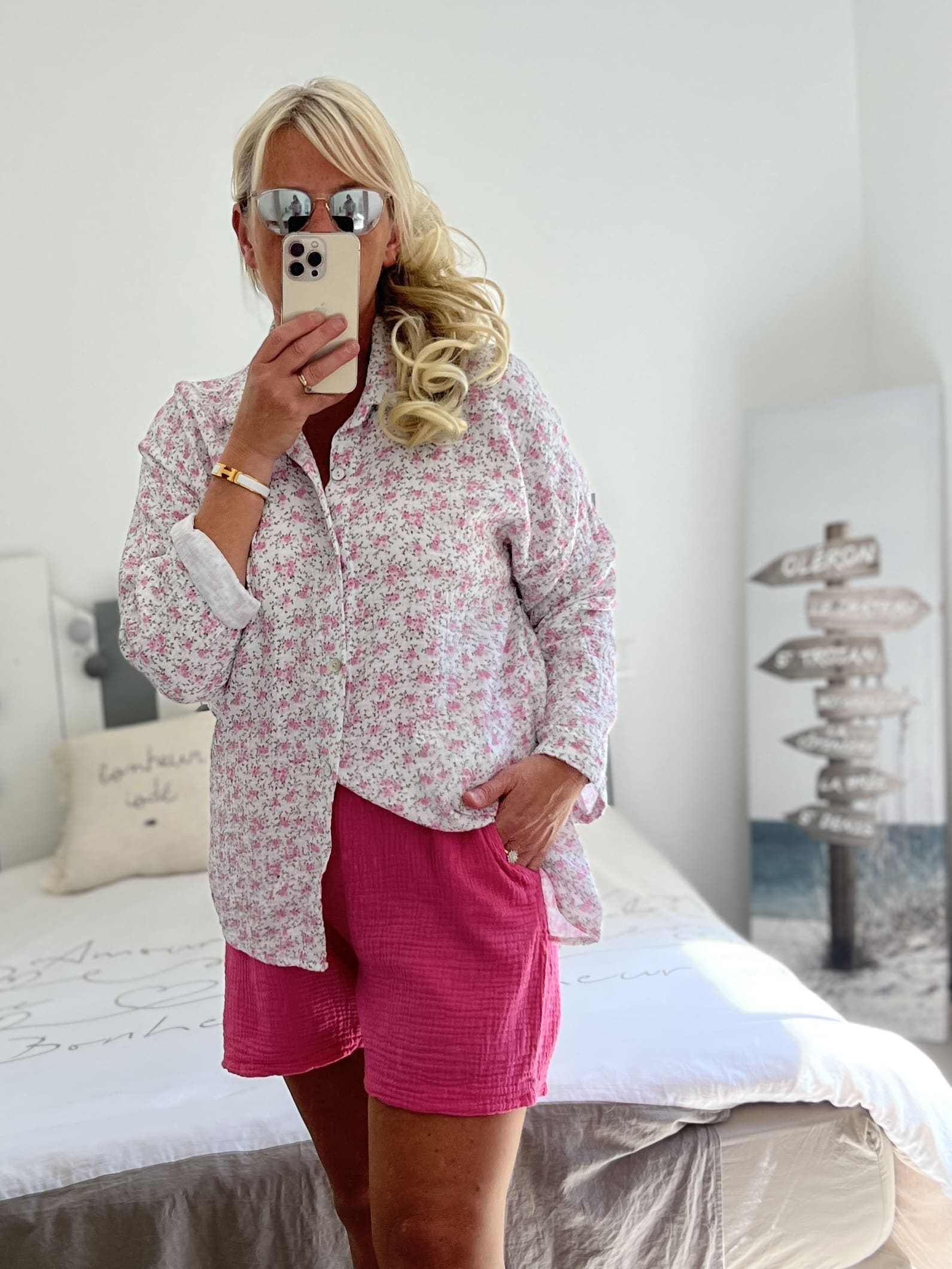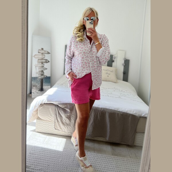 Short en gaze de coton uni avec deux poches, élastique à la taille, taille unique, il convient du 36 au 40.