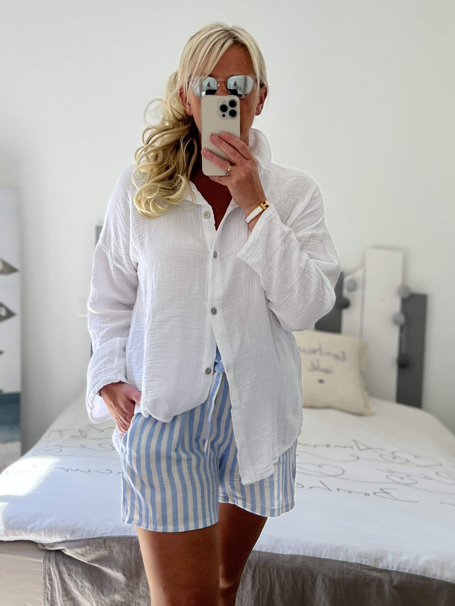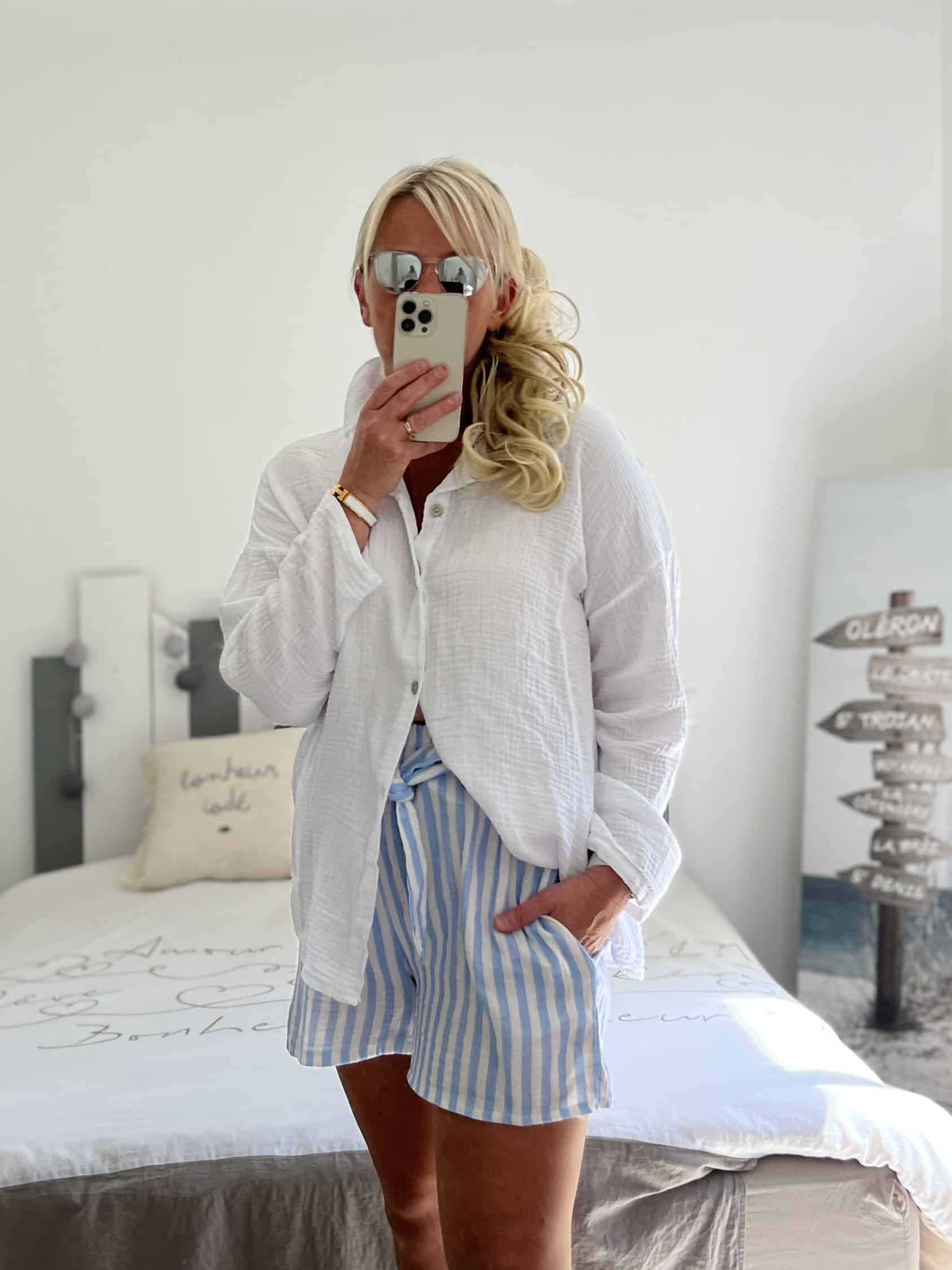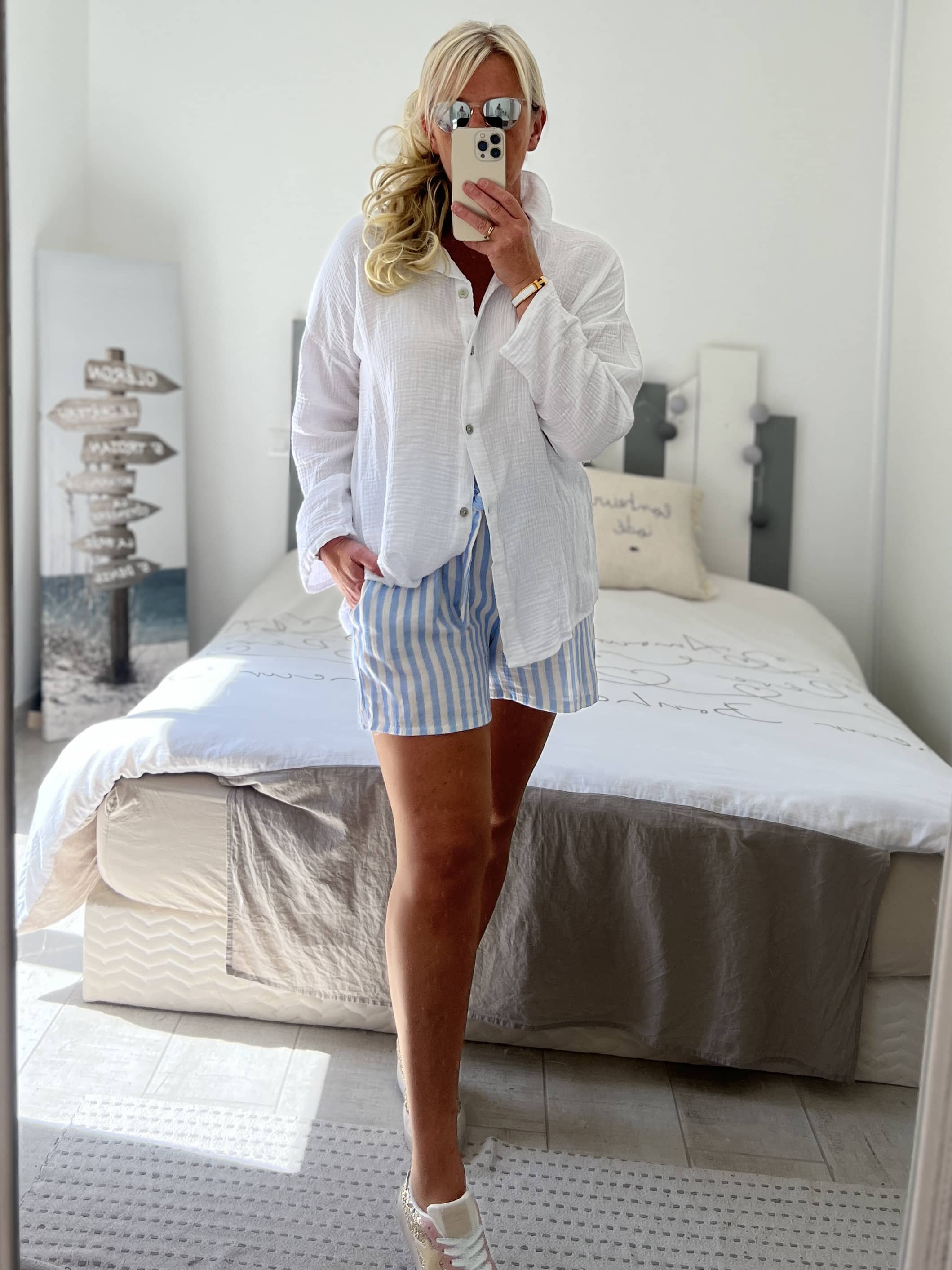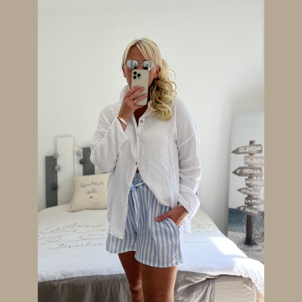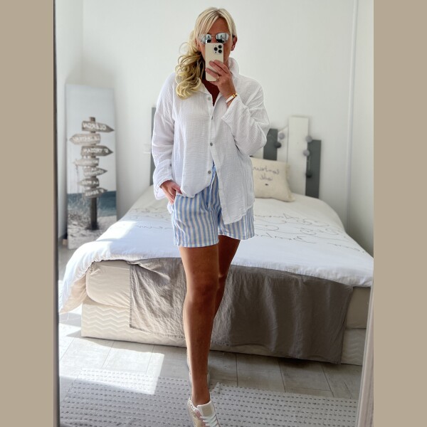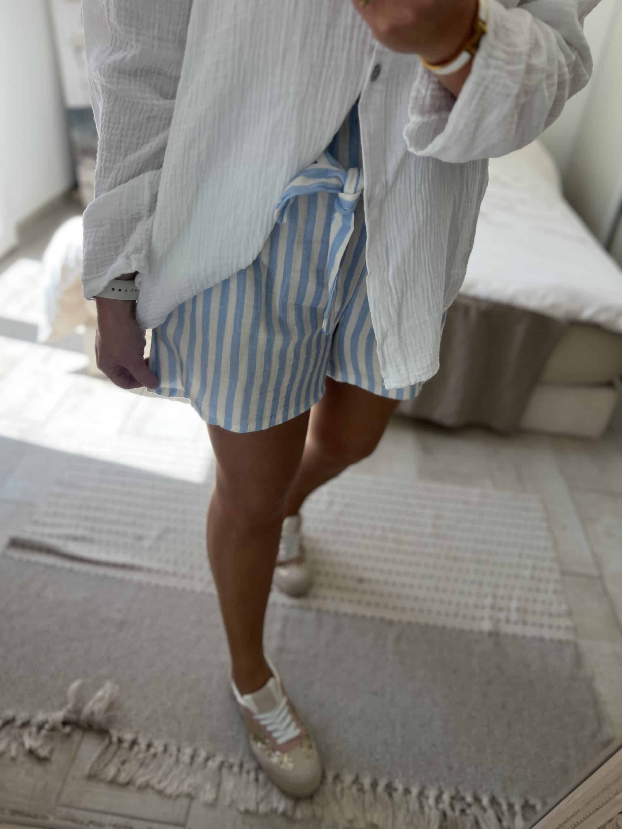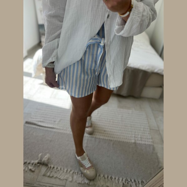 Matière : 100% Coton. Taille Unique (correspondant généralement à un 36-42 grâce à l’élastique). Détails : Short d’été léger et frais confectionné en gaze de coton imprimé. Il est doté d’une taille haute élastiquée pour un confort optimal et d’une ceinture amovible assortie à nouer sur le devant pour souligner la taille. Le tissu en double gaze de coton est doux, respirant et légèrement gaufré, offrant un look décontracté et naturel. Ce short possède des poches latérales pratiques. Idéal pour une tenue estivale décontractée et féminine.