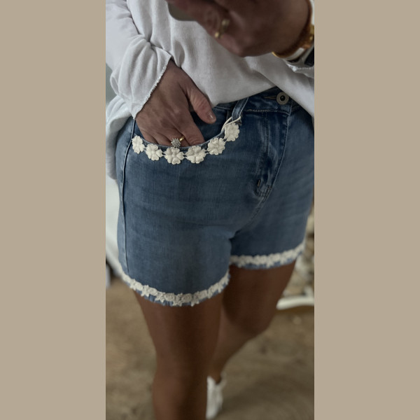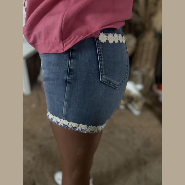 Short jean 97% coton 3% elasthane vendu avec la ceinture tissu
