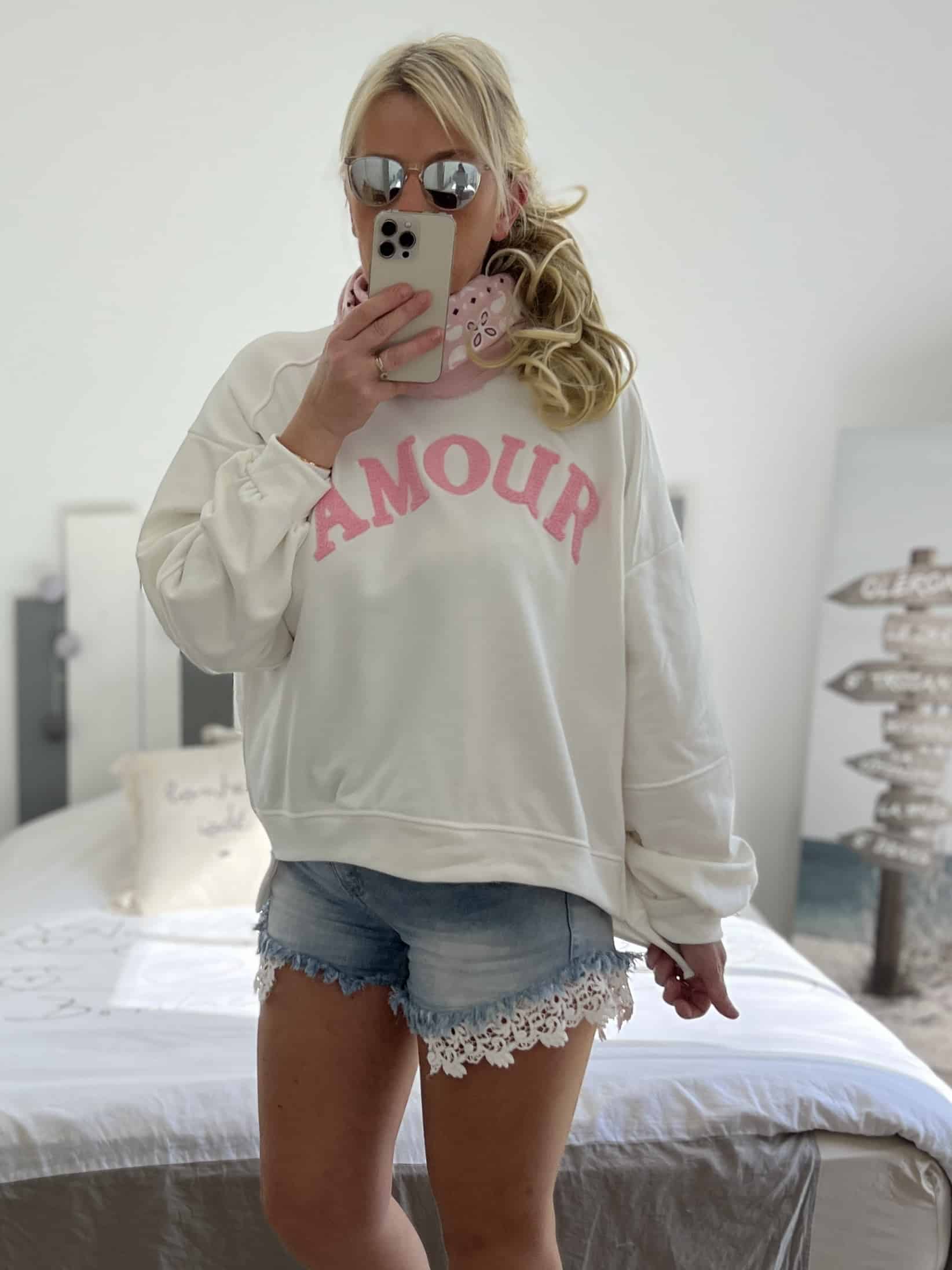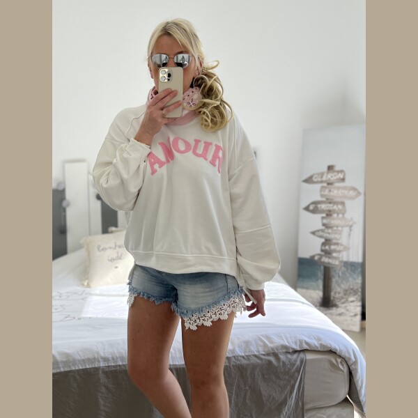 Sweat Amour blanc rose