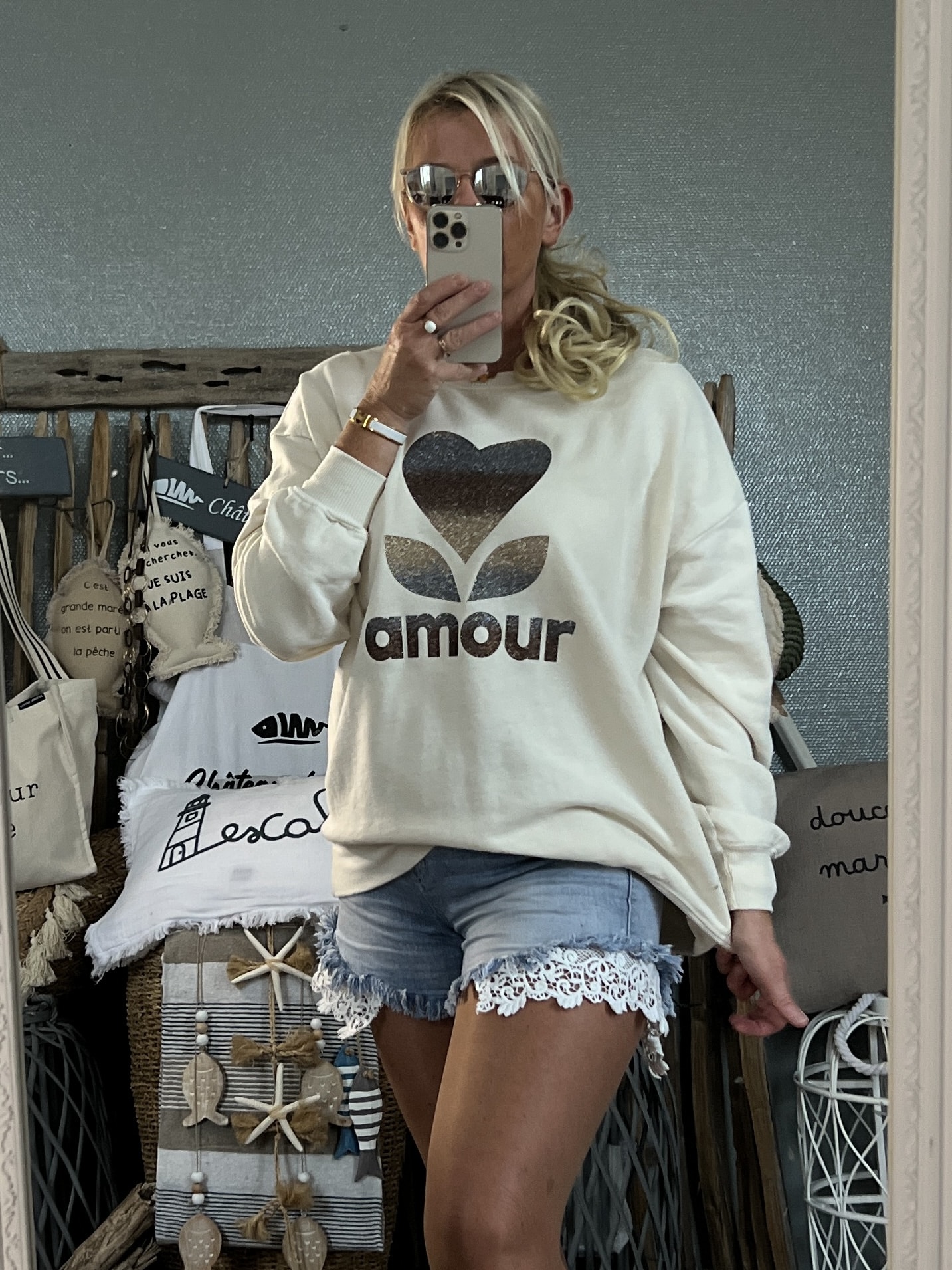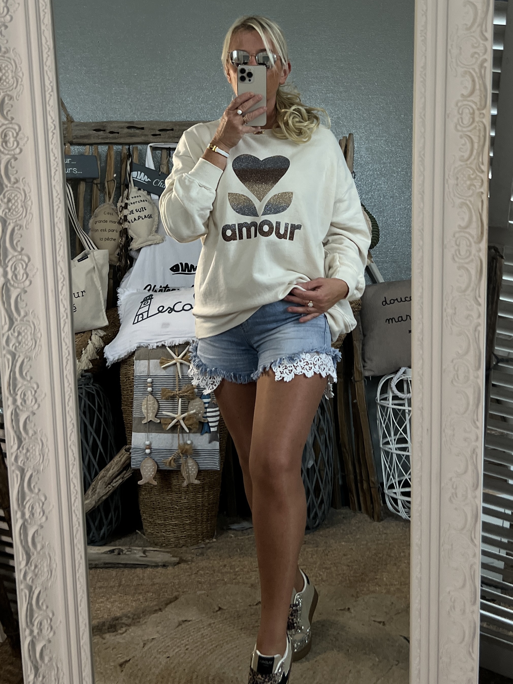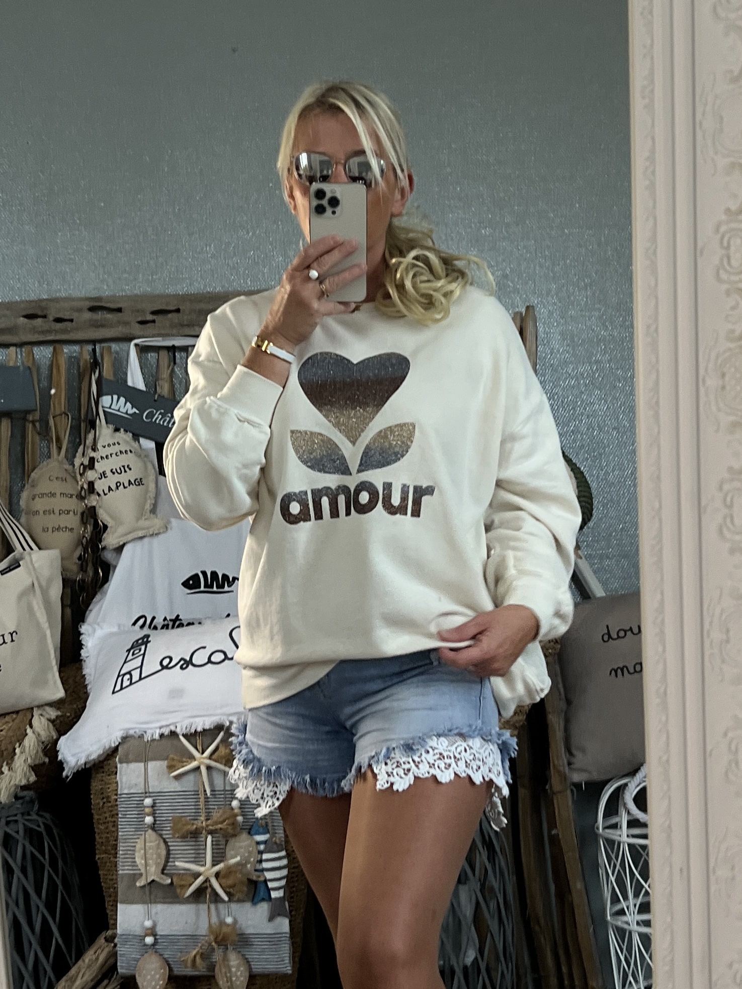 Sweat coton taille unique 36/44 95% coton 5% elasthane cœur et lot amour scintillant