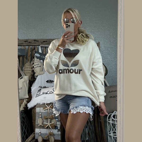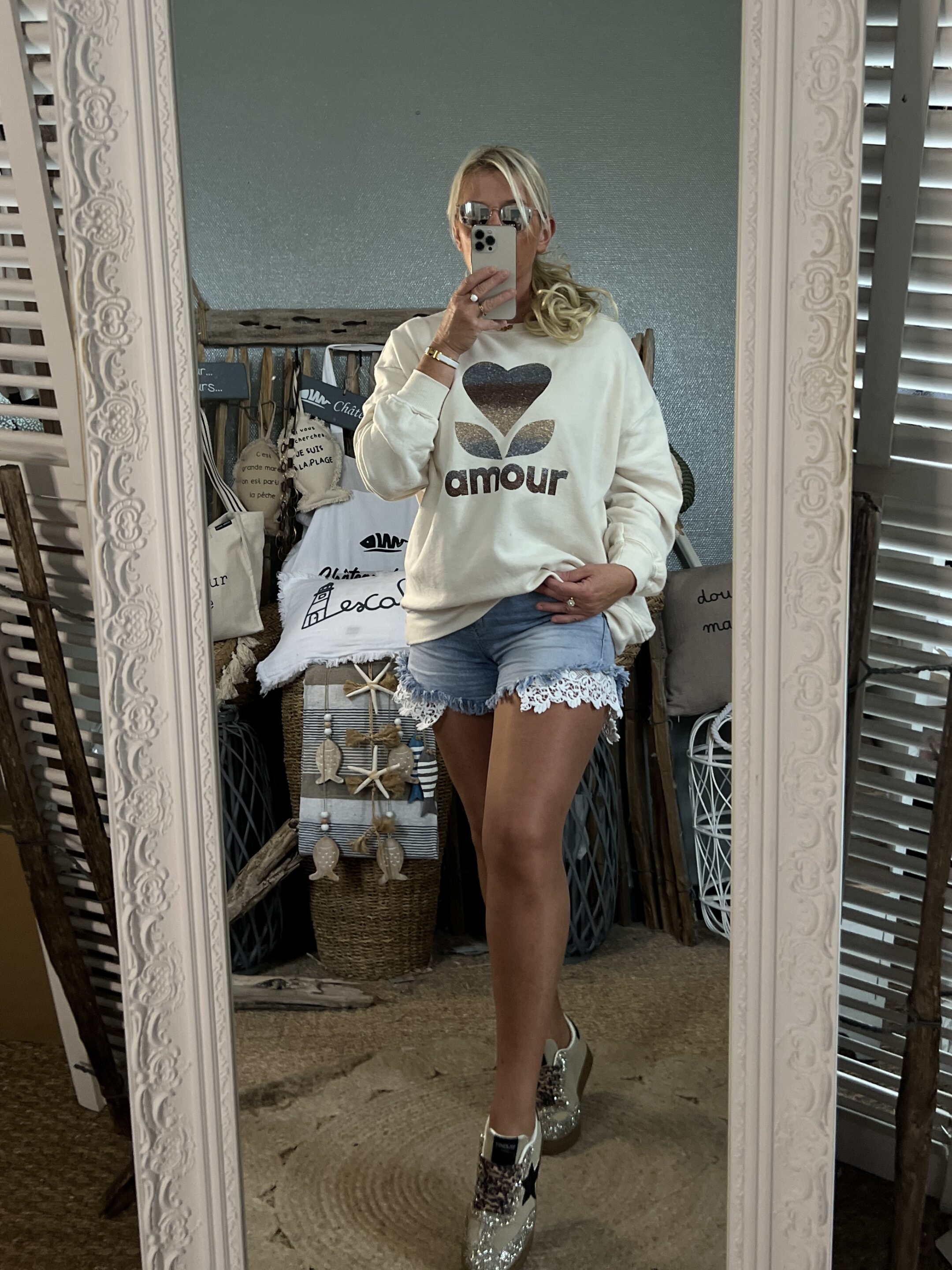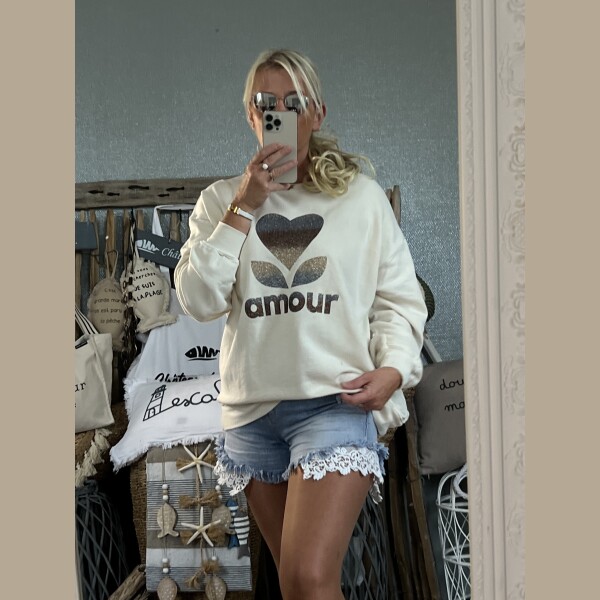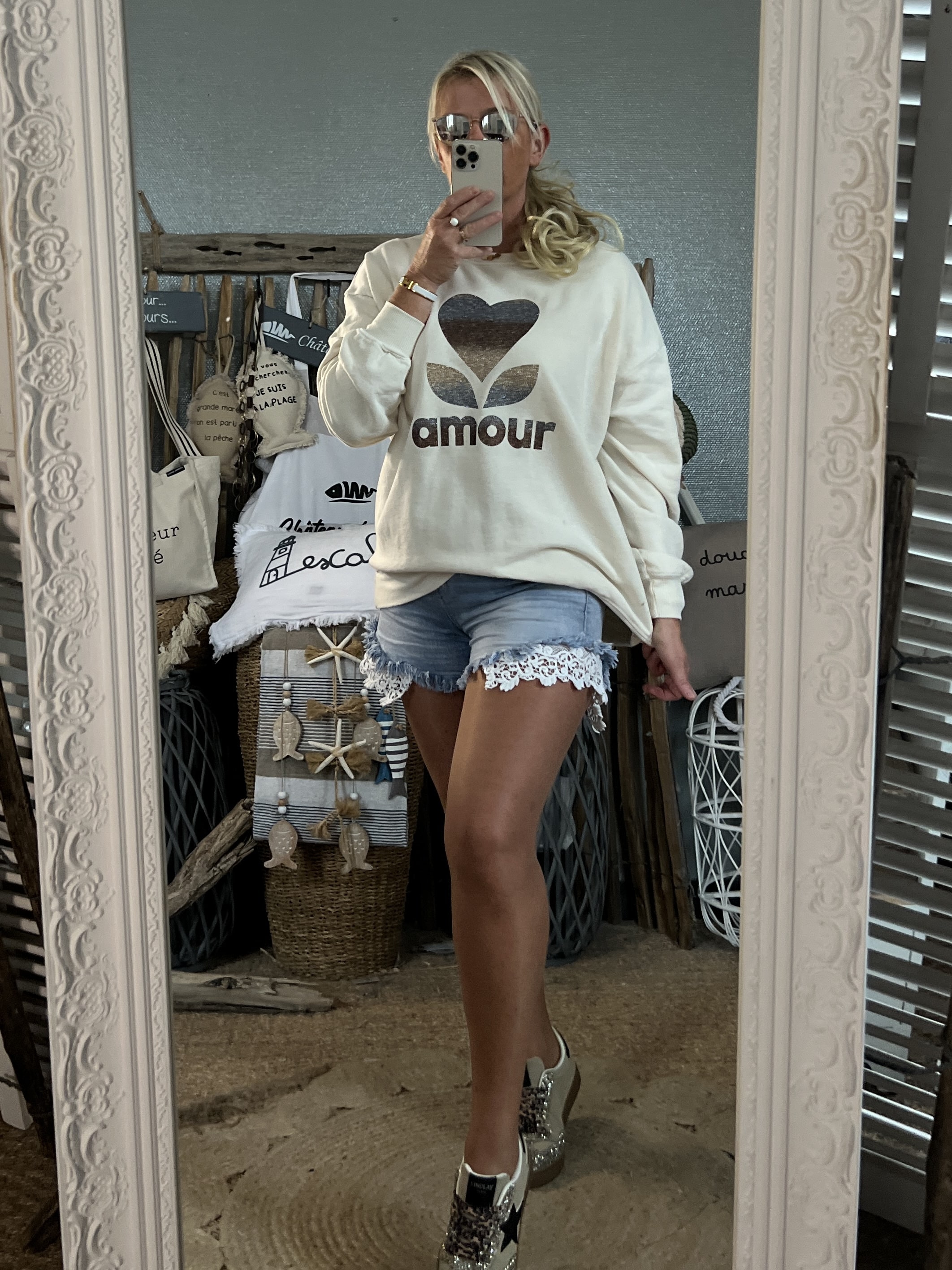 Sweat coton taille unique 36/44 95% coton 5% elasthane cœur et lot amour scintillant