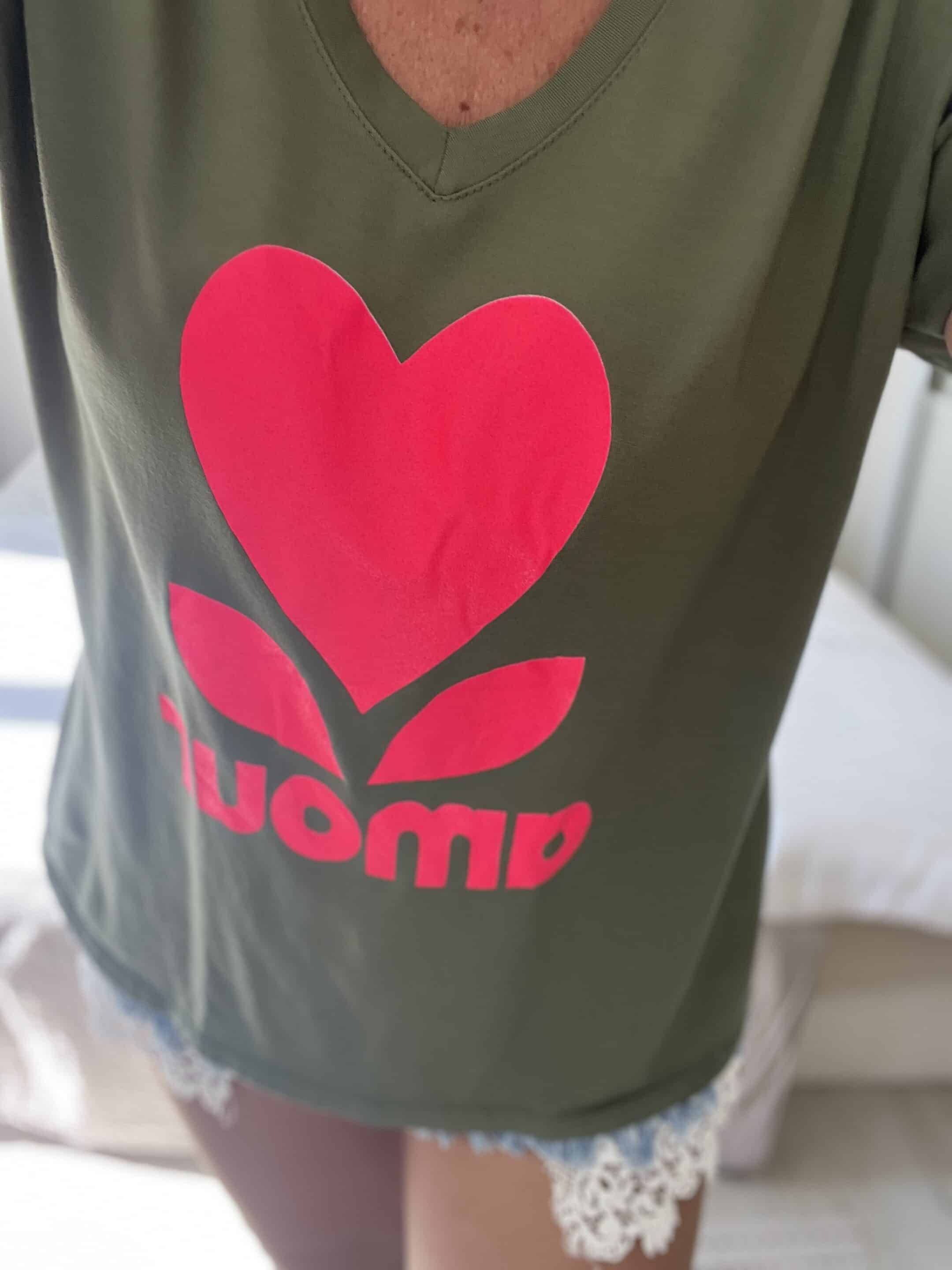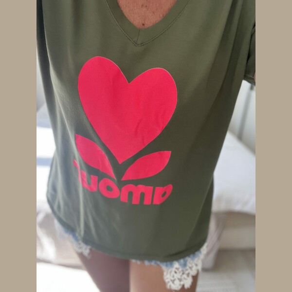 T-shirt amour kaki rose fluo