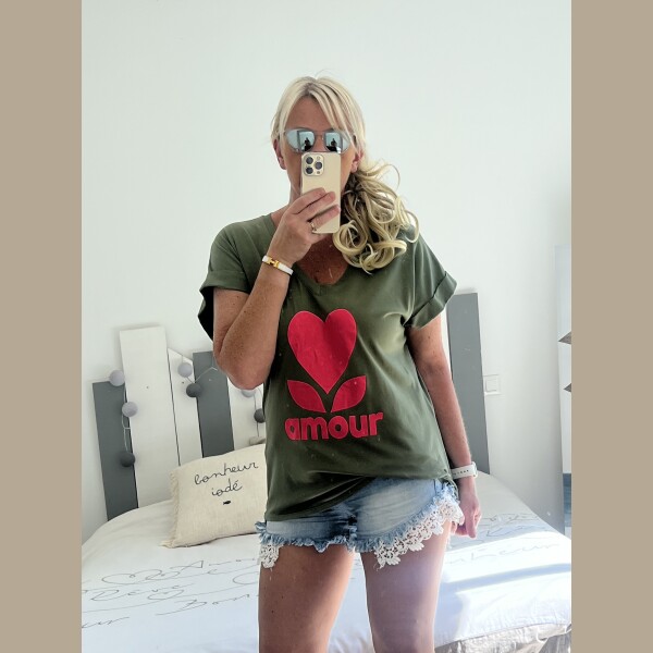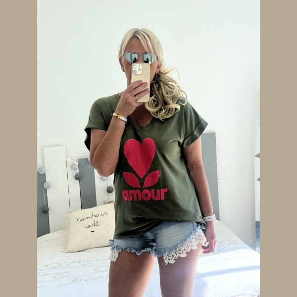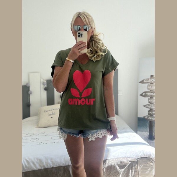 Soyez le premier à laisser votre avis sur “T-shirt amour kaki rose fluo”