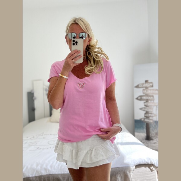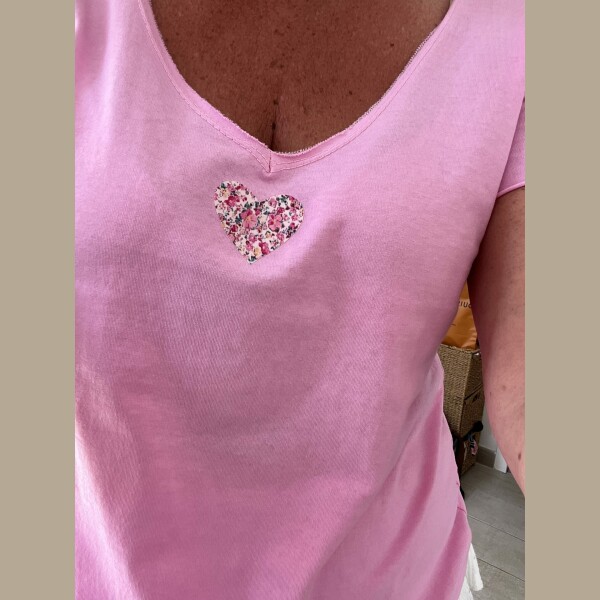 T-shirt cœur liberty kaki rose