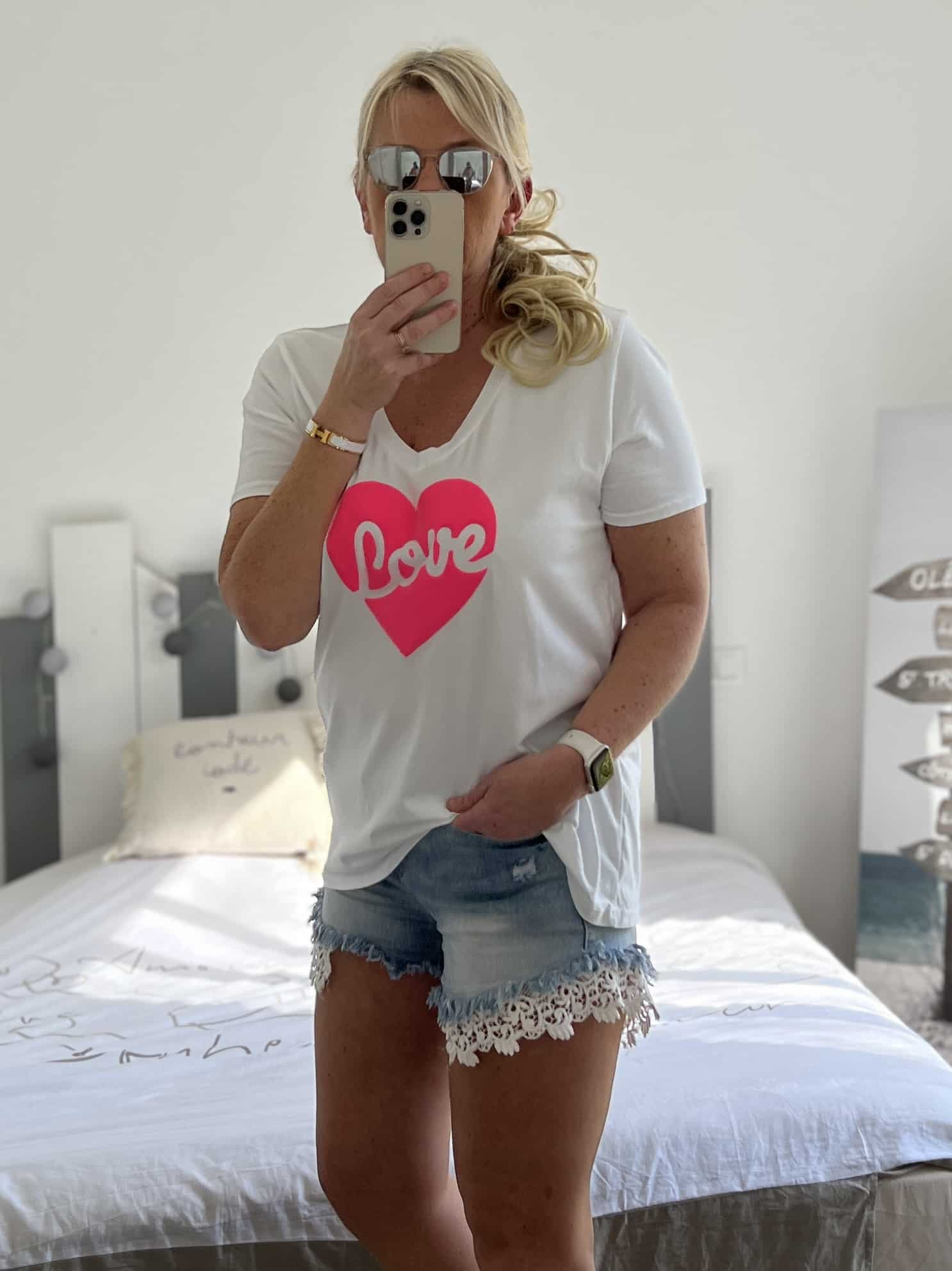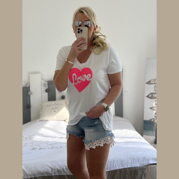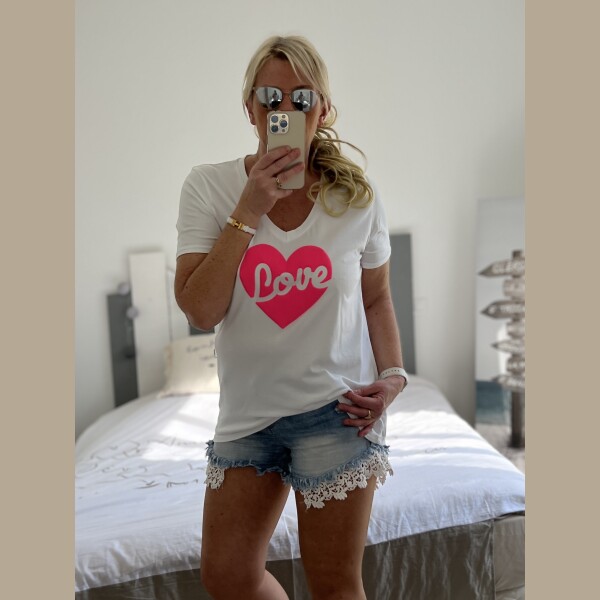 T-shirt love blanc fluo