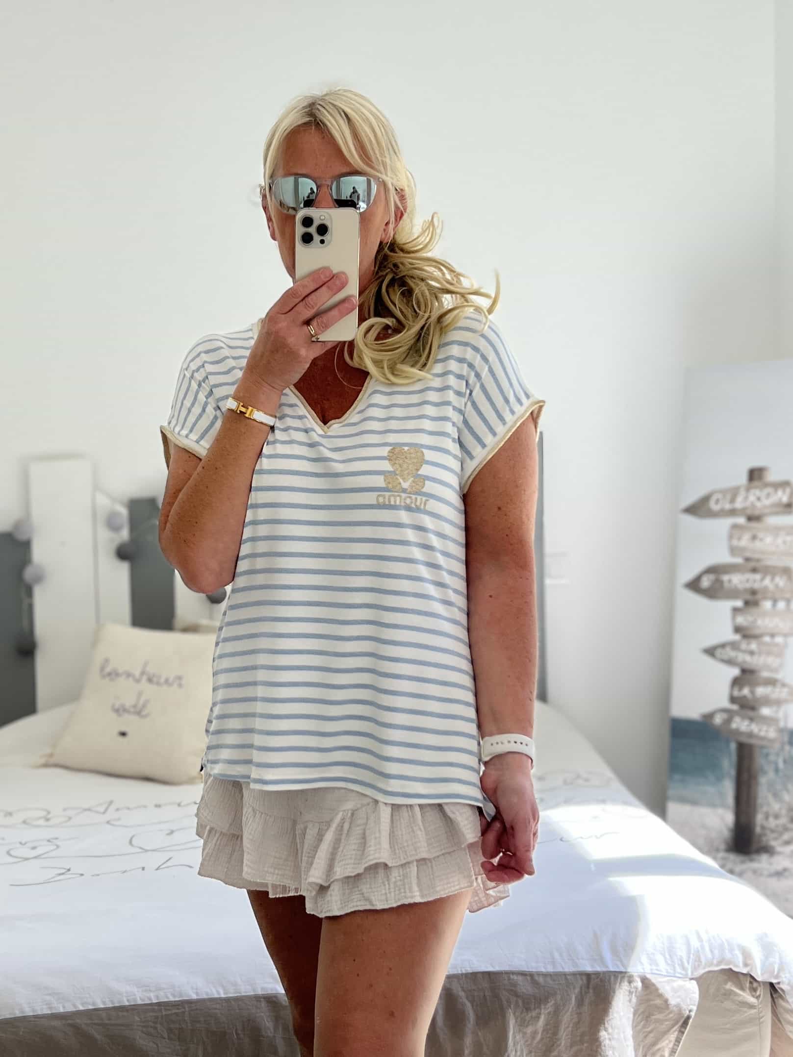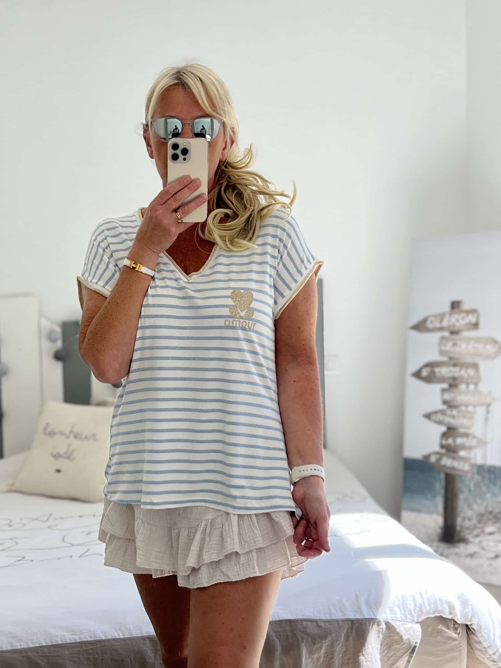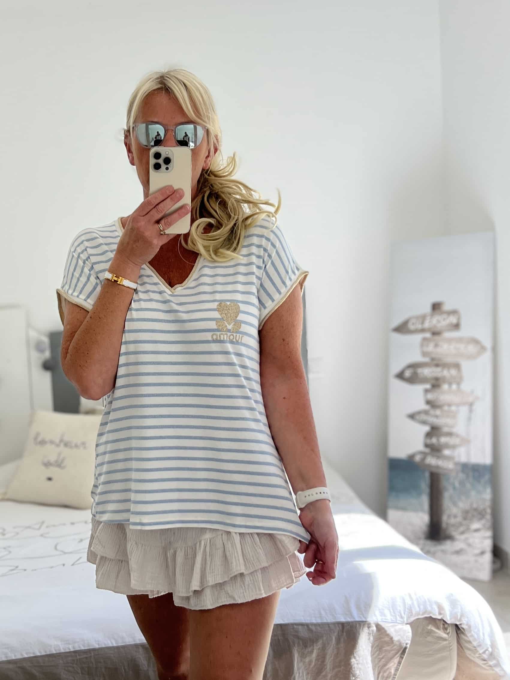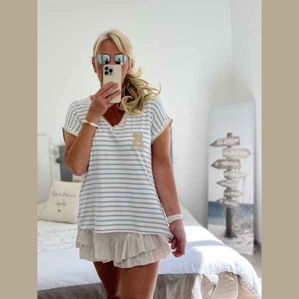 T-shirt marinière bleu jean amour