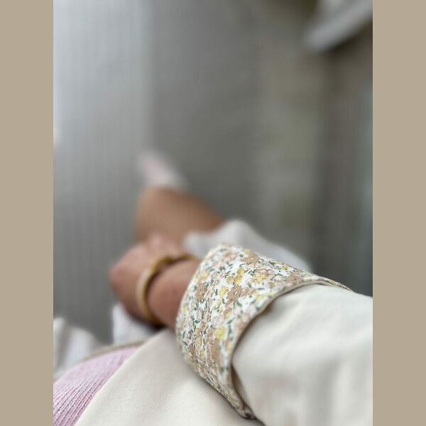 Veste Blazer en Coton Matière : 95% Coton. 5%Elasthanne Taille Unique (36-42). Détails : Coupe classique structurée avec col à revers, fermeture par un bouton unique assorti, deux poches latérales à rabat, et doublure fleurie délicate apparente aux poignets retroussés. Tissu respirant et confortable.