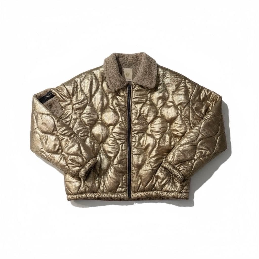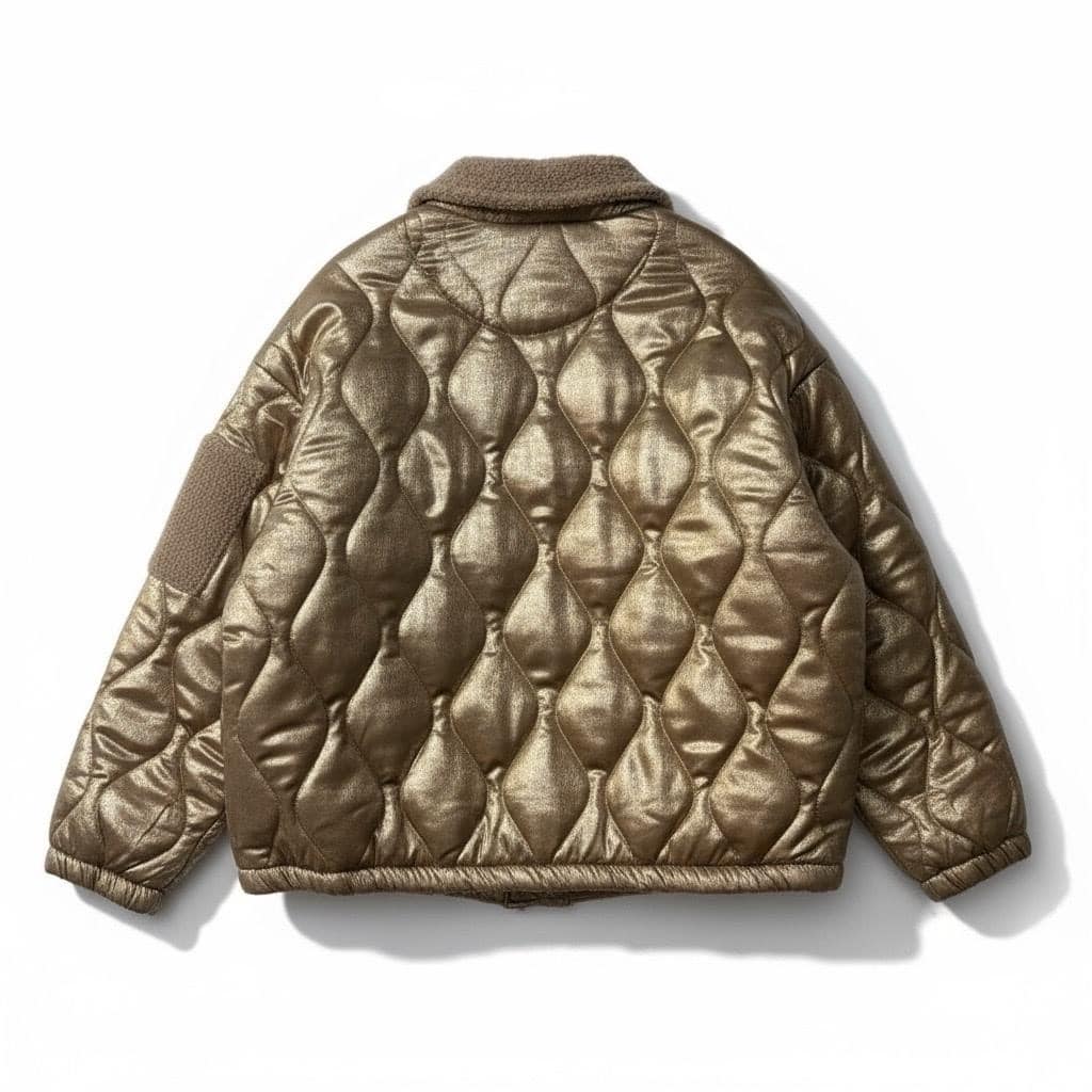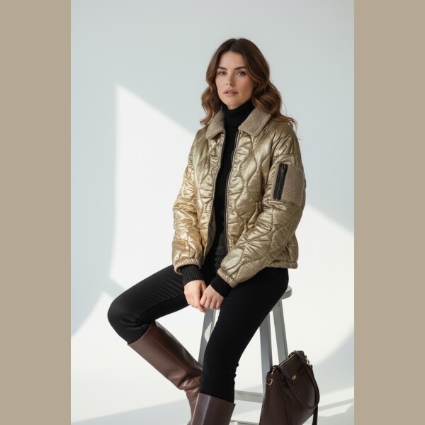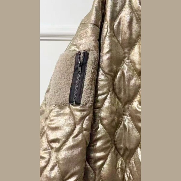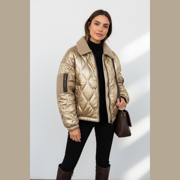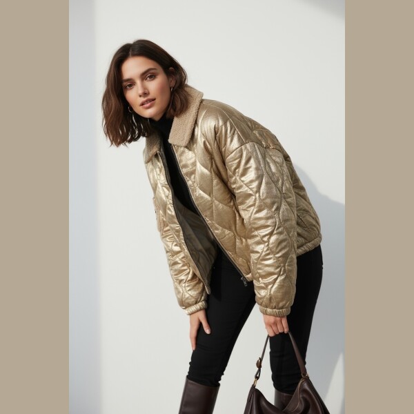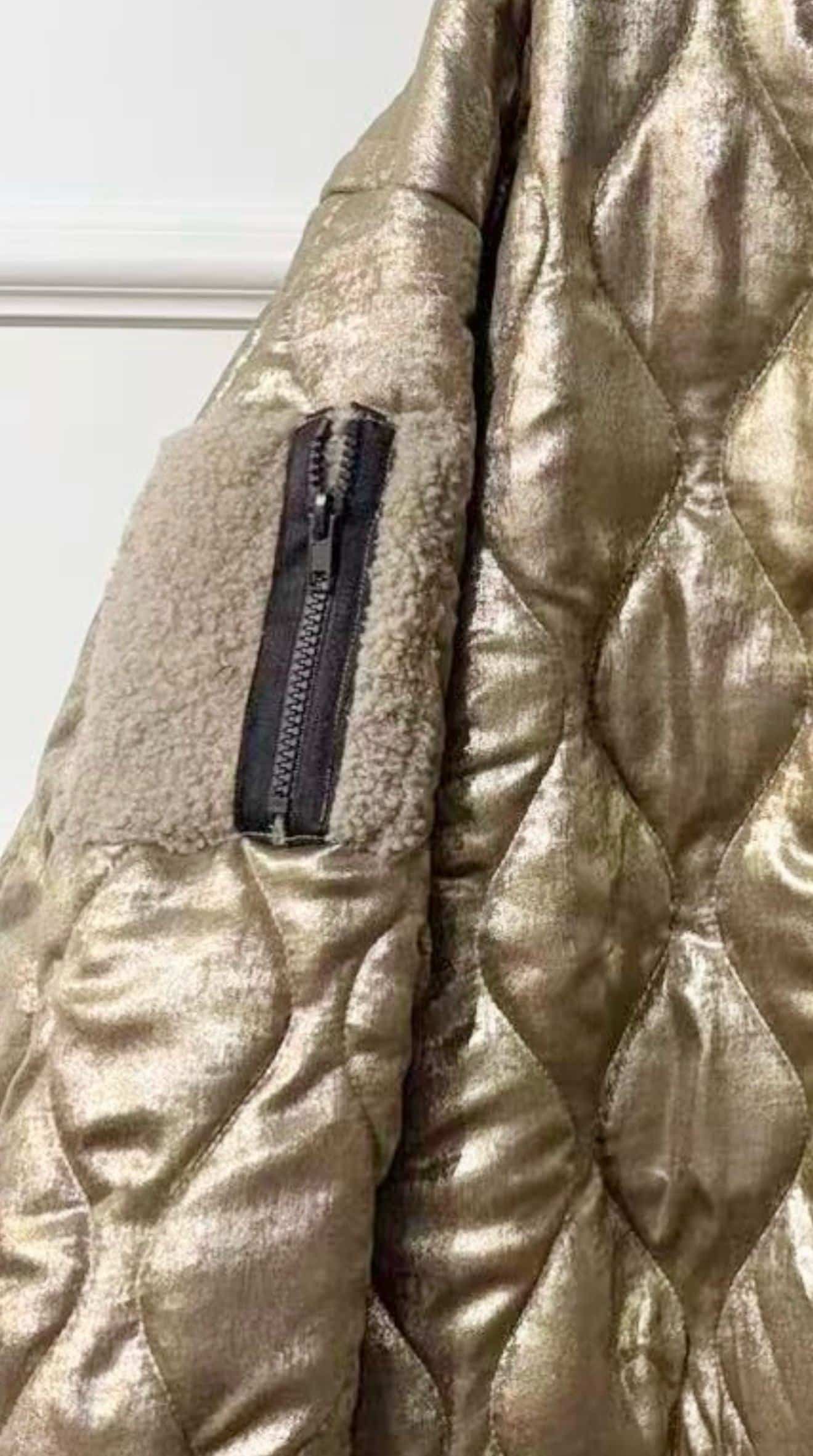 Veste matelassée dorée ultra tendance, Mélange parfait entre confort et audace, avec ses manches effet mouton et son col montant pour un look chic et décontracté. Détails soignés et finitions italiennes pour un rendu haut de gamme.